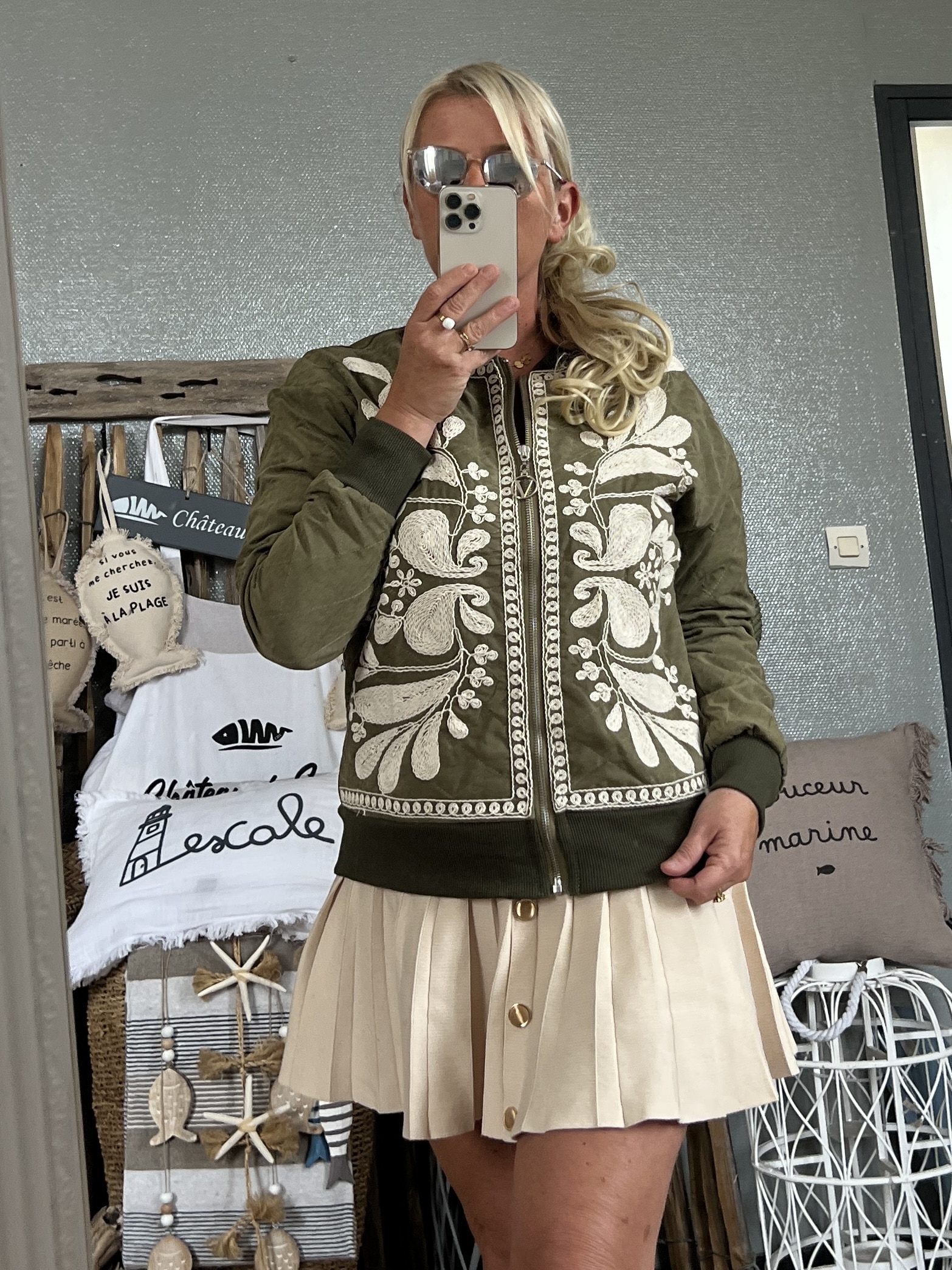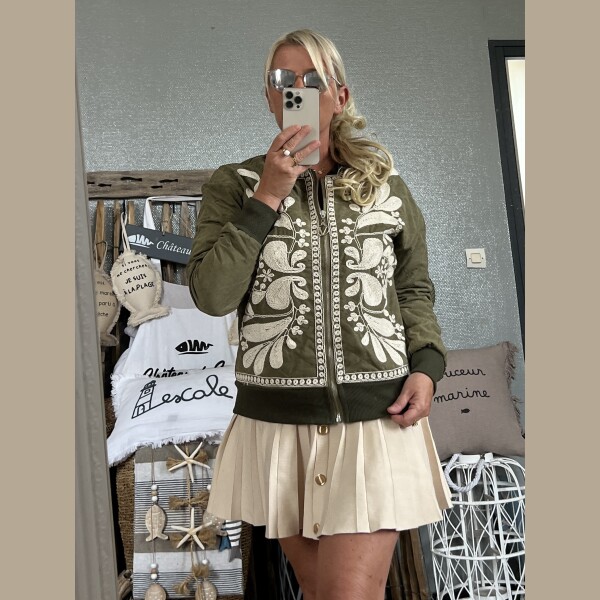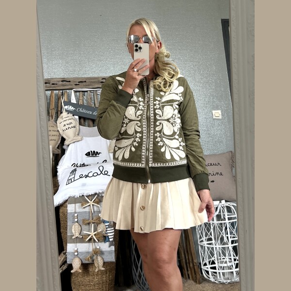 Veste Brodée, Longueur 58cm en Taille S/M,