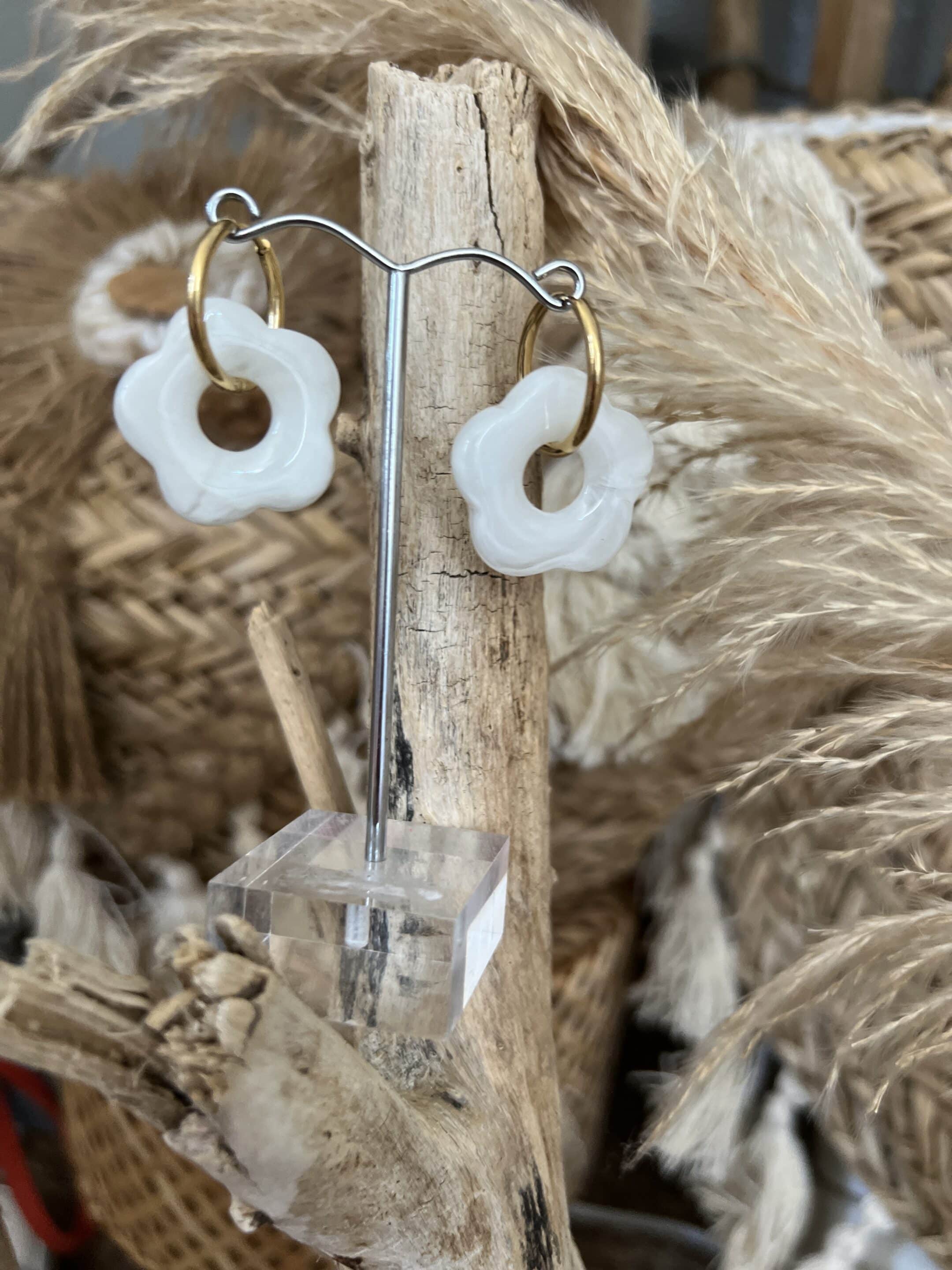 Boucles acier inoxydable doré fleur résine imitant céramique