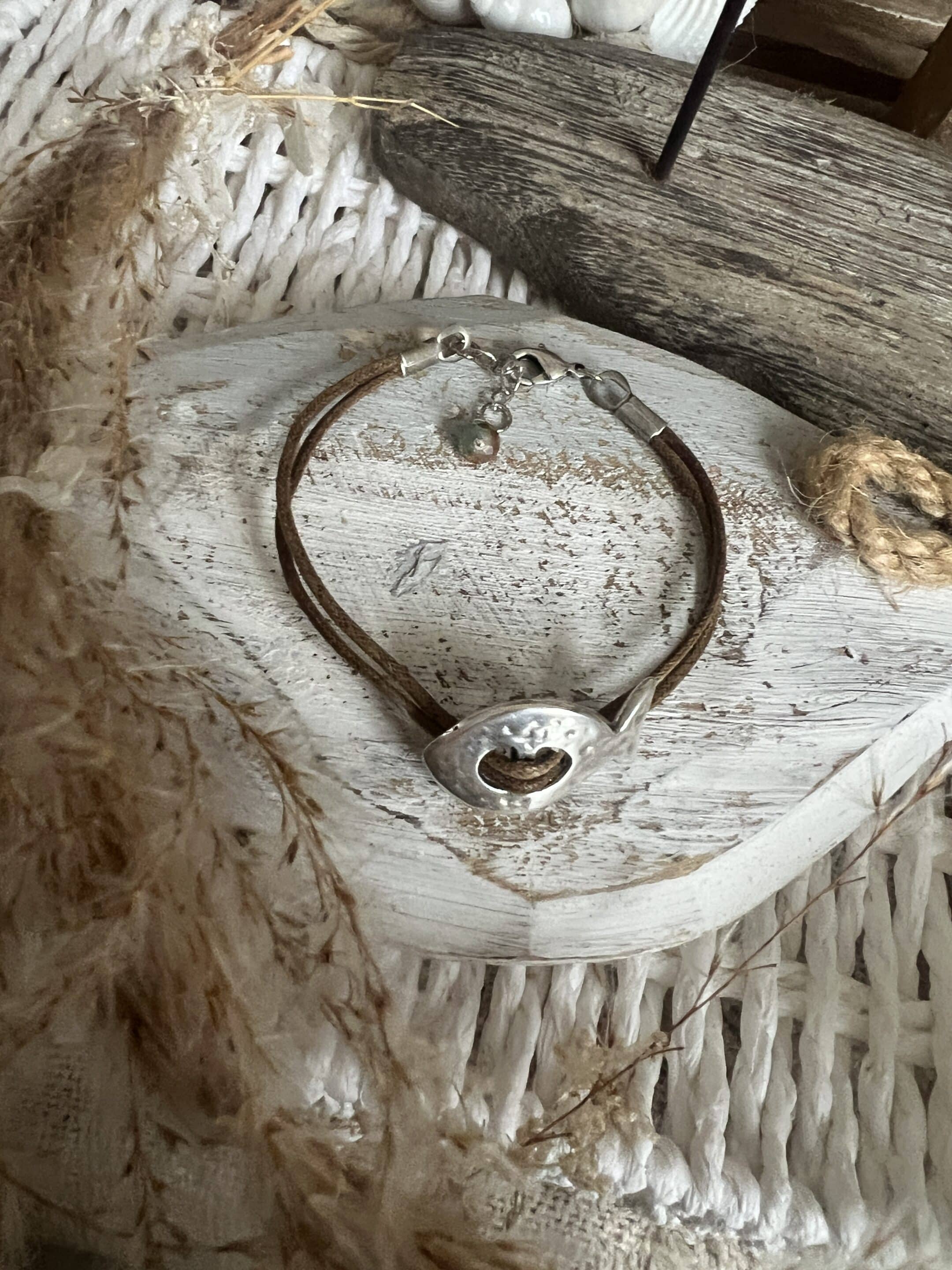 Bracelet étal argenté sans nickel coton cire 16cms plus chaînette création et fabrication CDS
