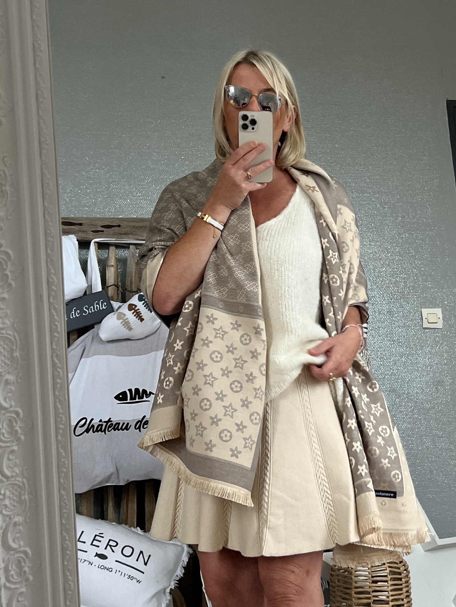 Châle écharpe taupe beige
