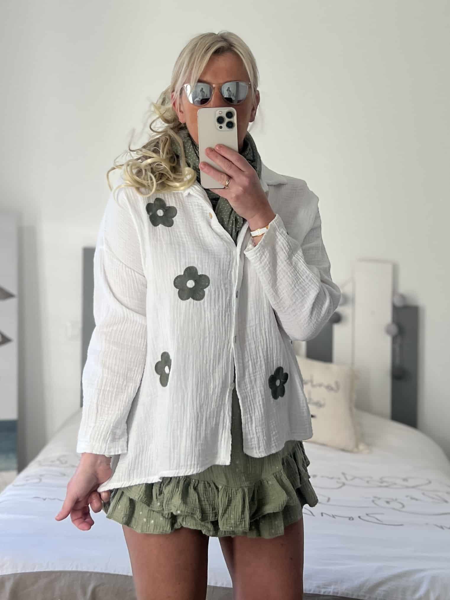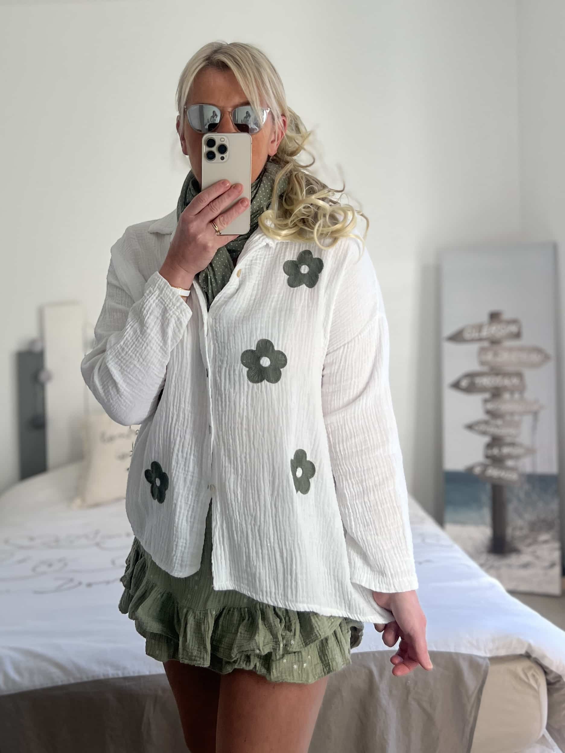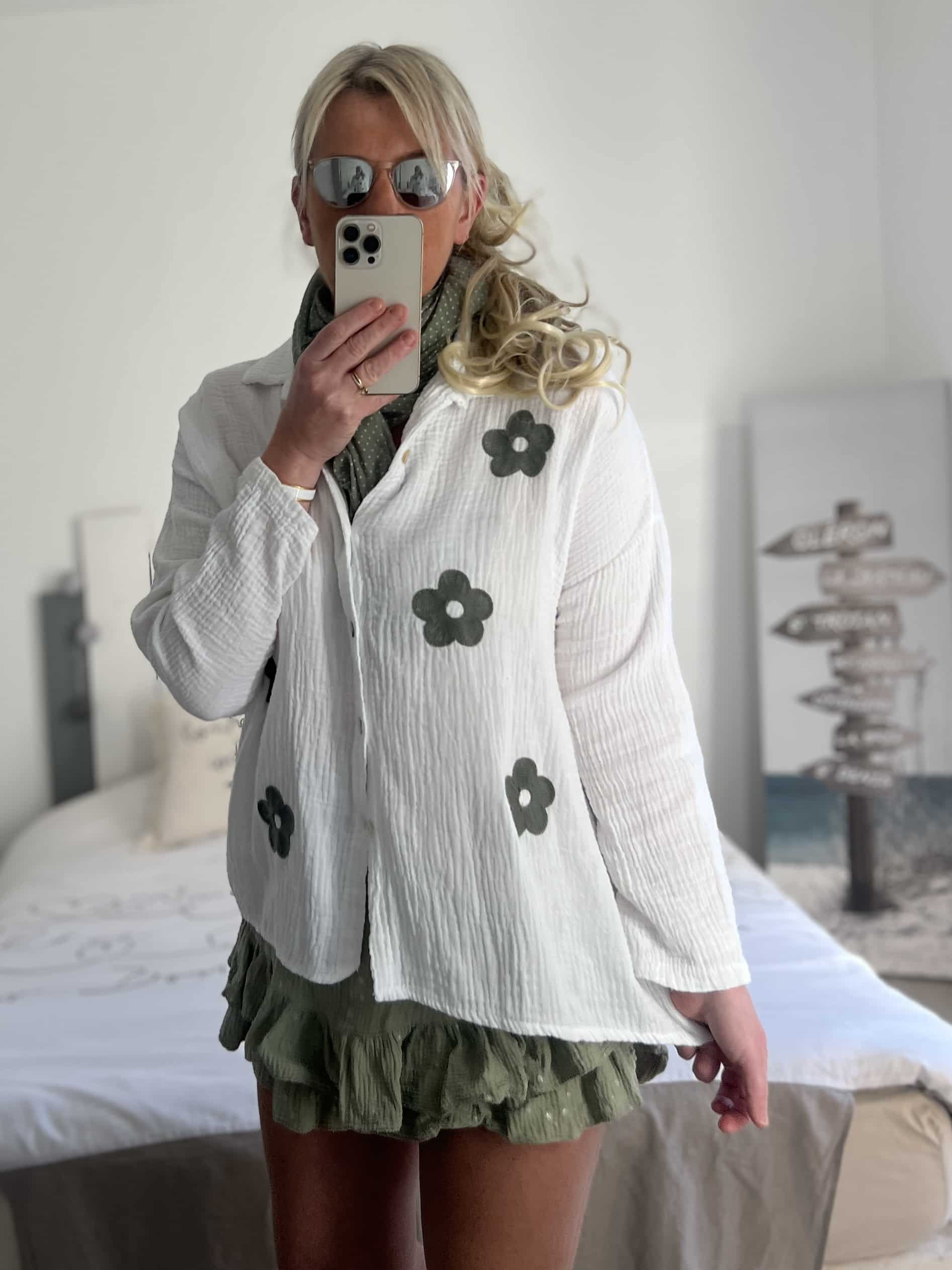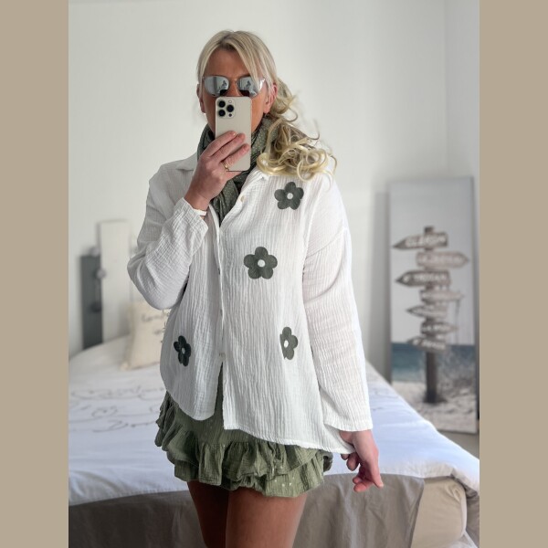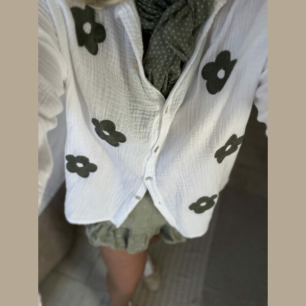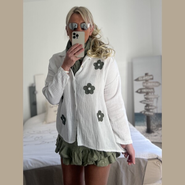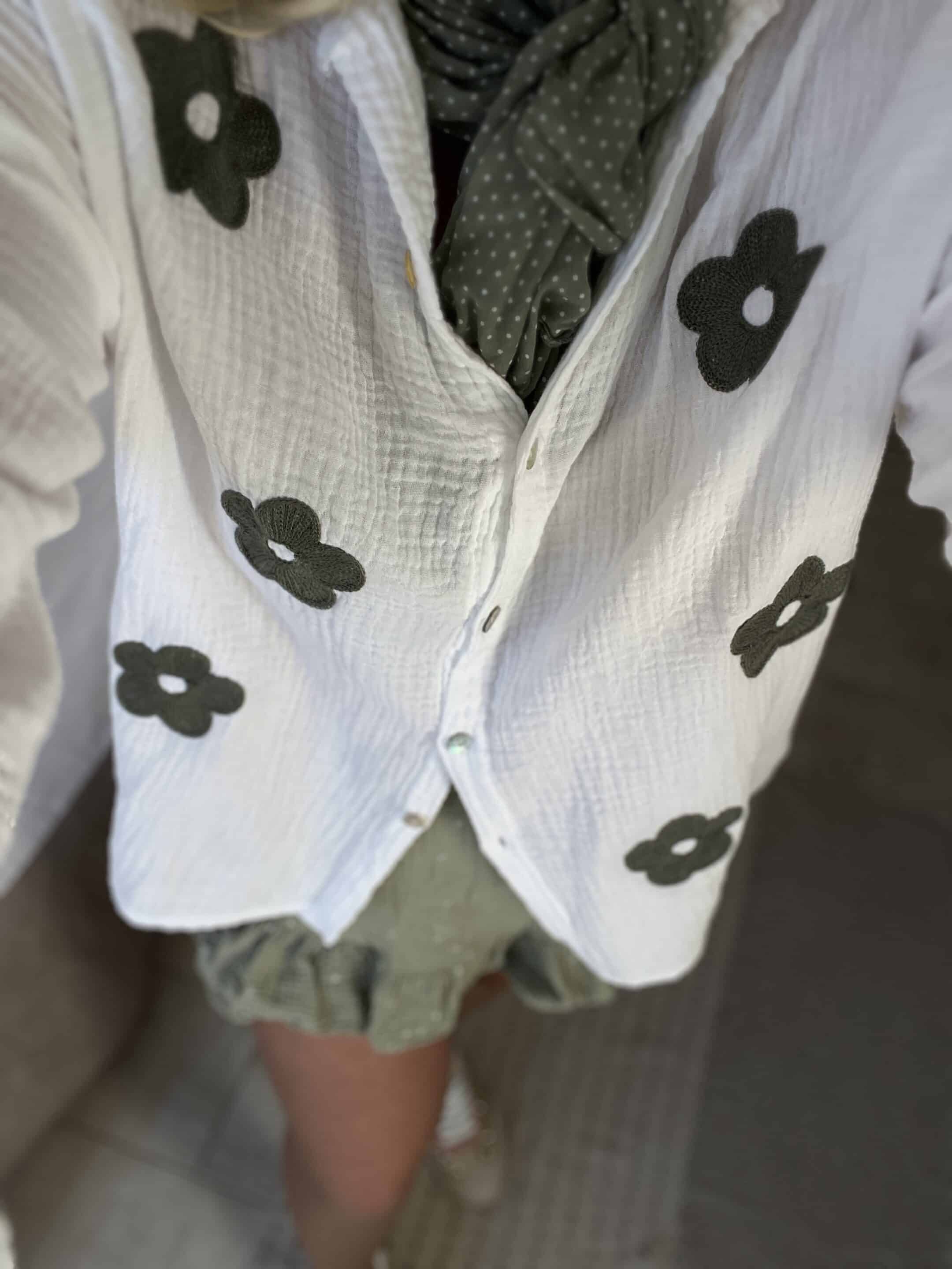Chemise gaze de coton taille unique 38/42 fleurs brodées