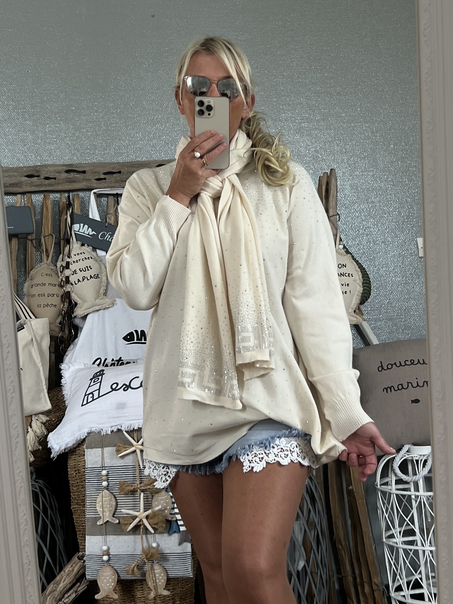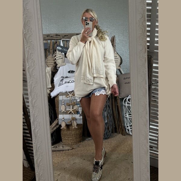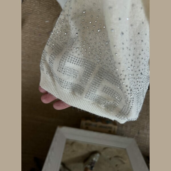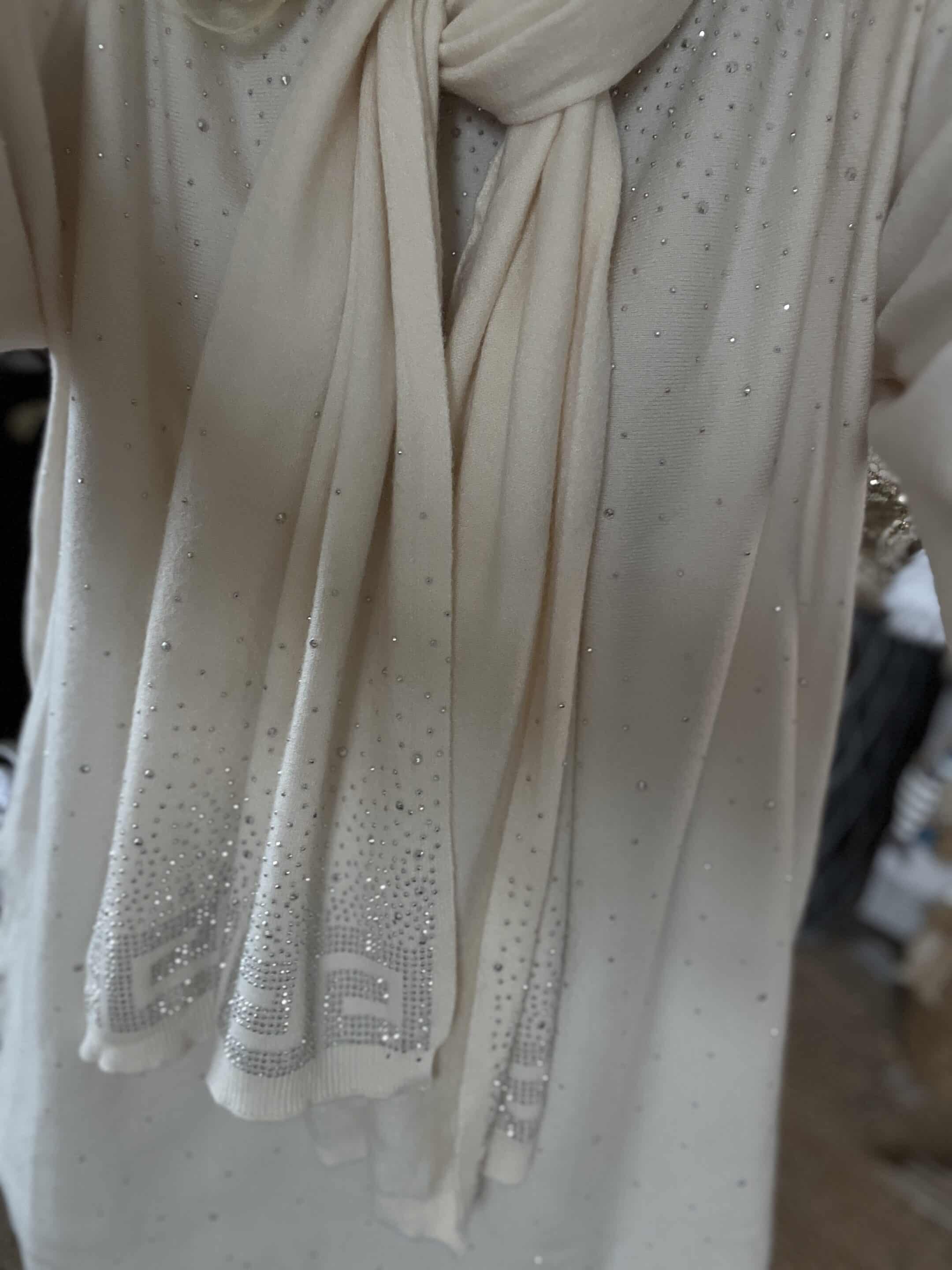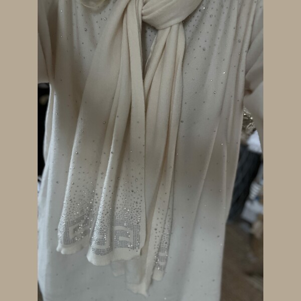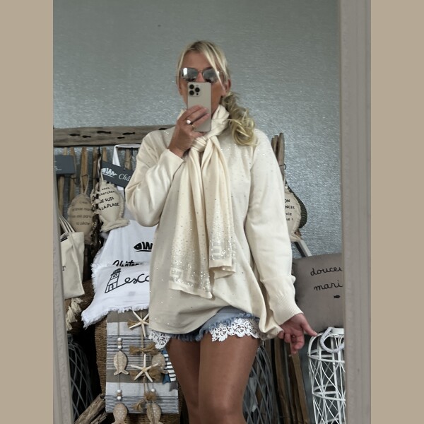 Duo pull écharpe strass écru