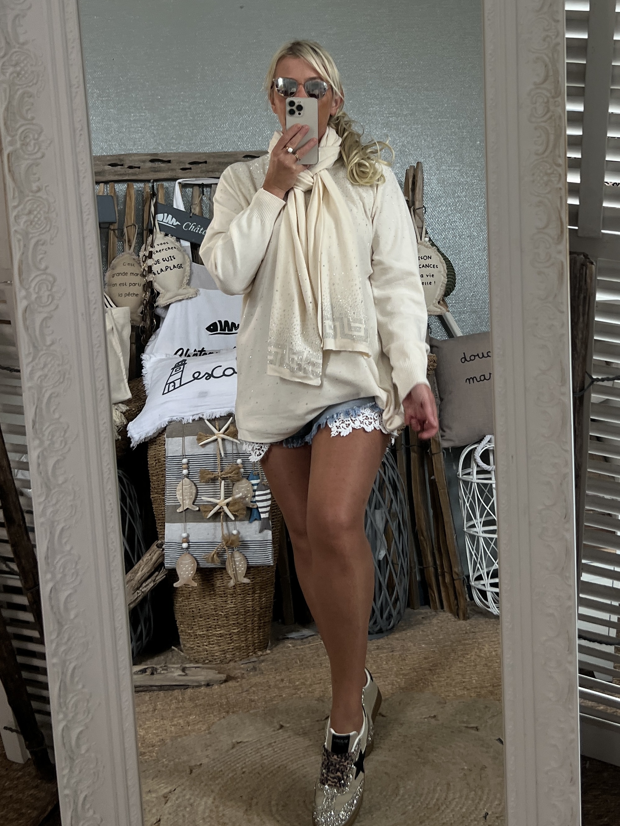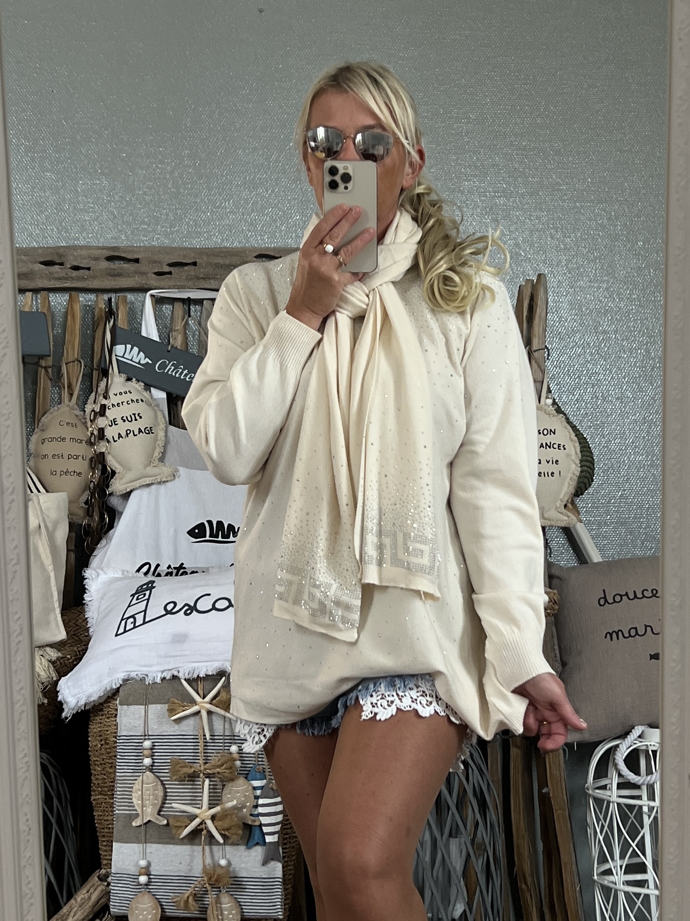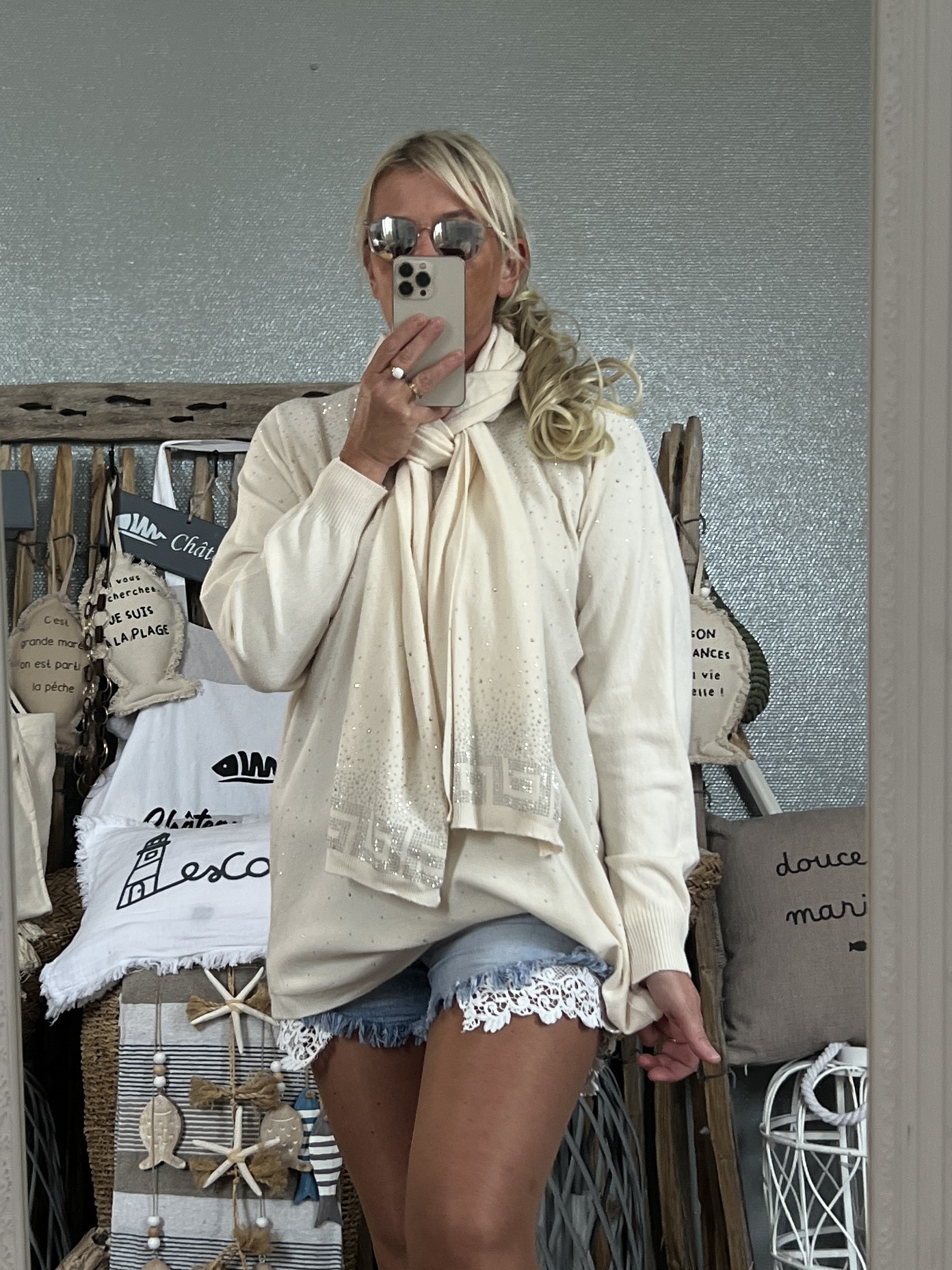 Duo pull écharpe strass écru