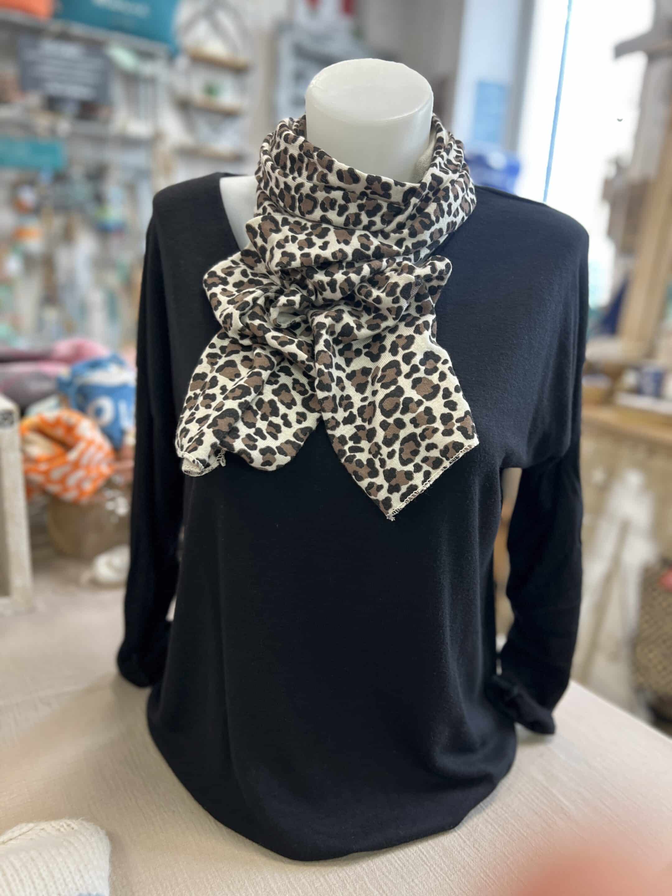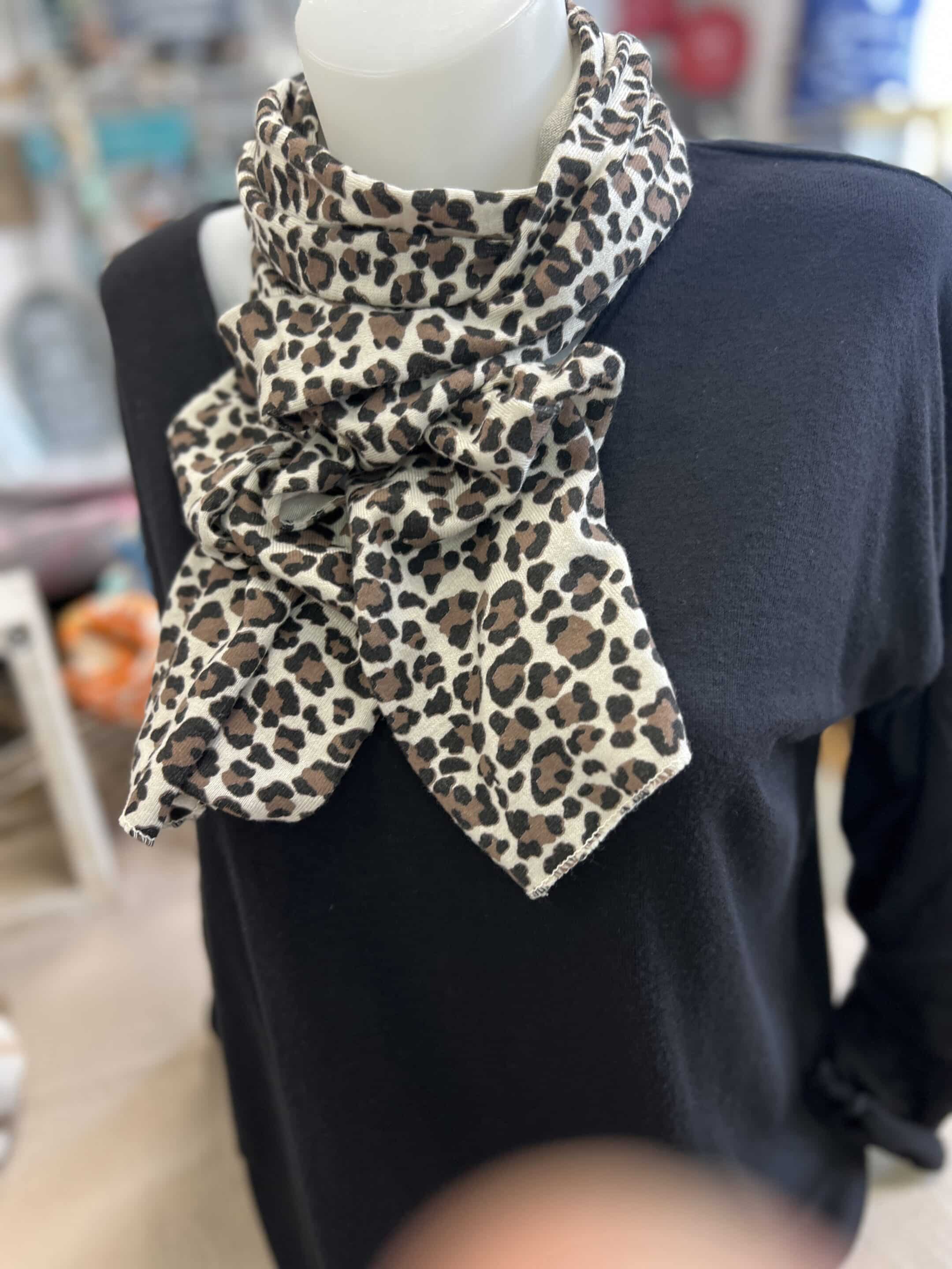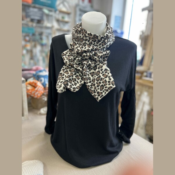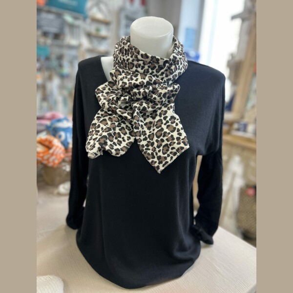 Duo pull fin noir écharpe léopard