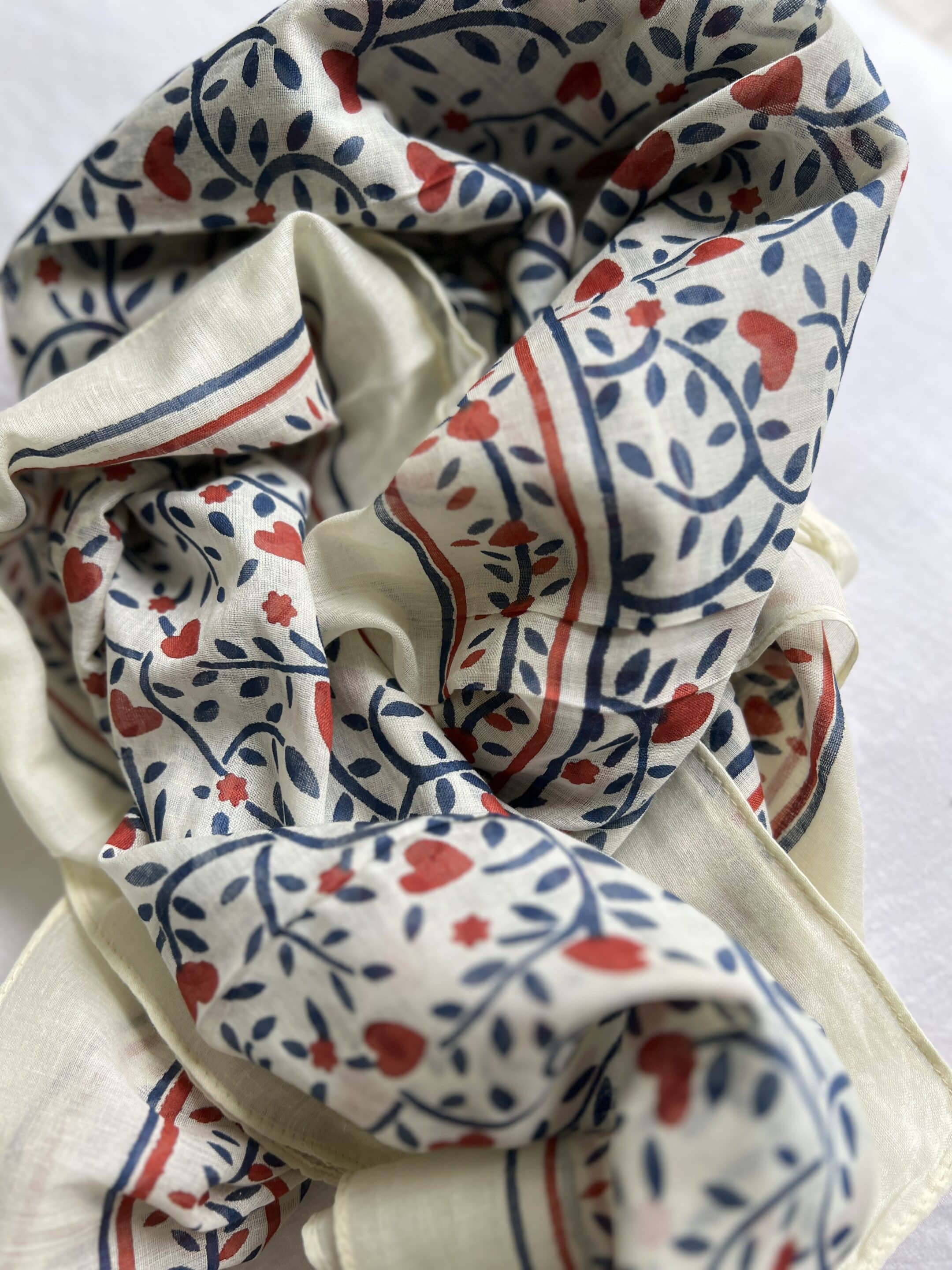 Soyez le premier à laisser votre avis sur “Écharpe carrée cœur marine”