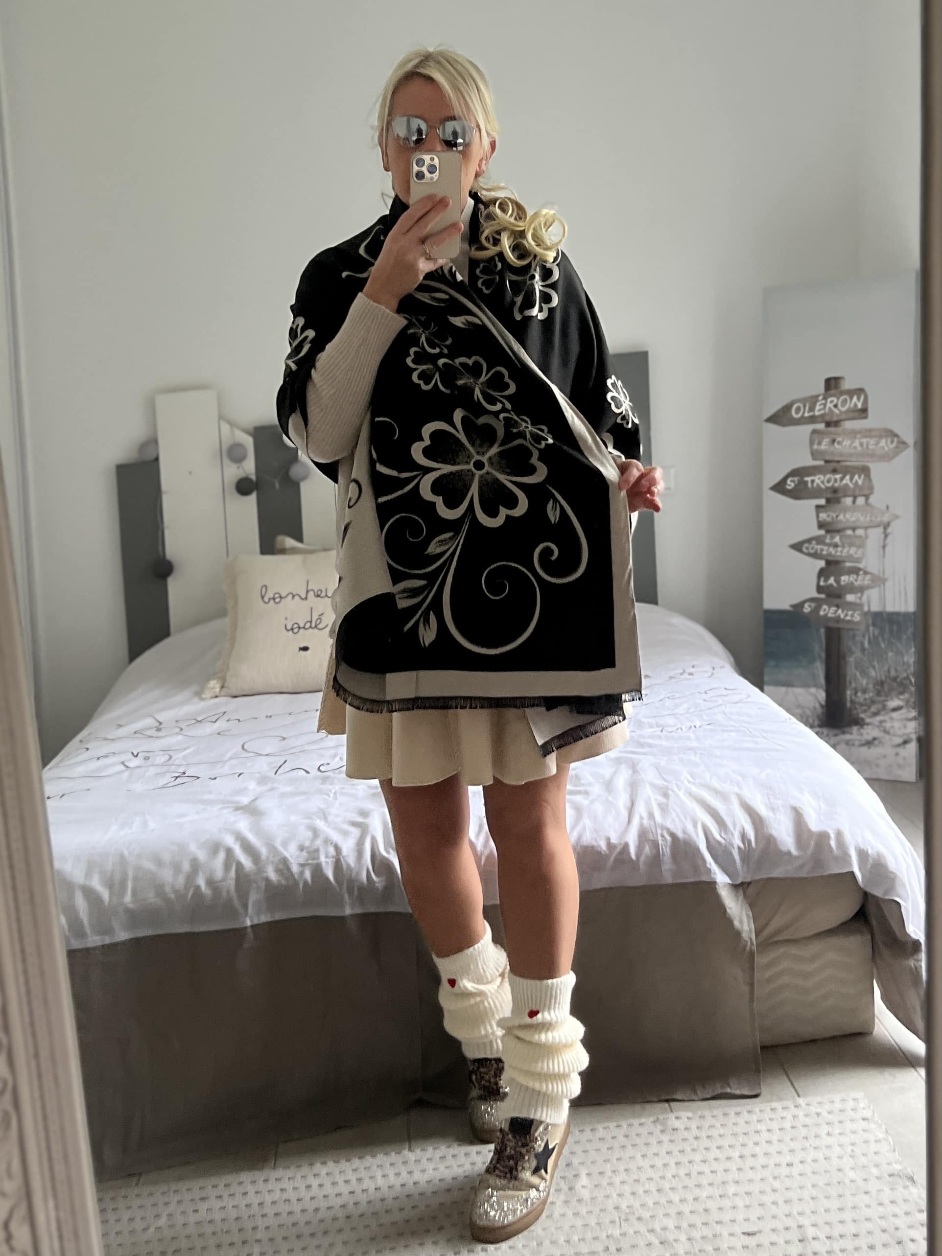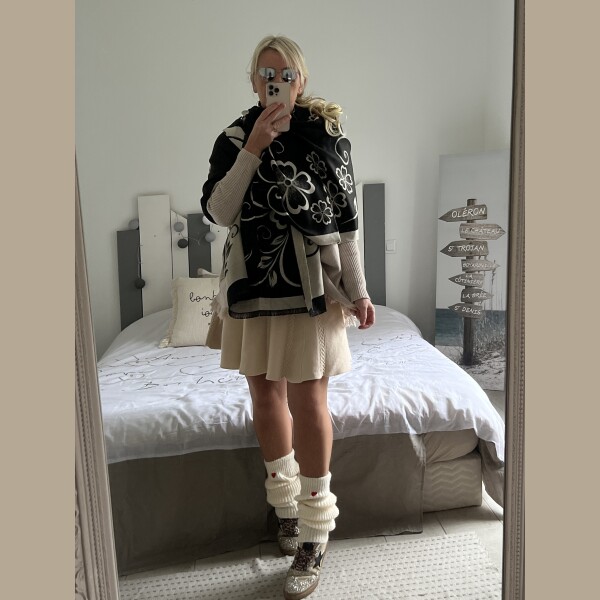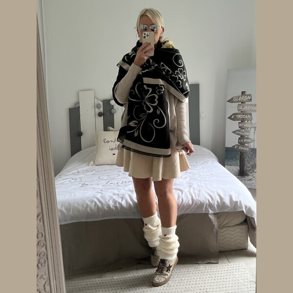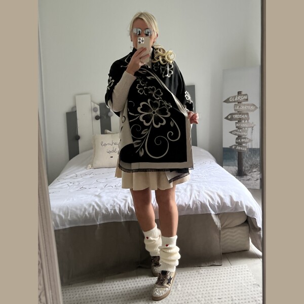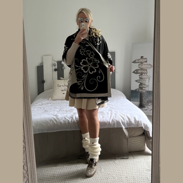 Echarpe châle beige noir