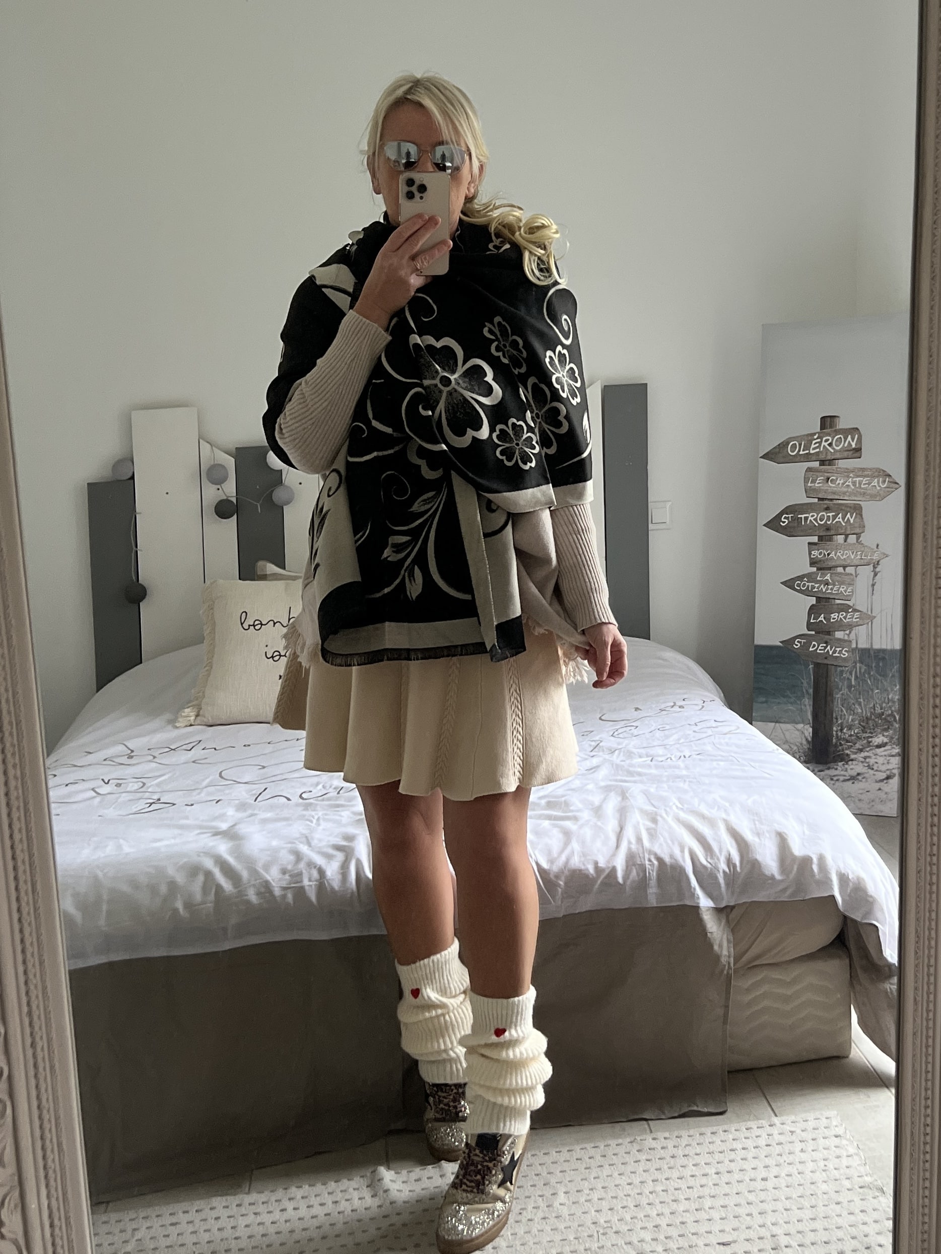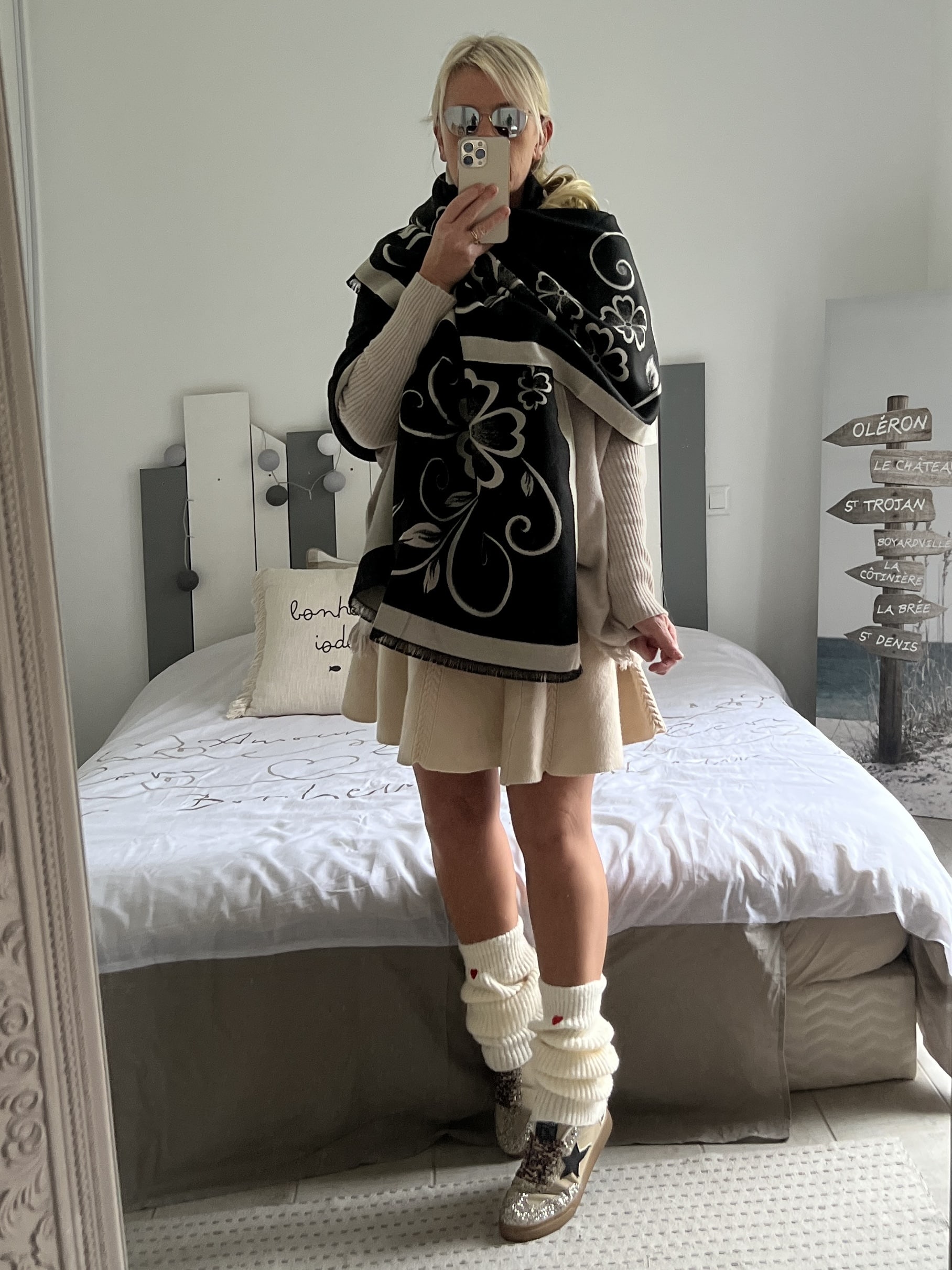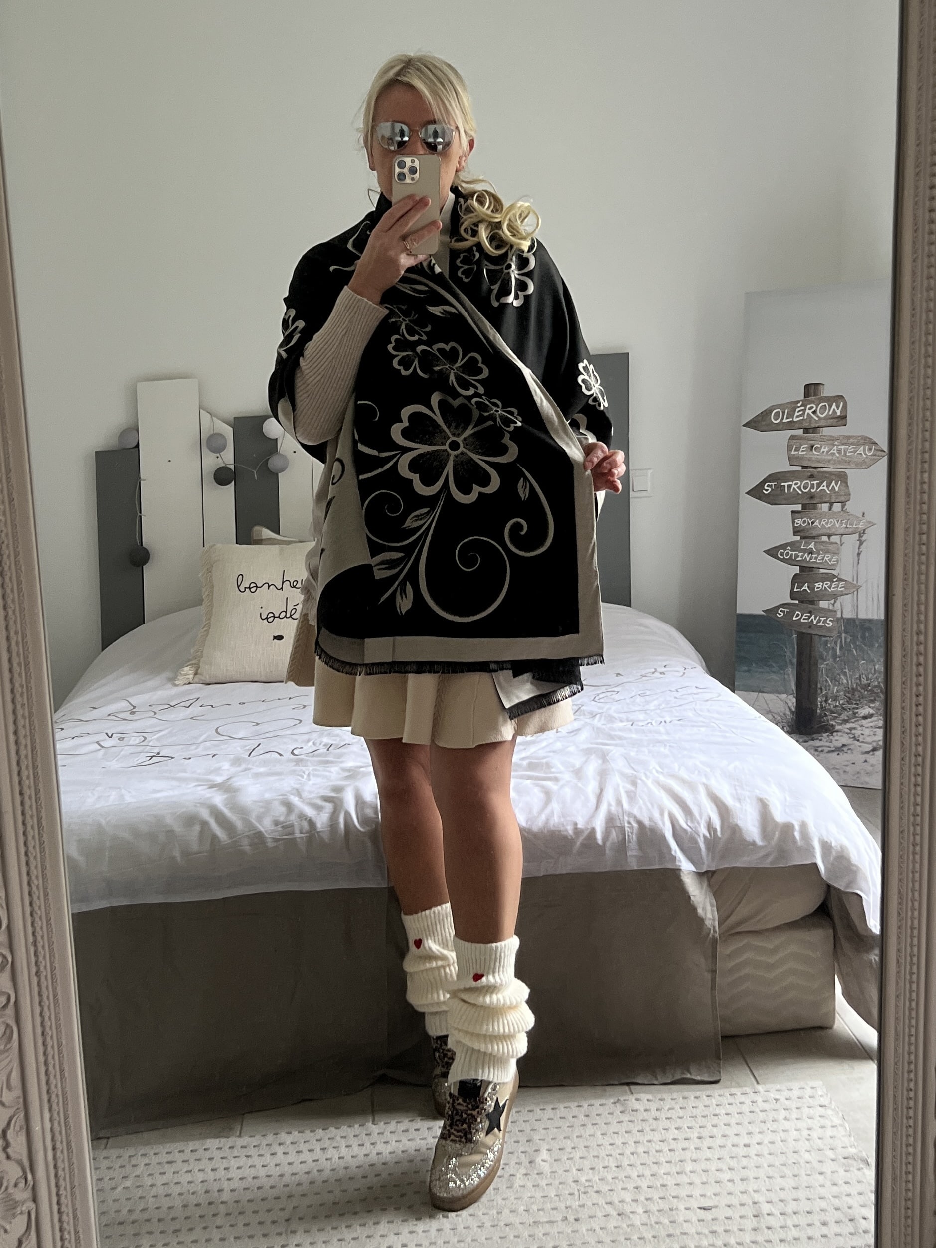 Echarpe châle beige noir