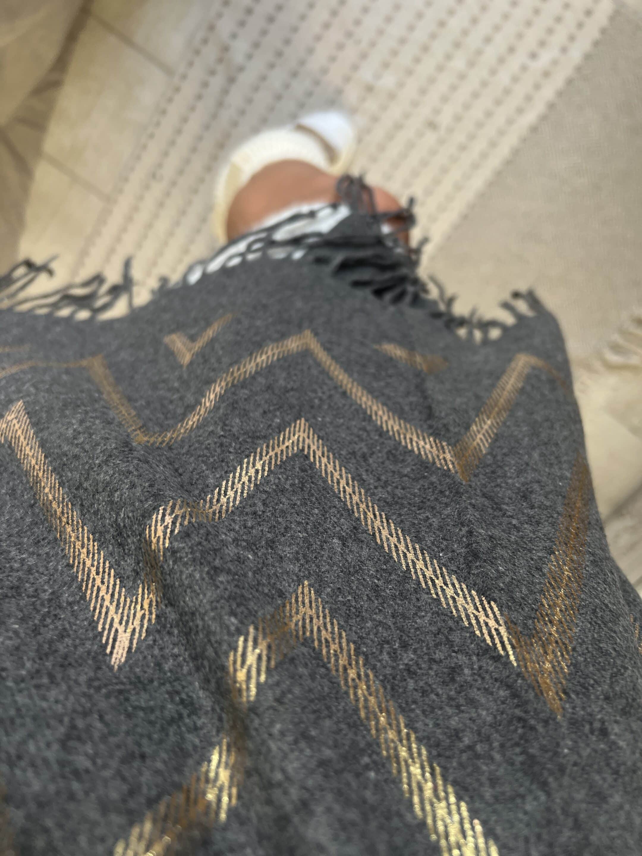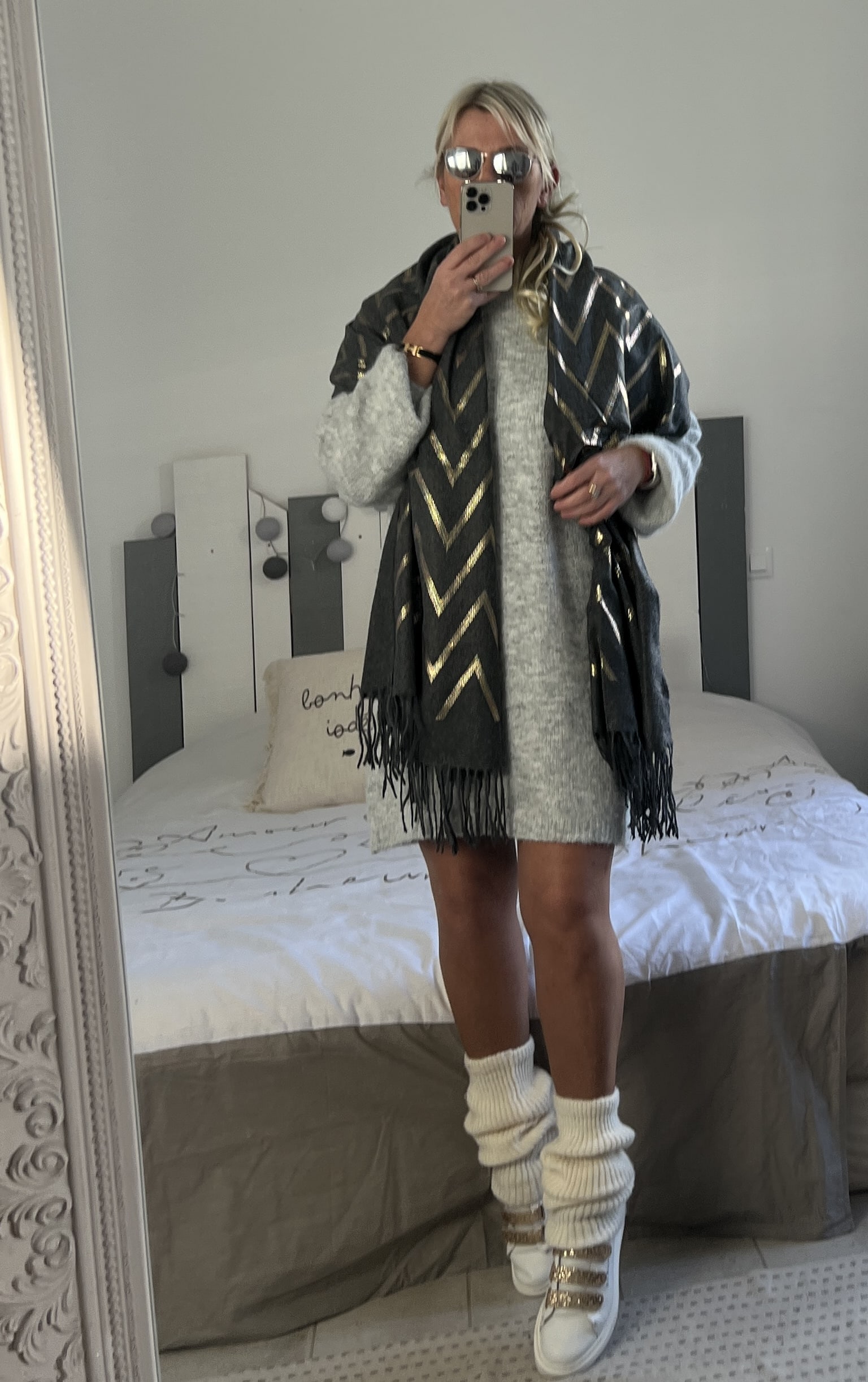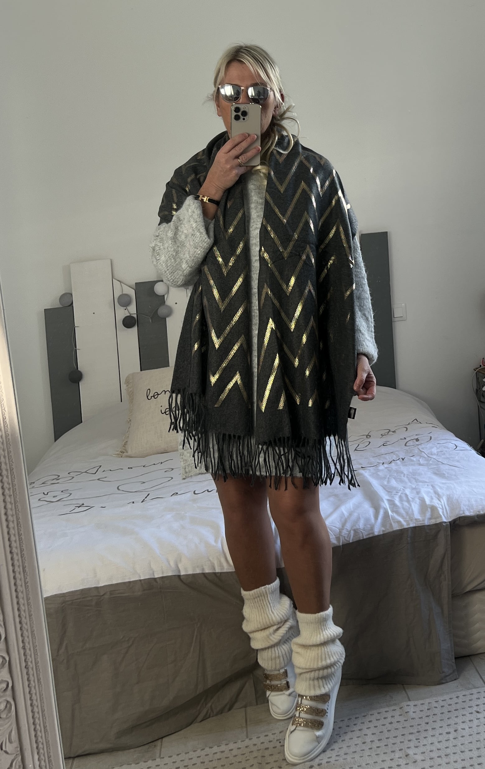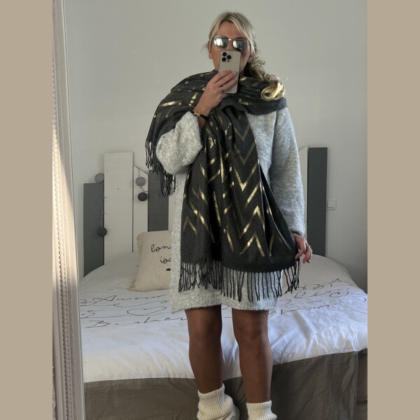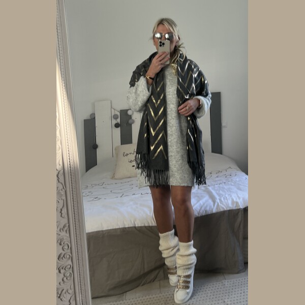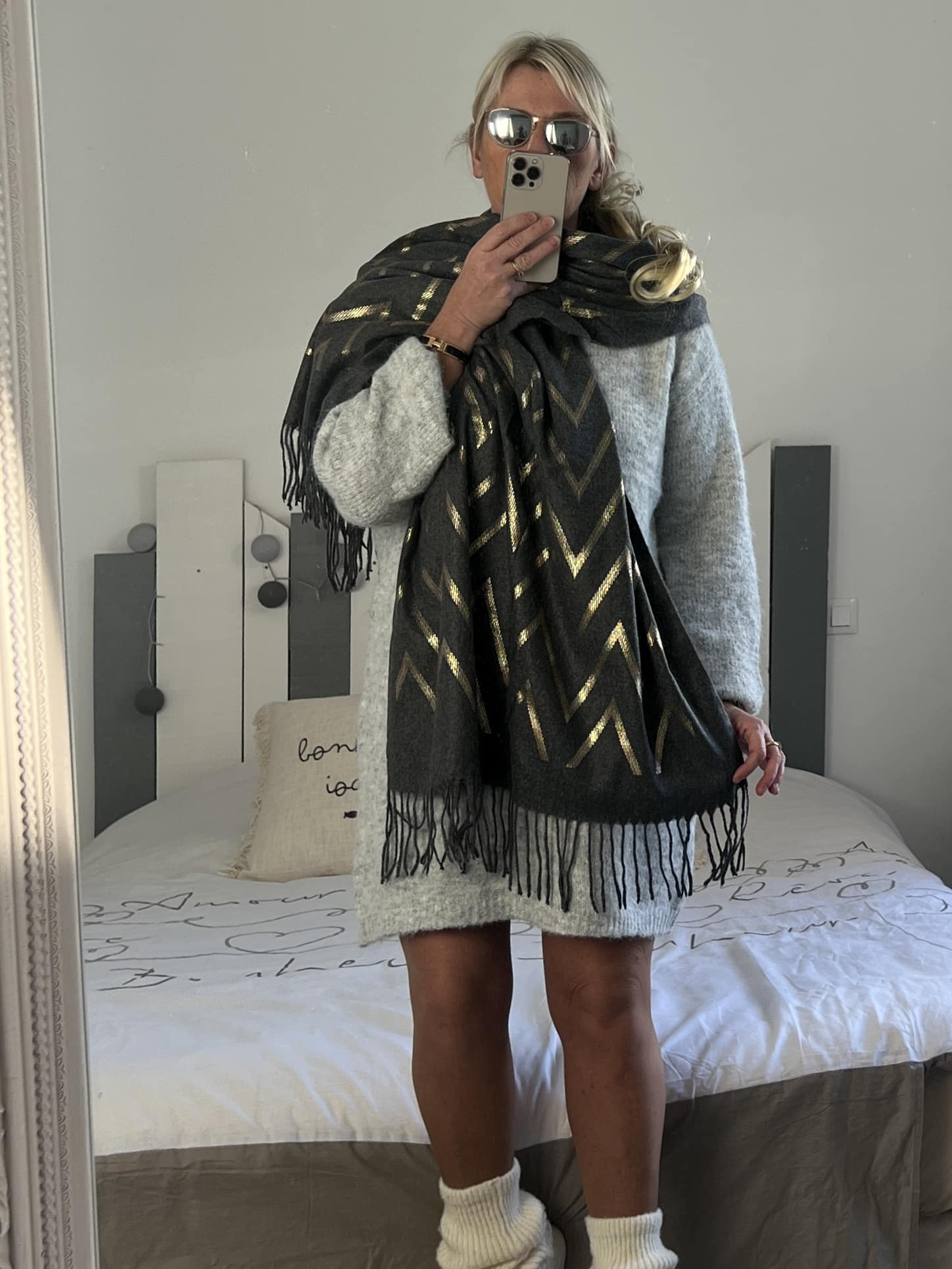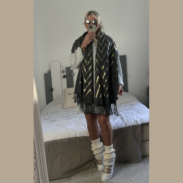 Soyez le premier à laisser votre avis sur “Echarpe châle CDS grise dorée”