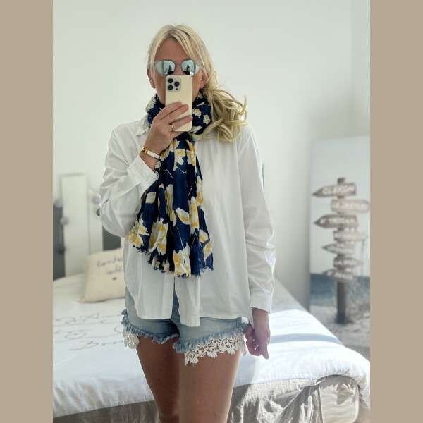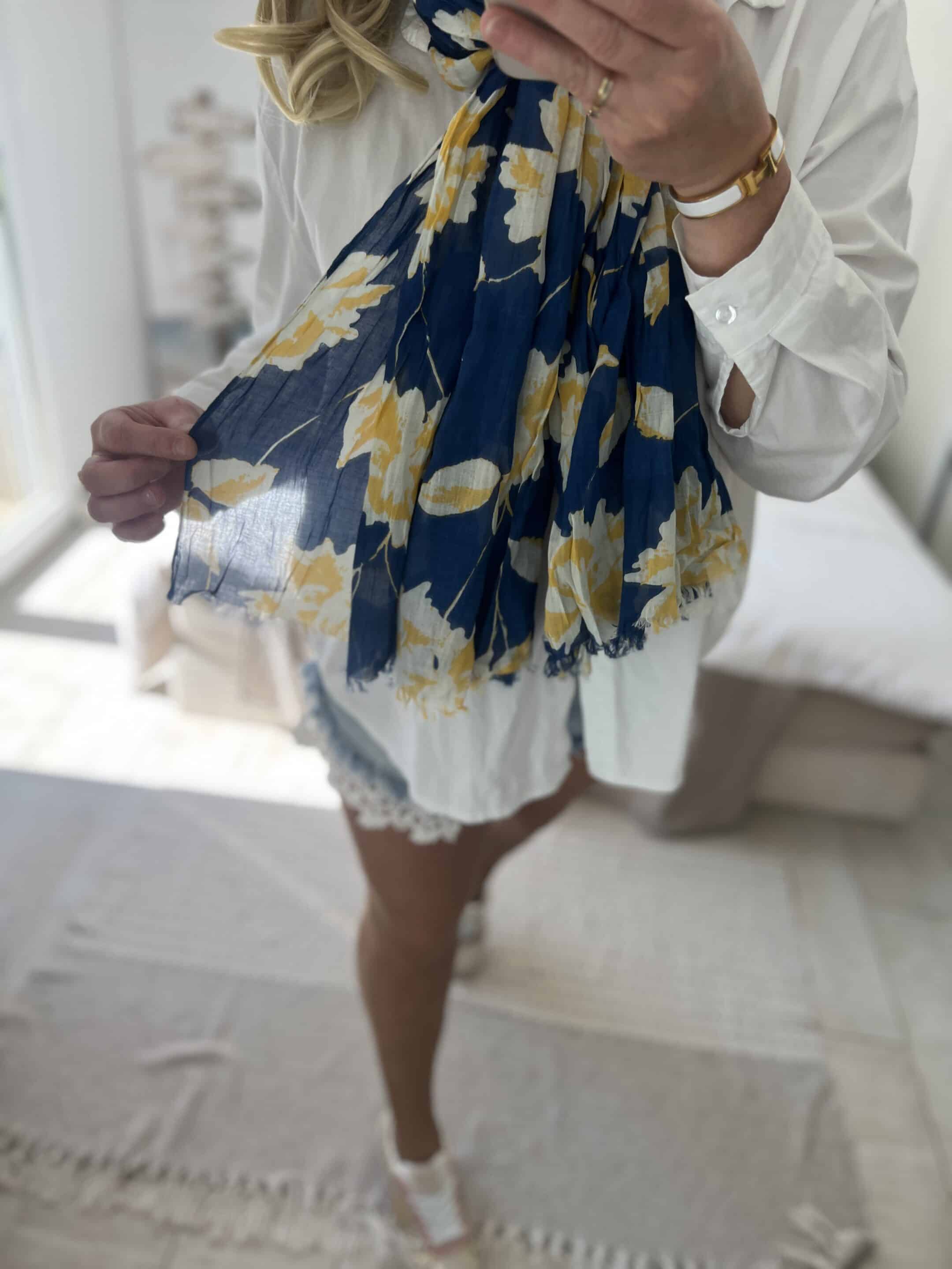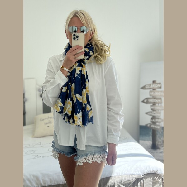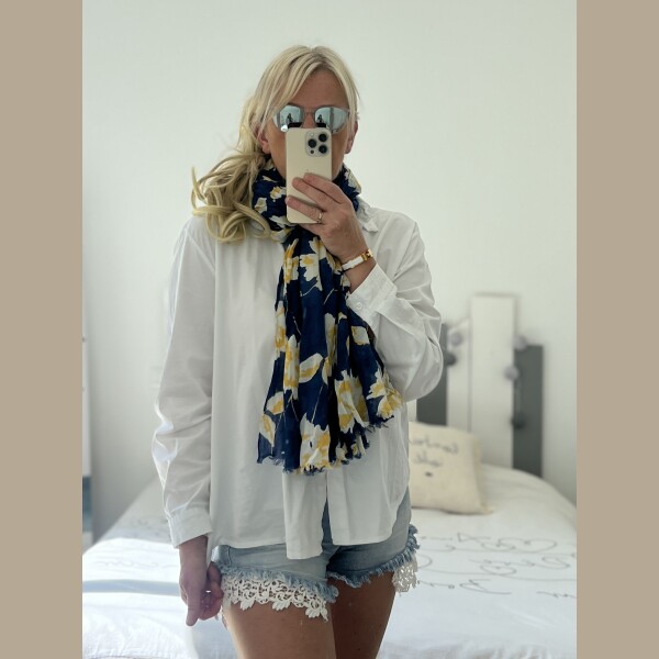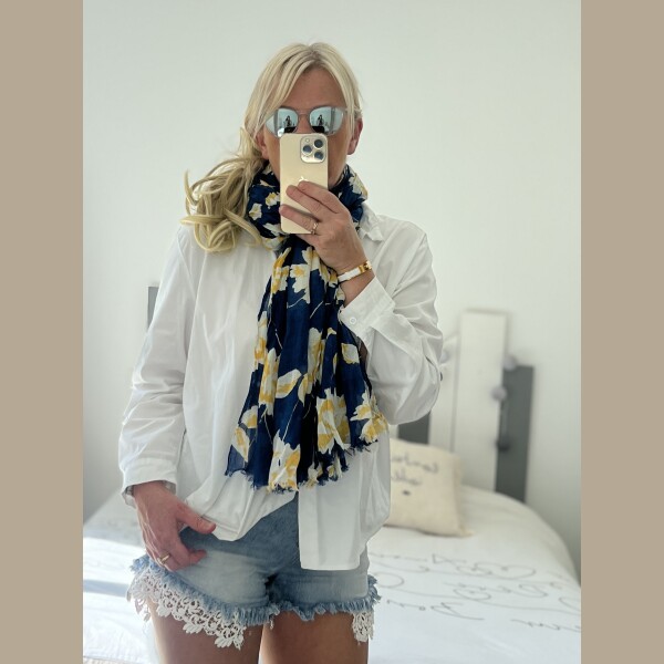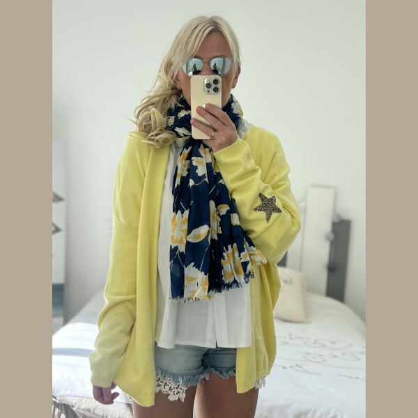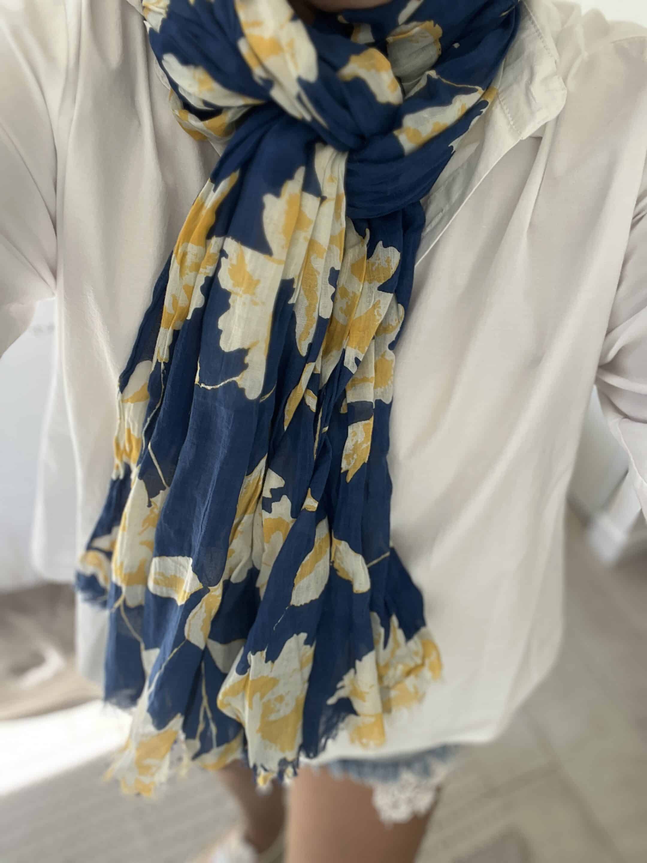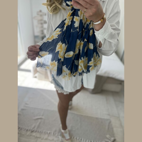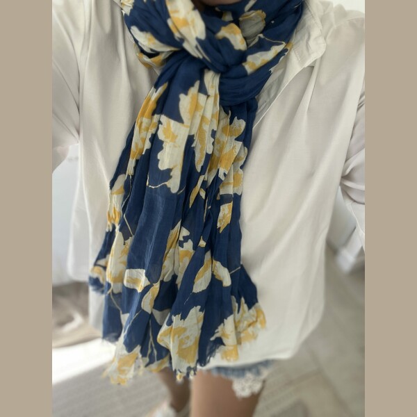 Écharpe Flowers marine jaune
