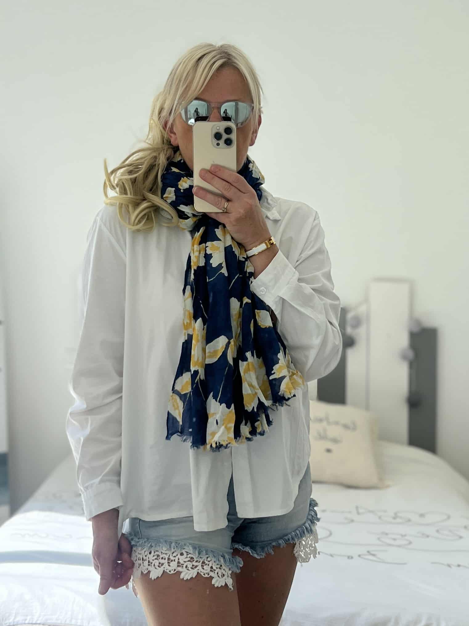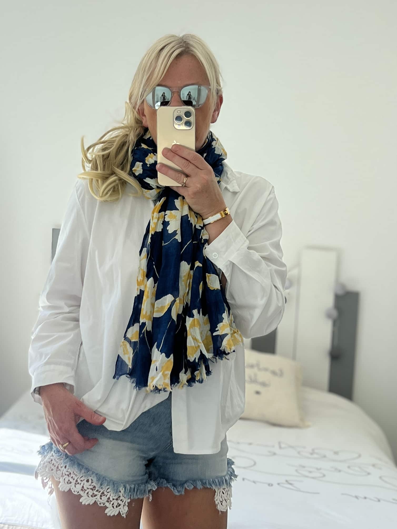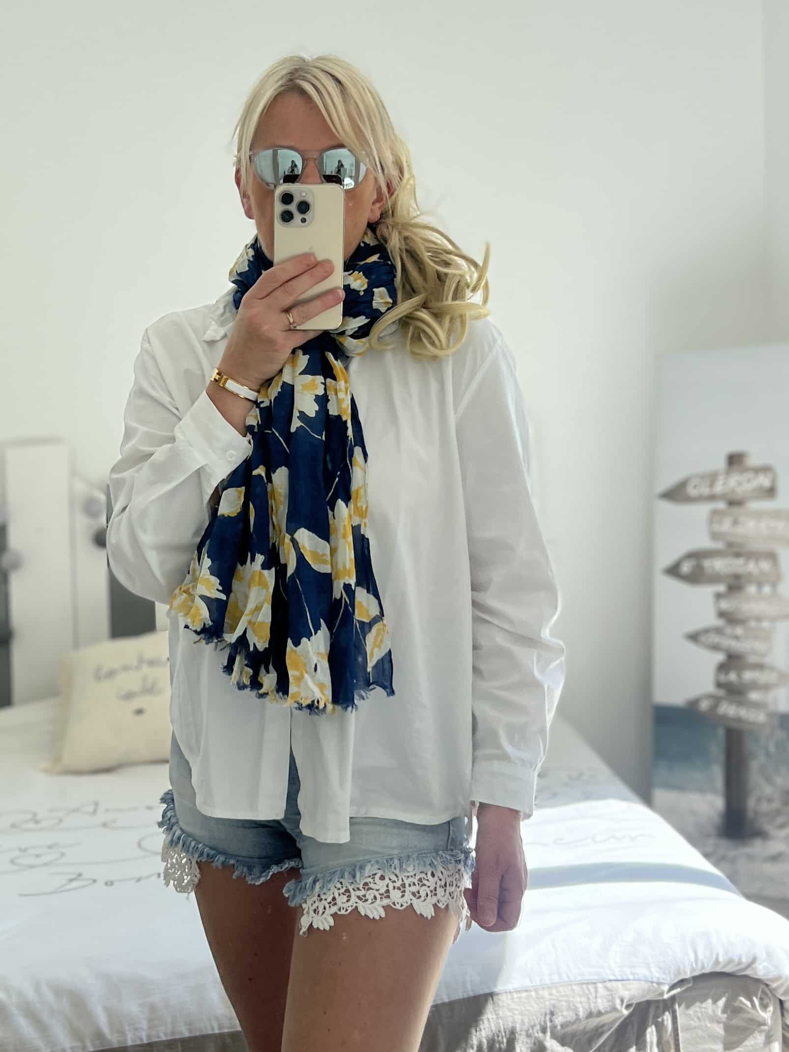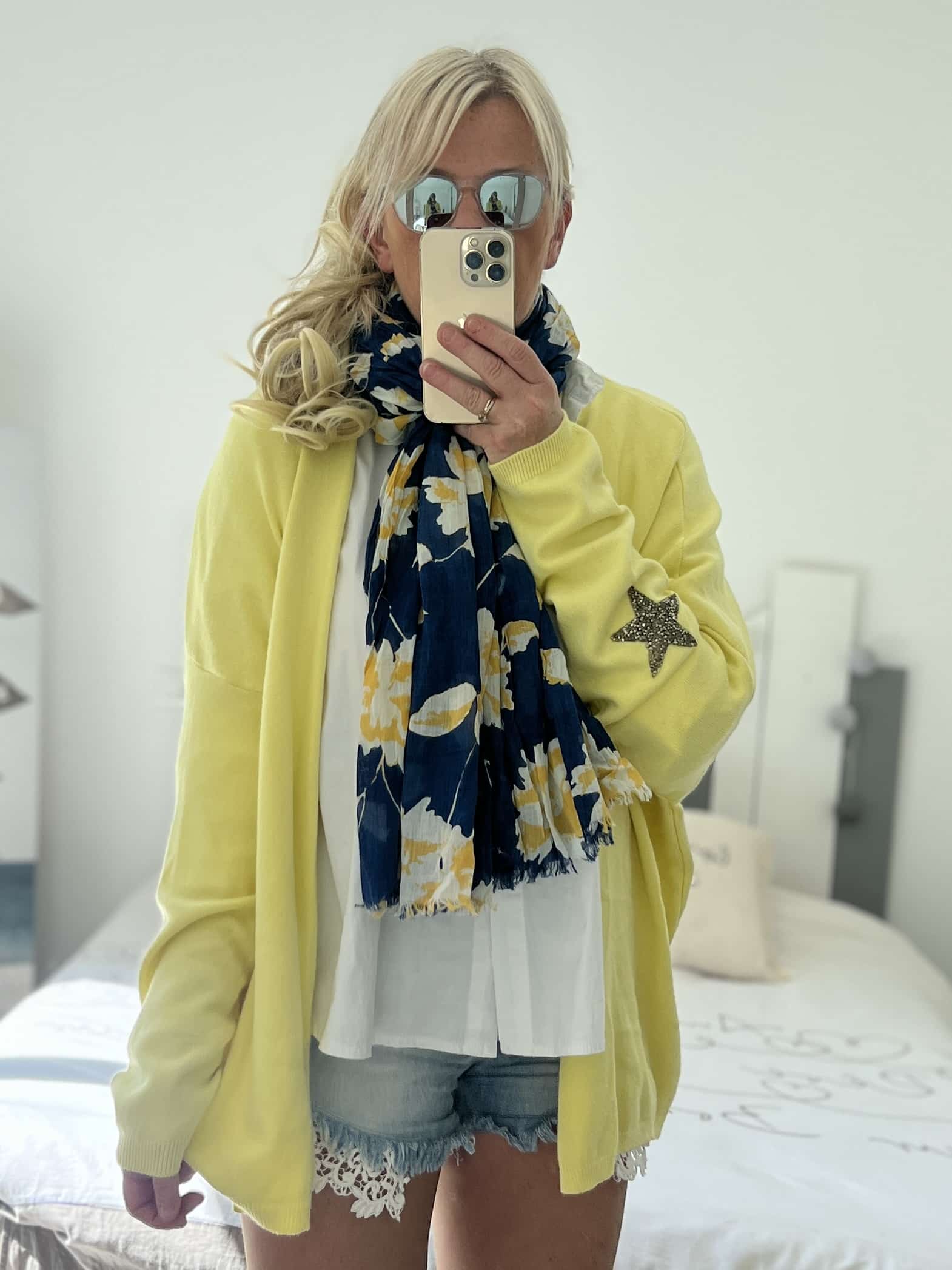 Écharpe Flowers marine jaune