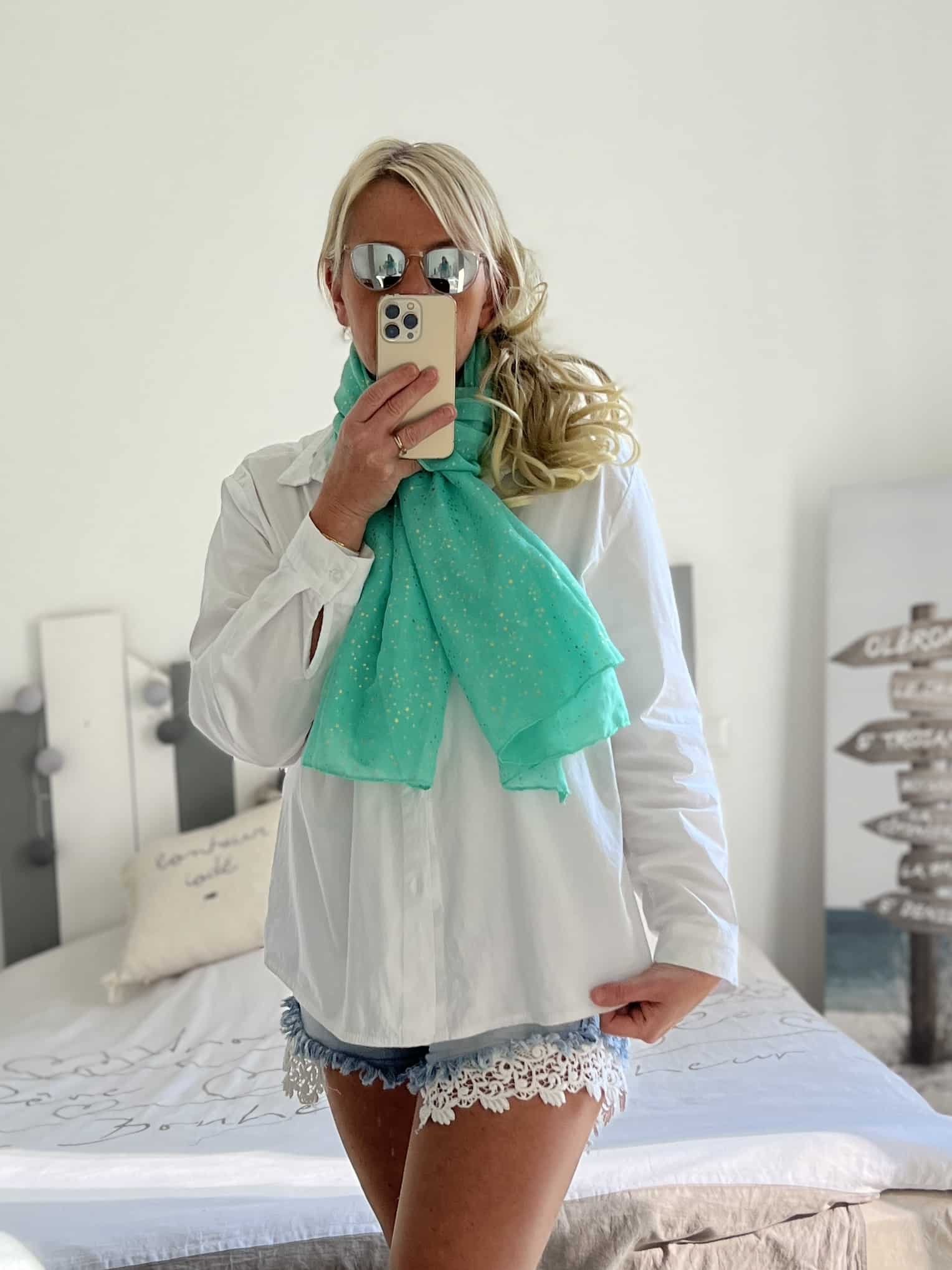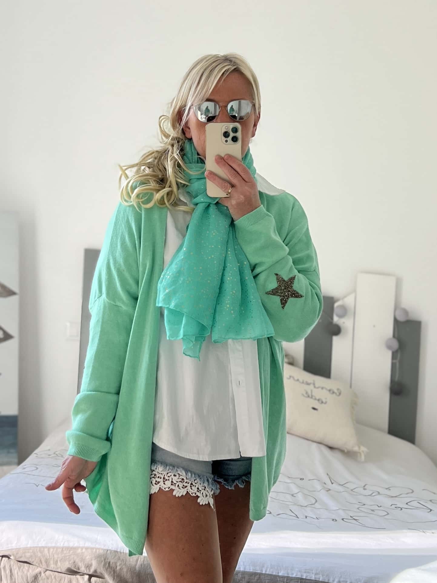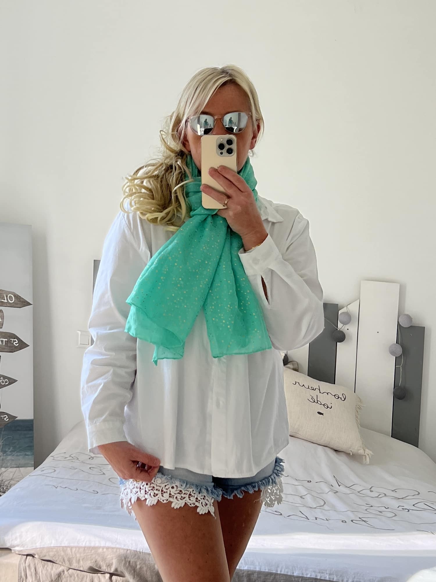 Écharpe lagon min étoiles dorées