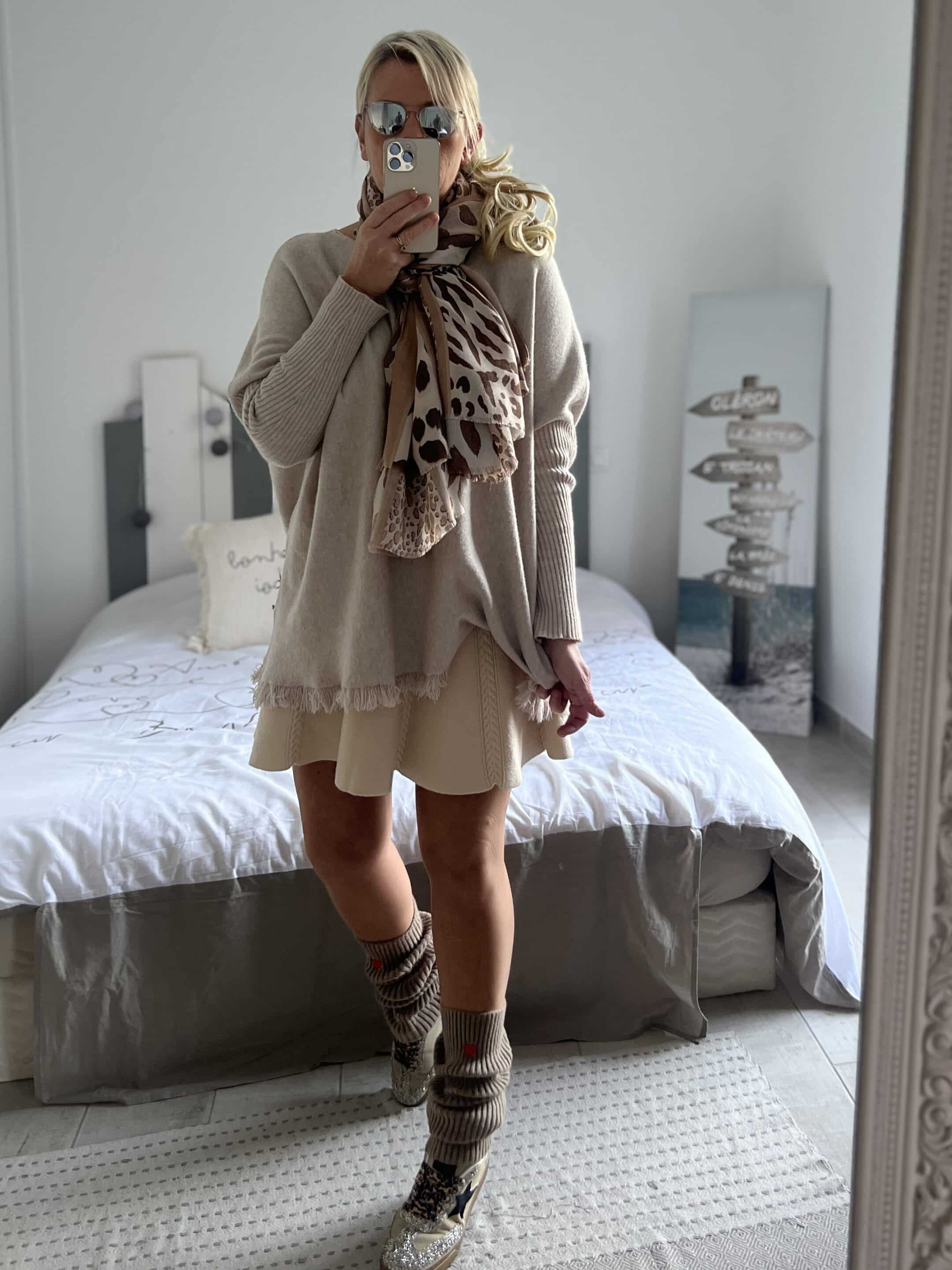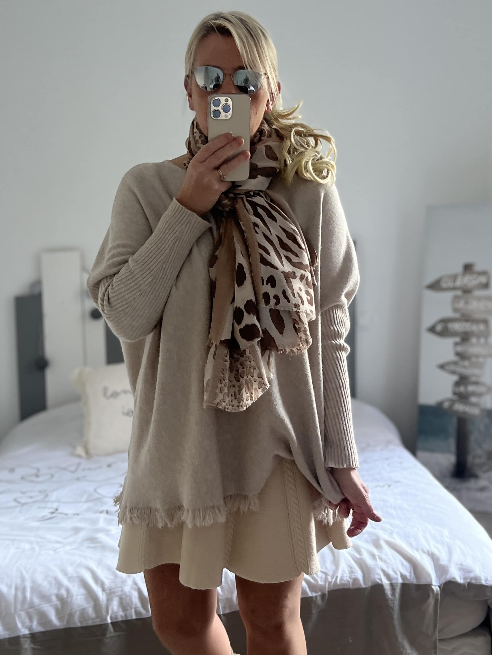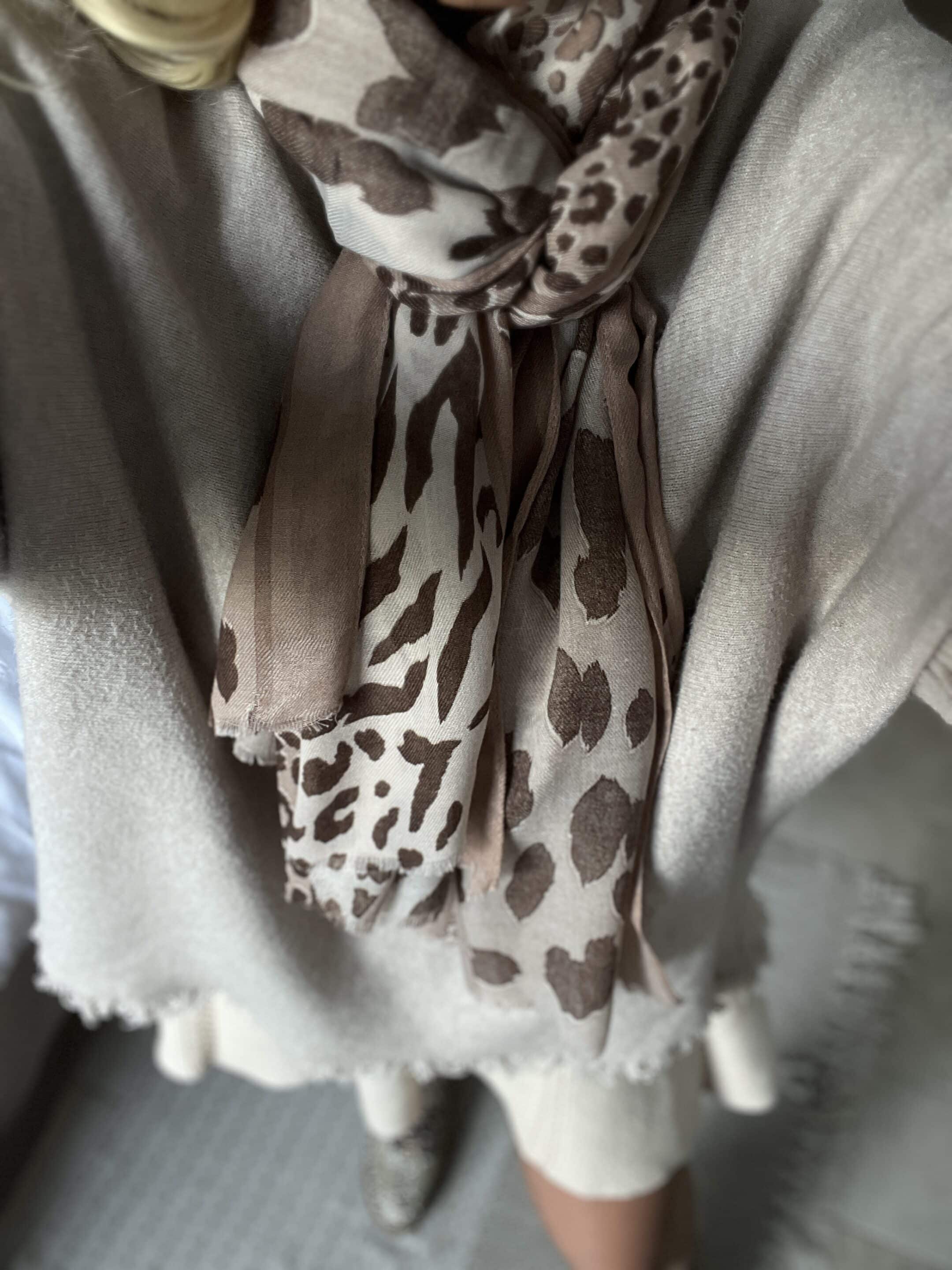 Écharpe léopard beige taupe