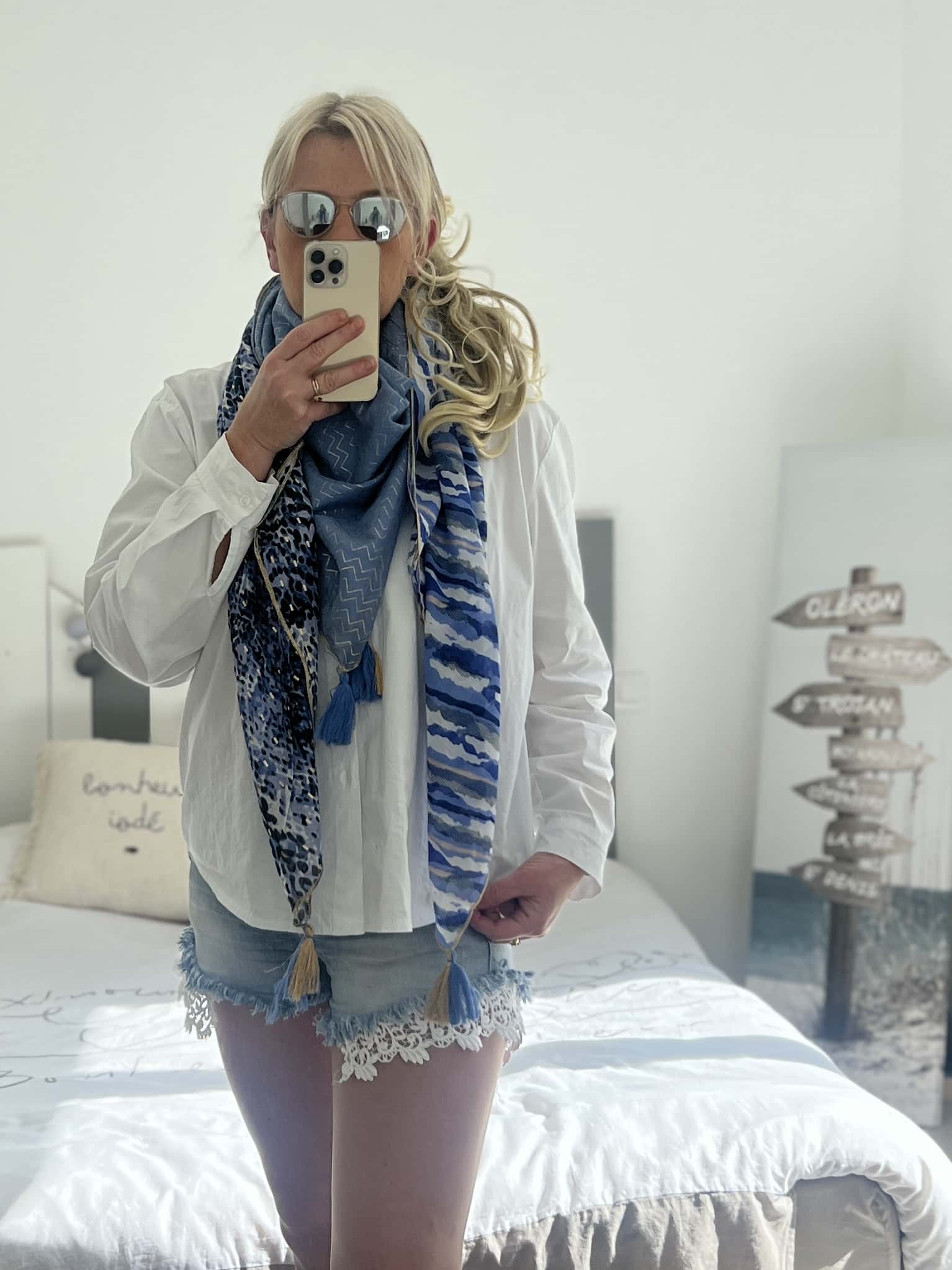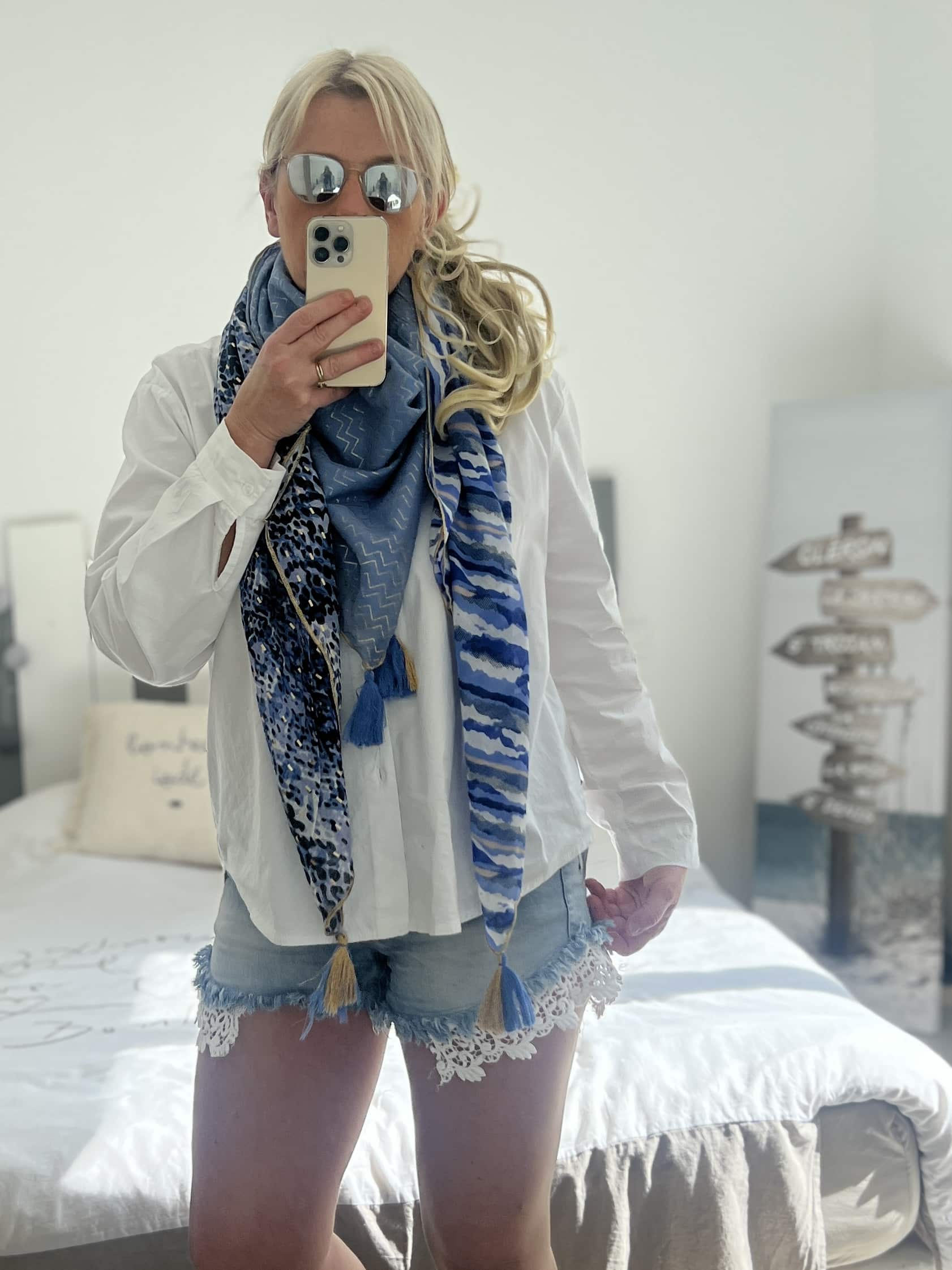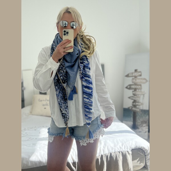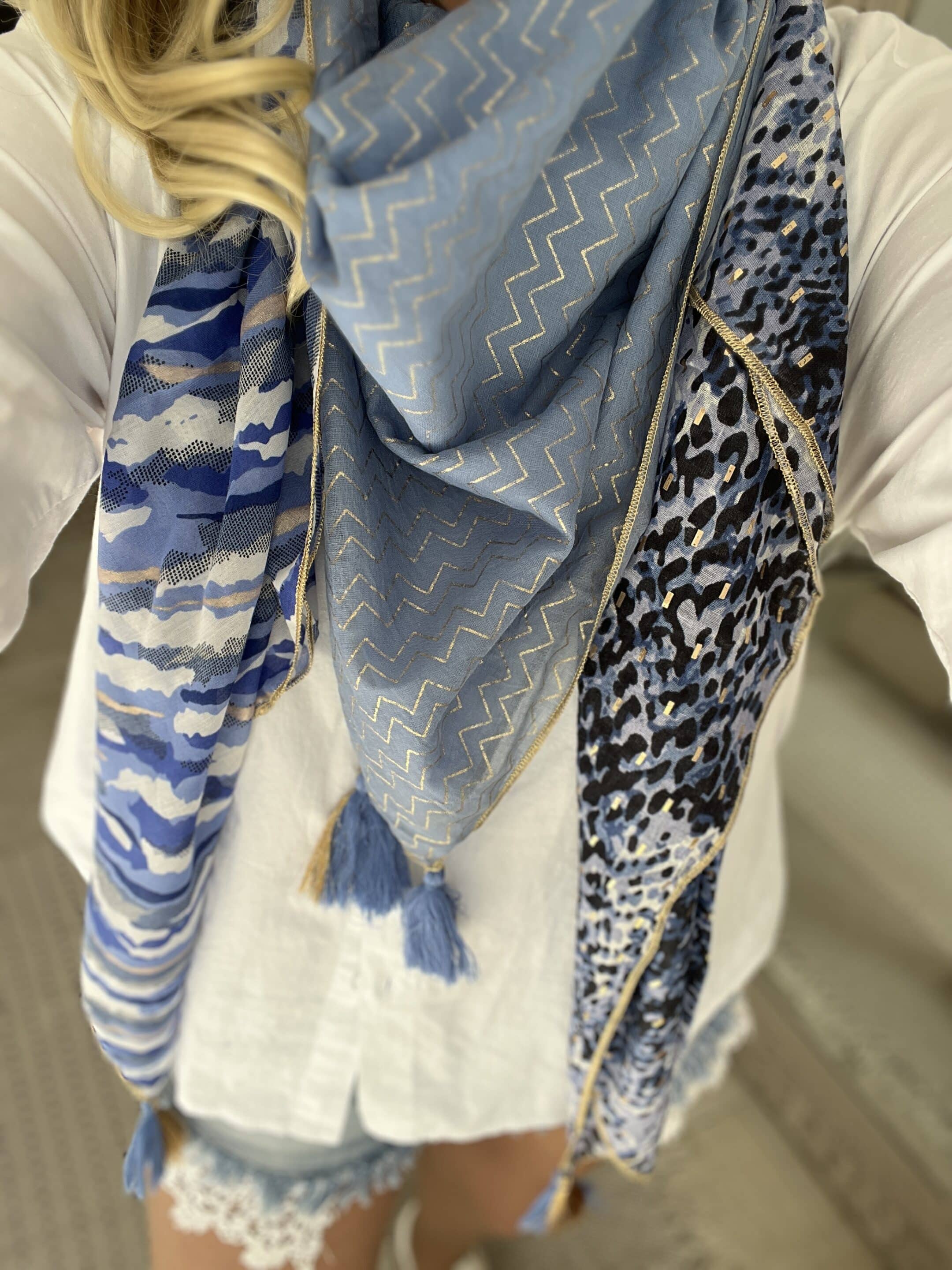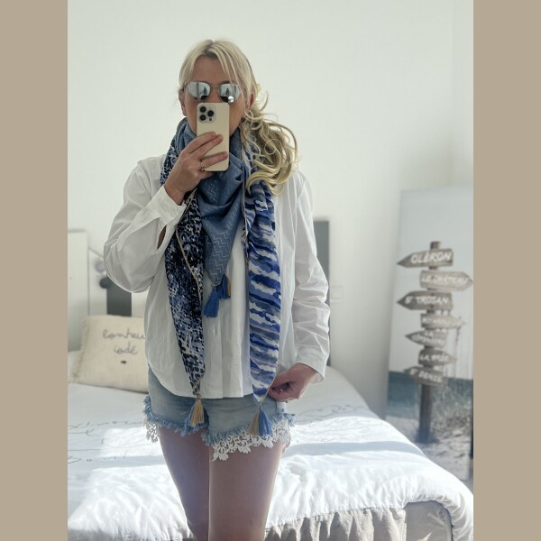 Echarpe patch bleu doré