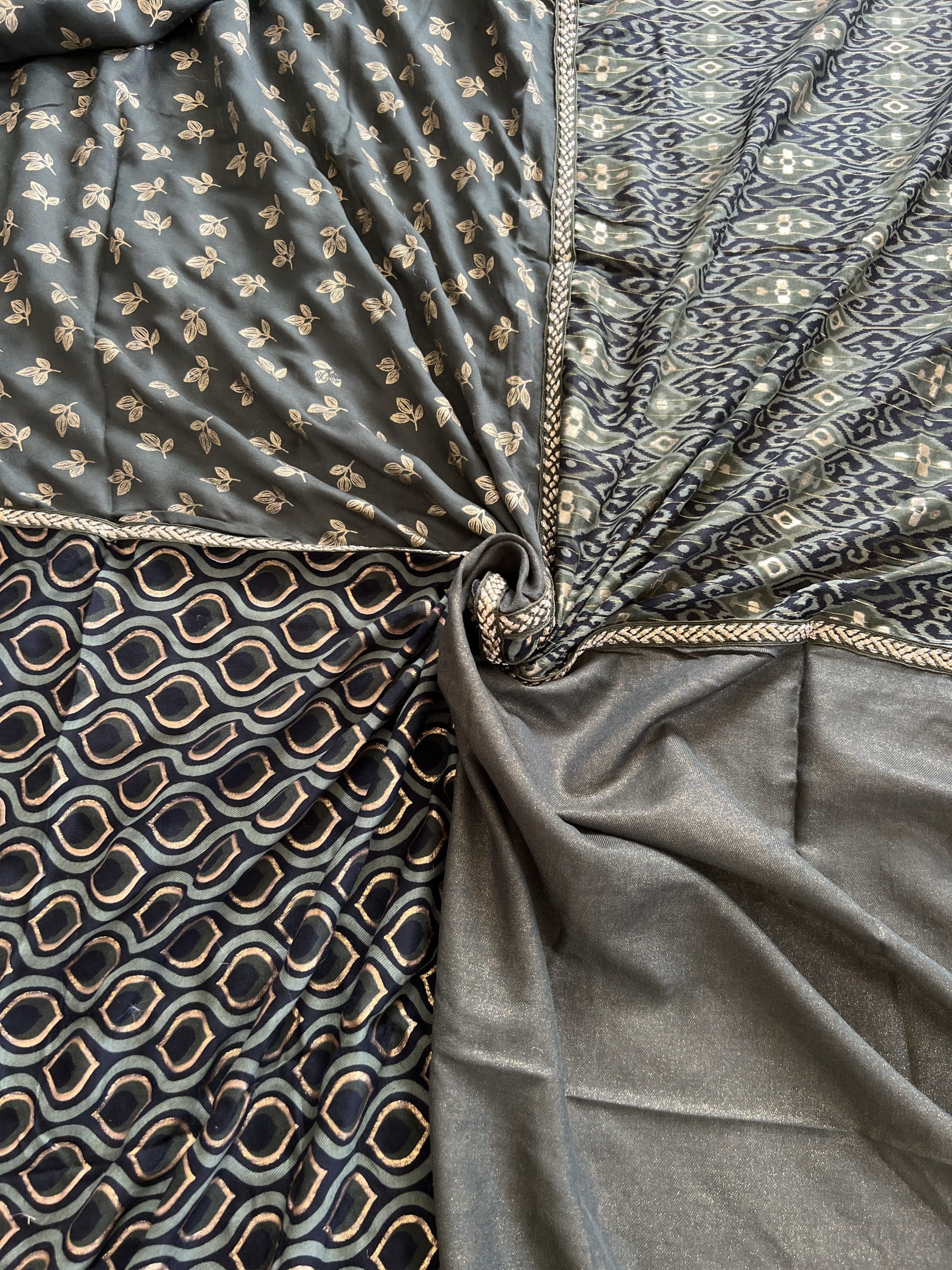 Echarpe Patch viscose pompons 4 carrés différents sur la même Echarpe