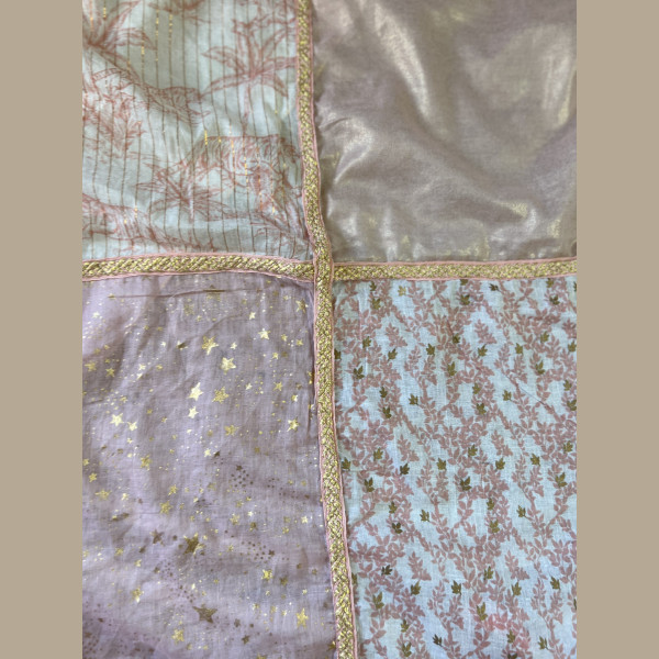 Echarpe Patch viscose pompons 4 carrés différents sur la même Echarpe