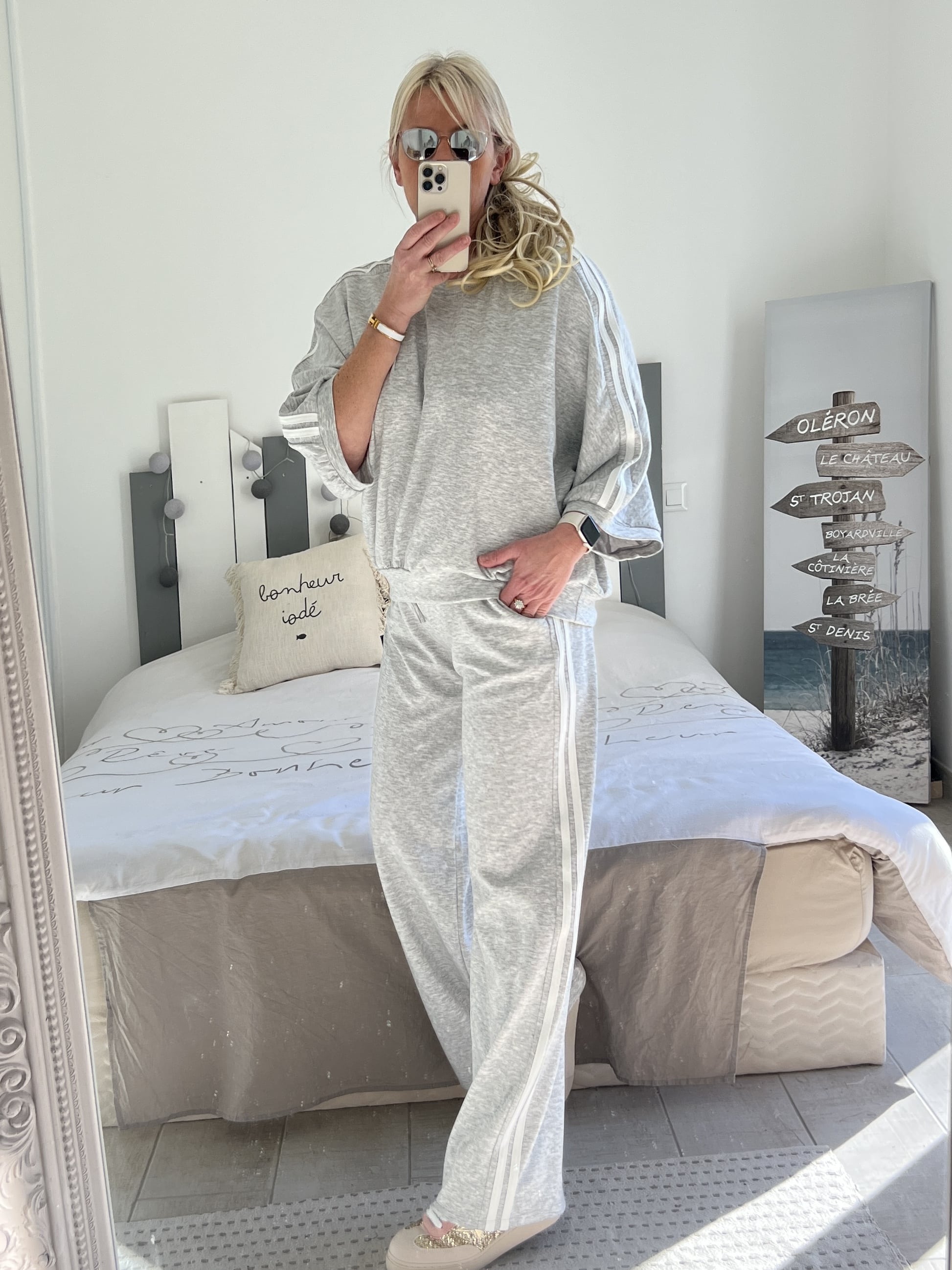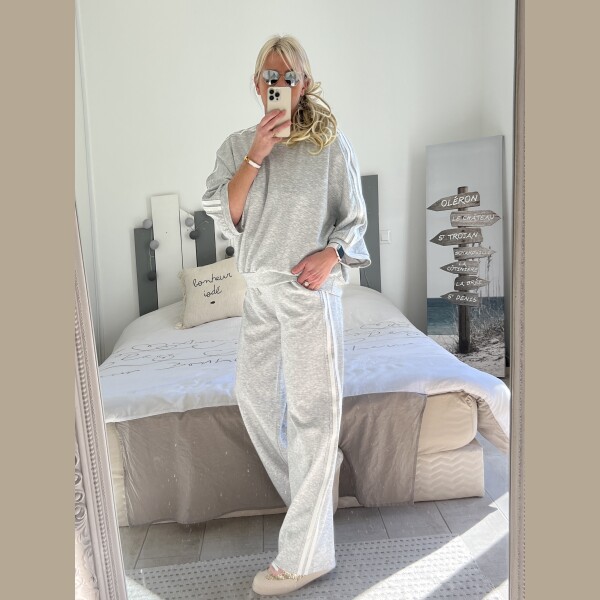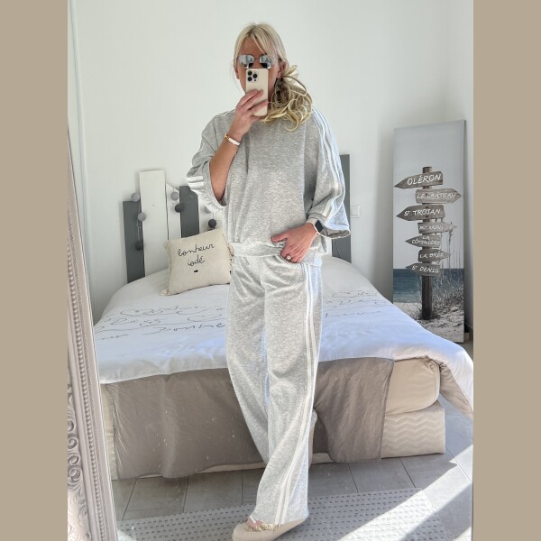 Ensemble jogg gris bandes blanches