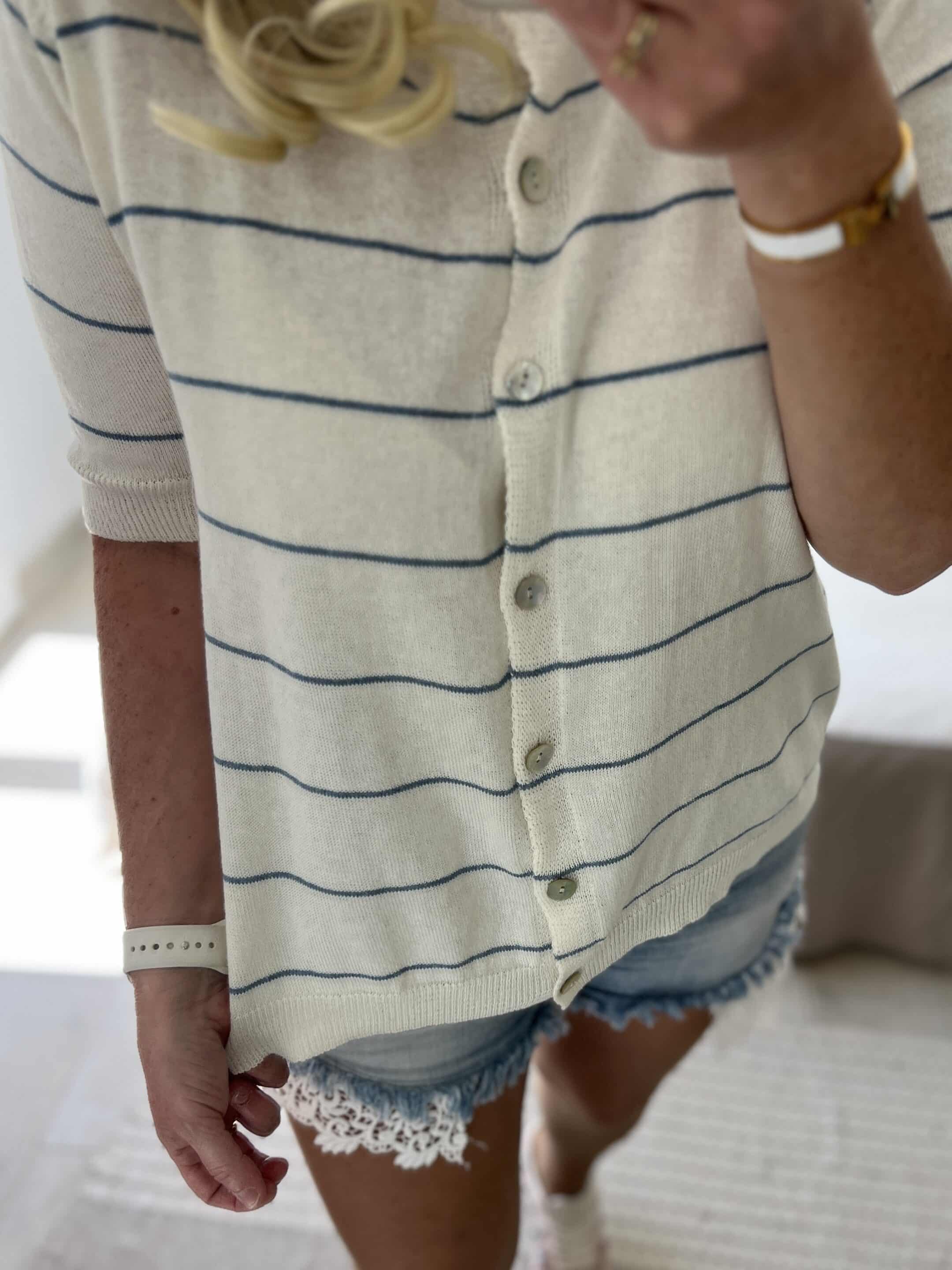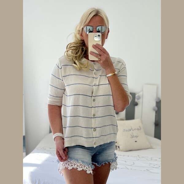 Gilet Manches Courtes En Fine Maille Boutonnage À Rayure, Taille Unique, Il Convient Du 36 Au 42.