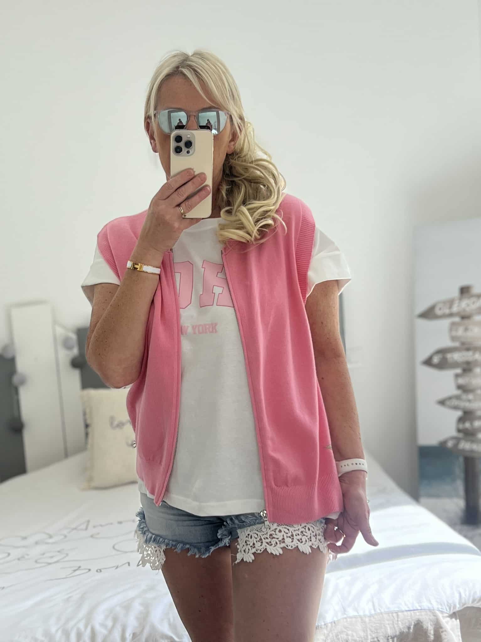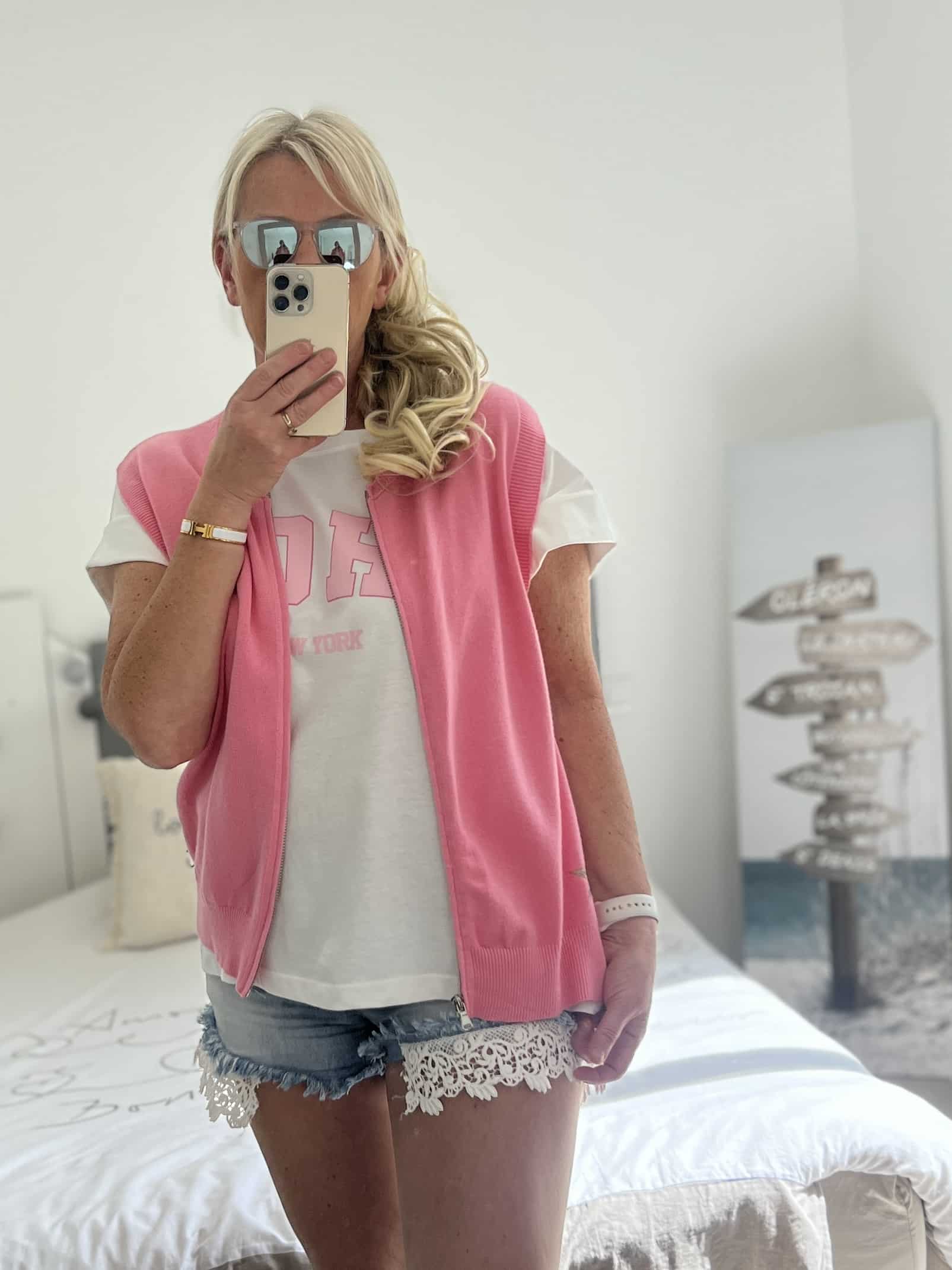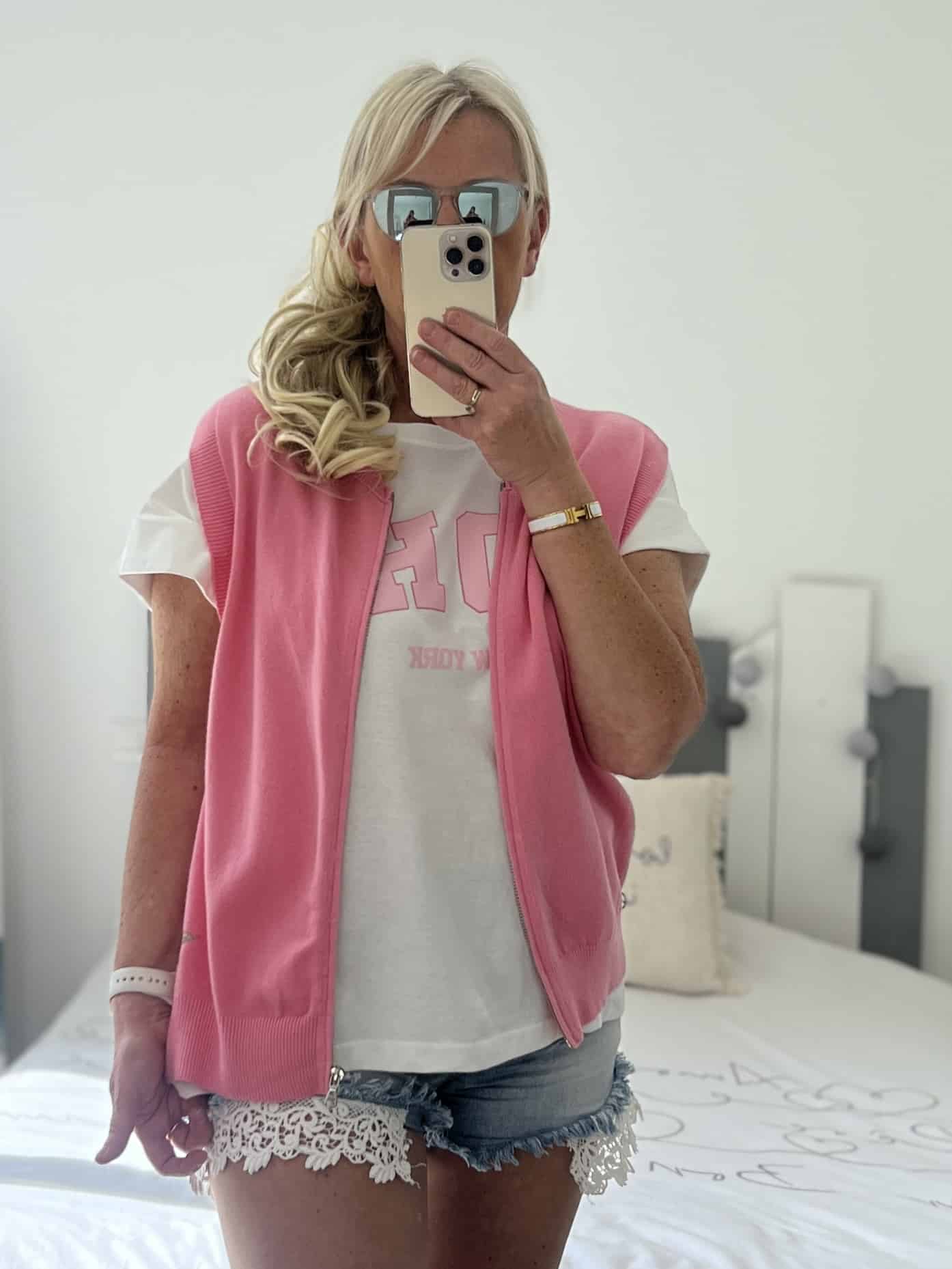 Gilet sans manches étoile rose