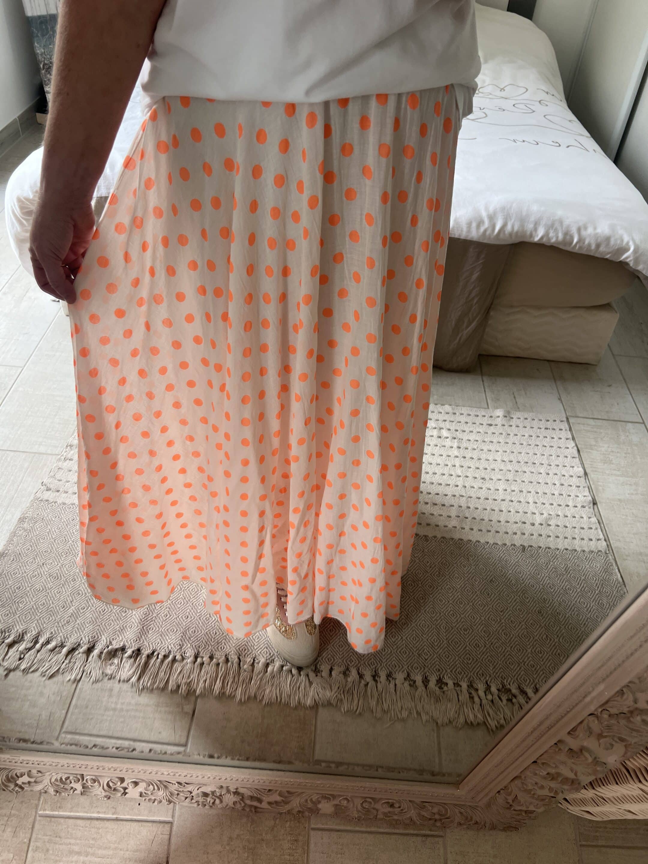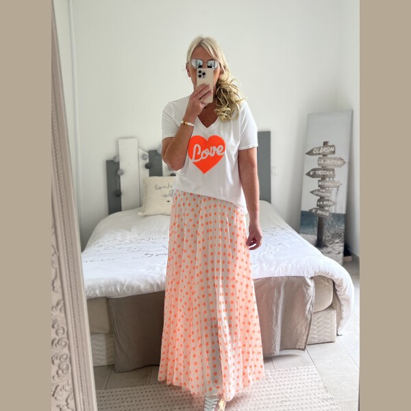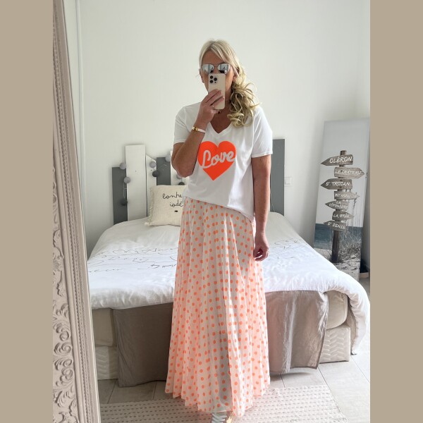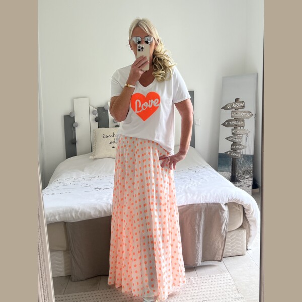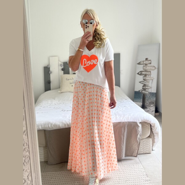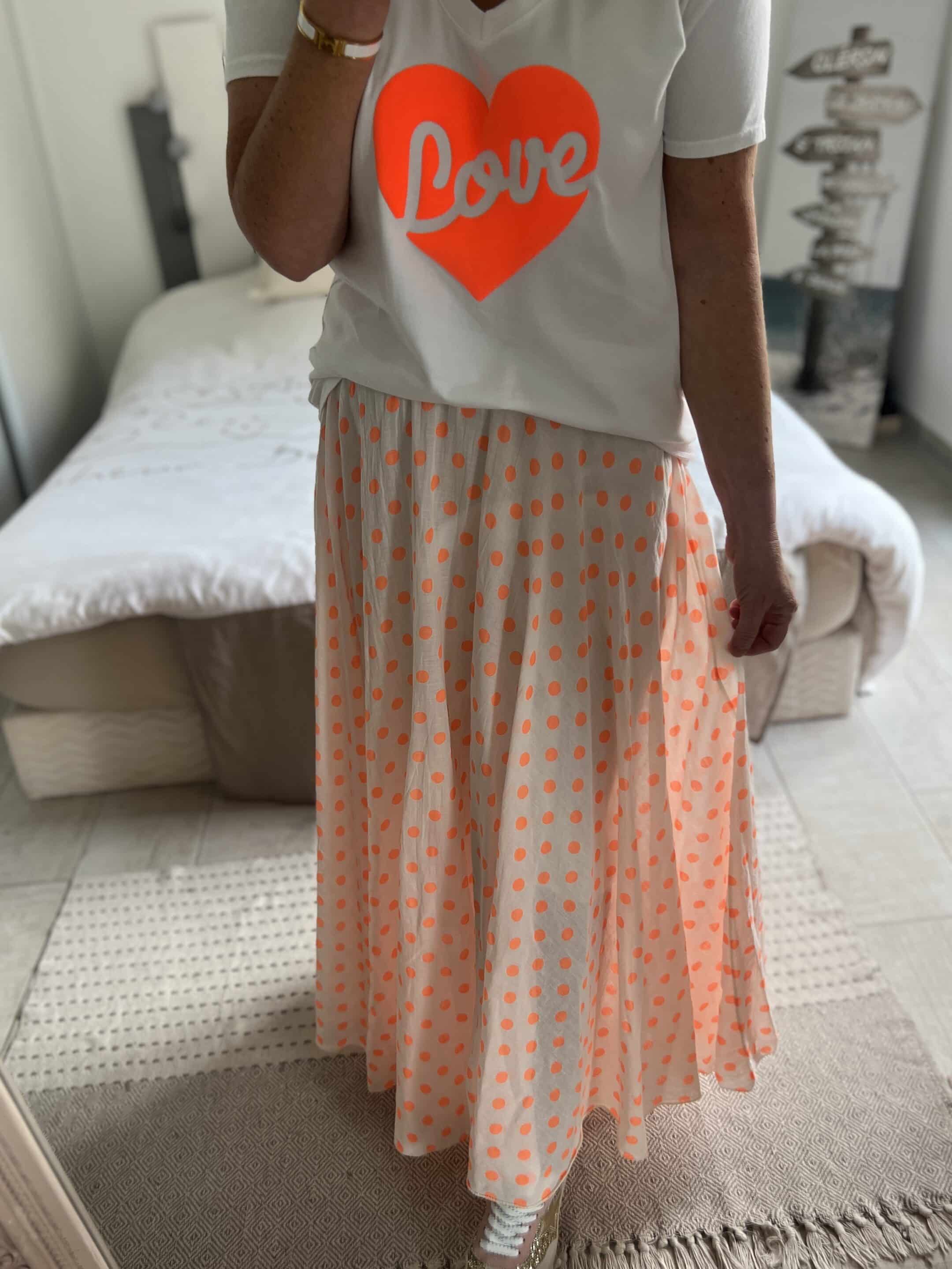 Jupe pois orange fluo