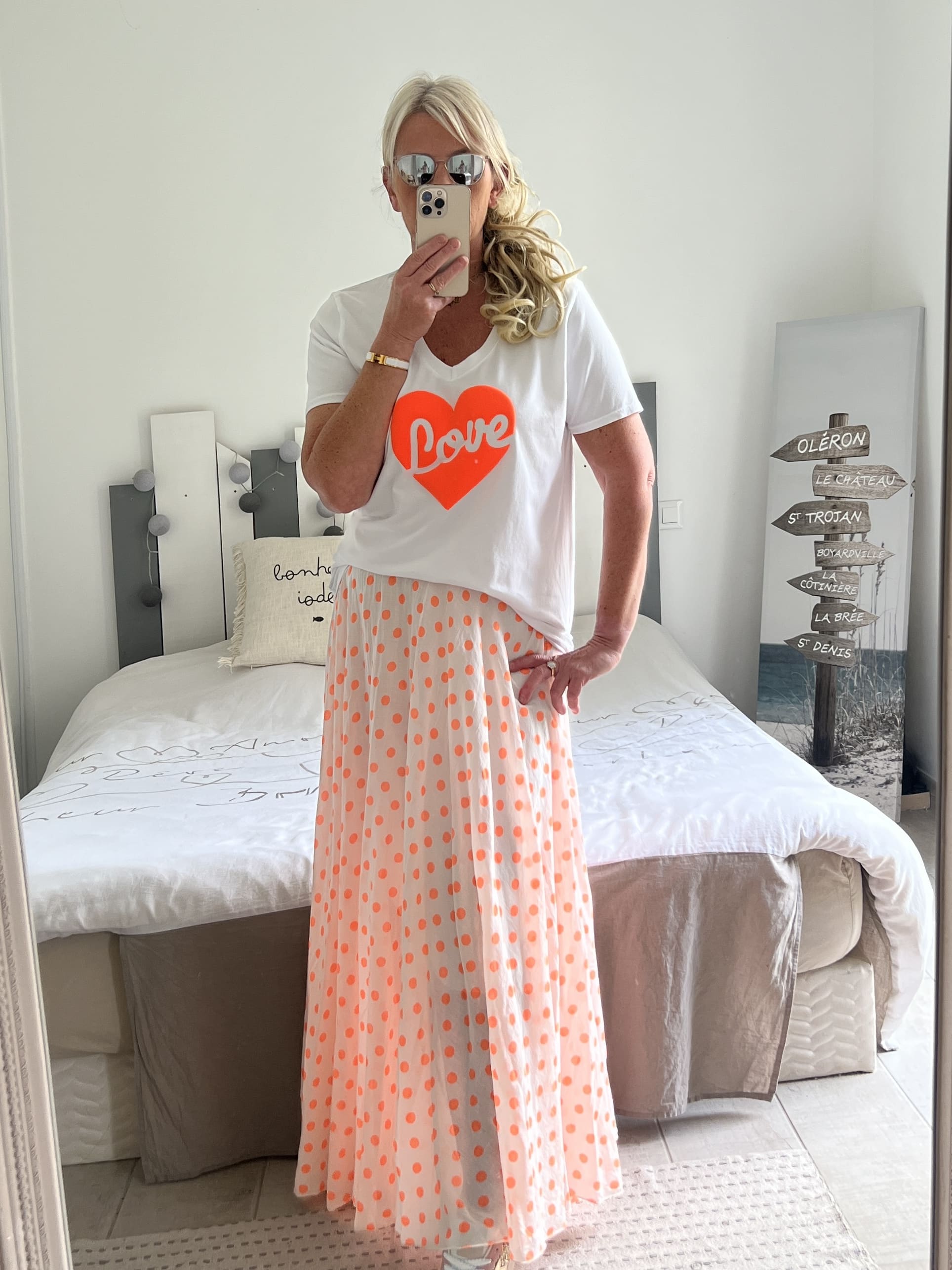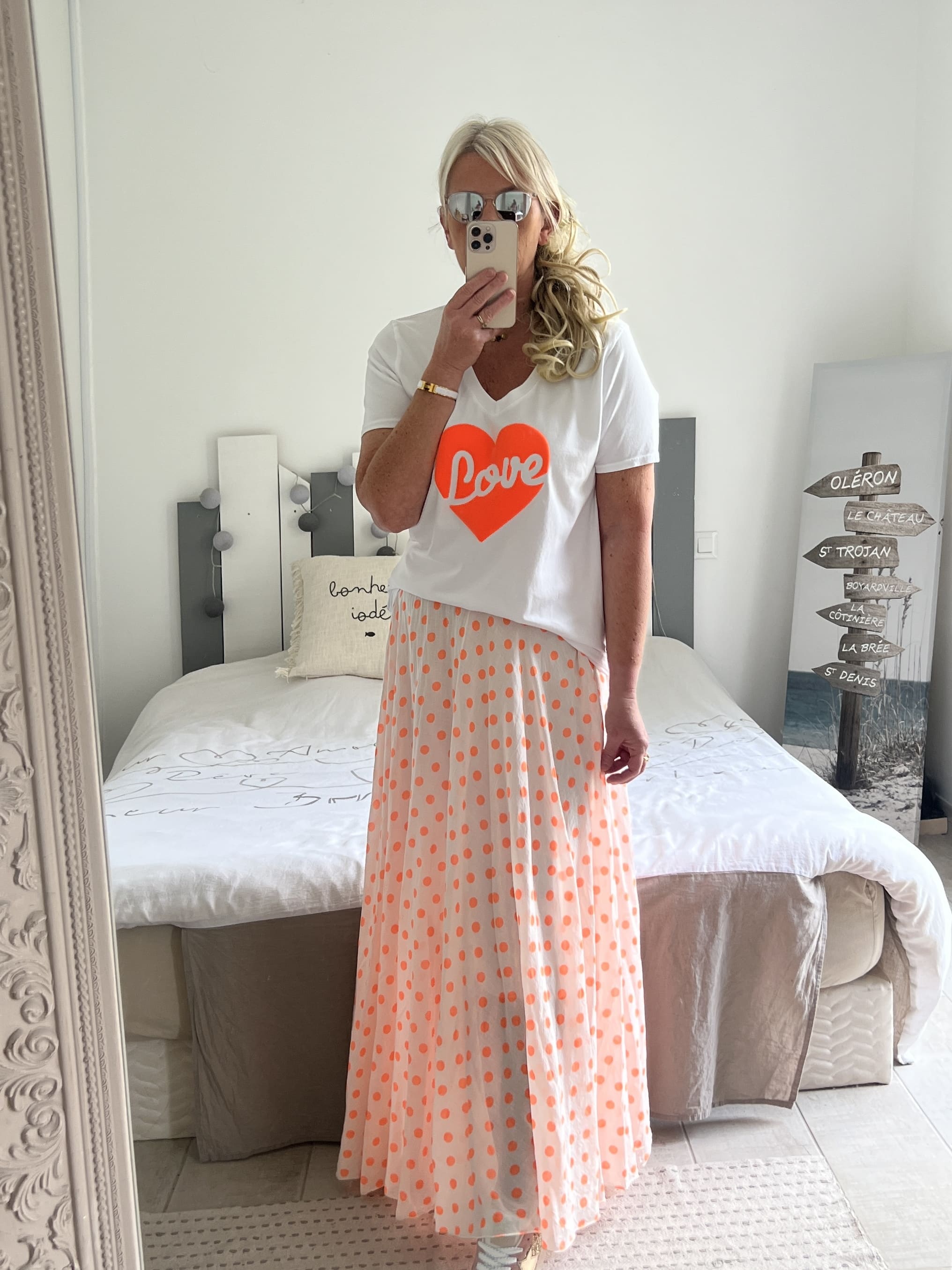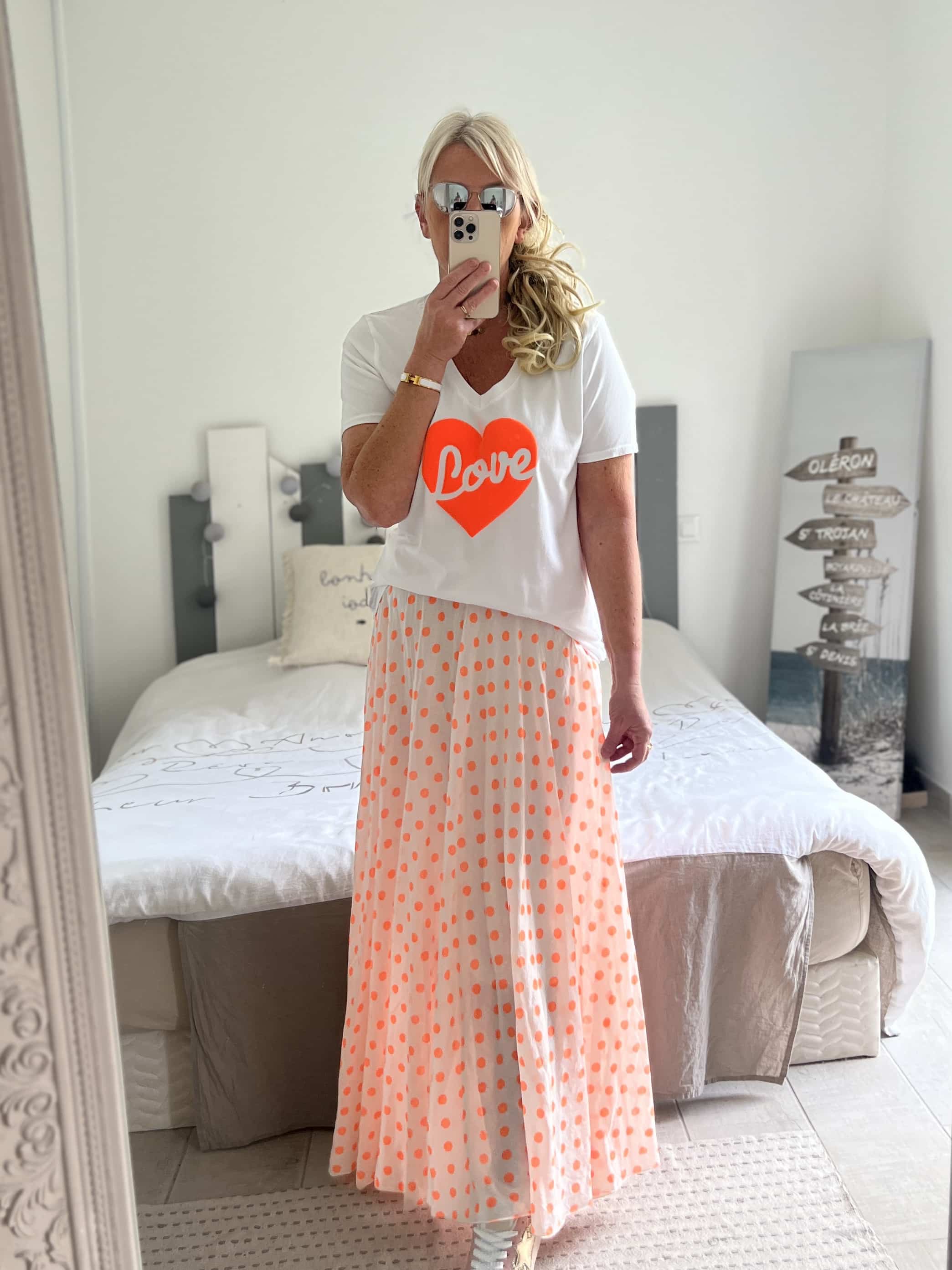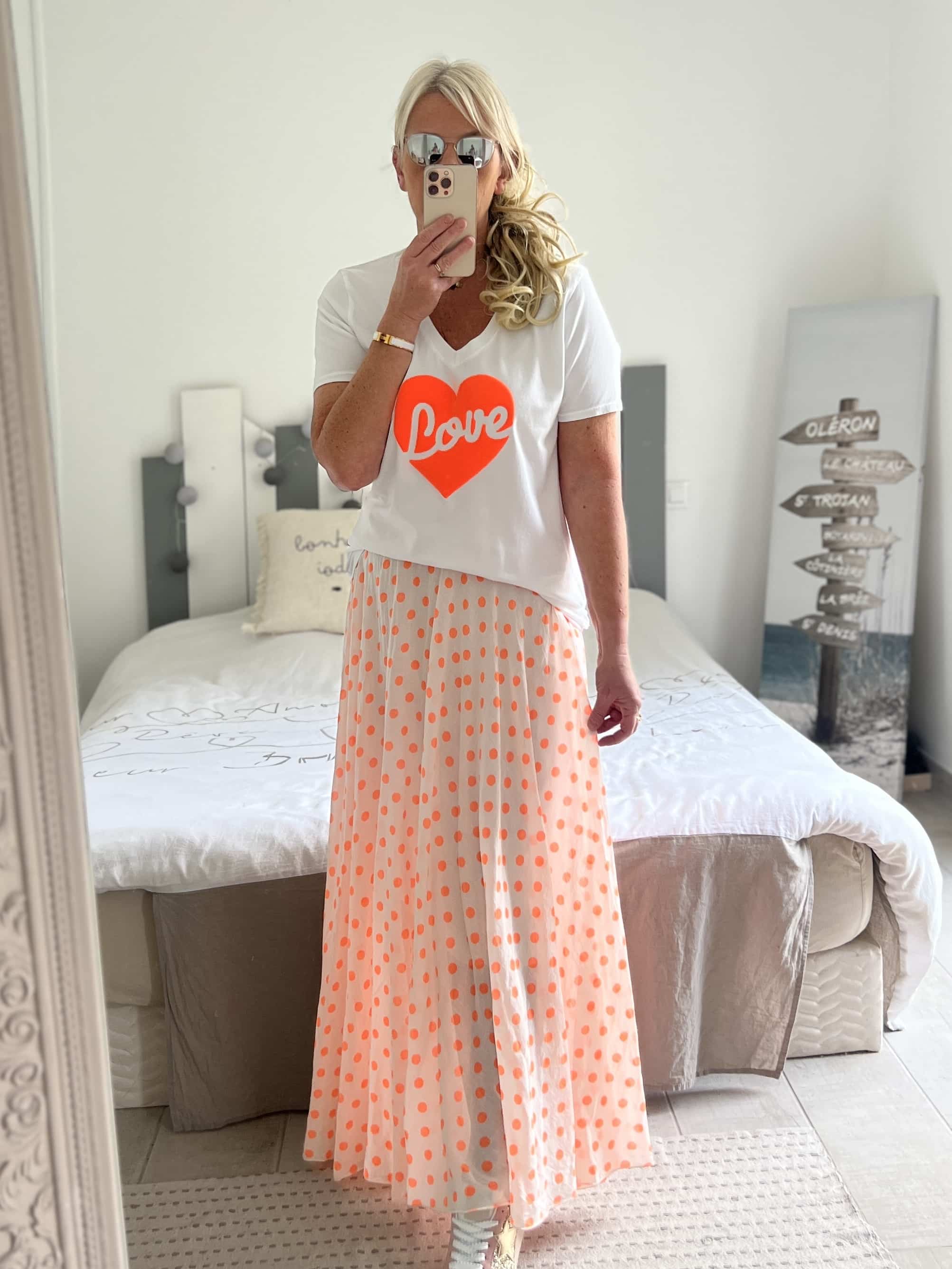 Jupe pois orange fluo