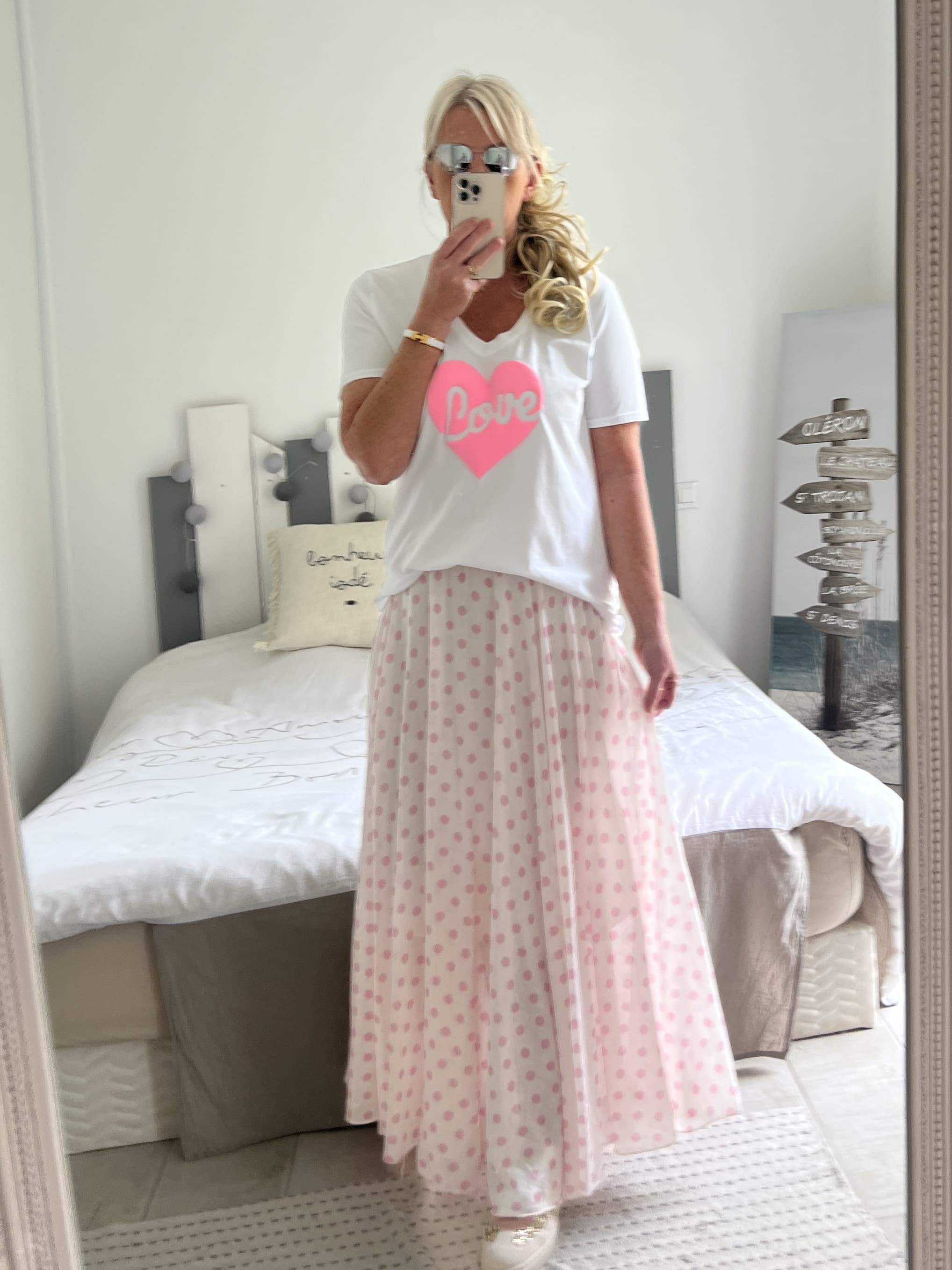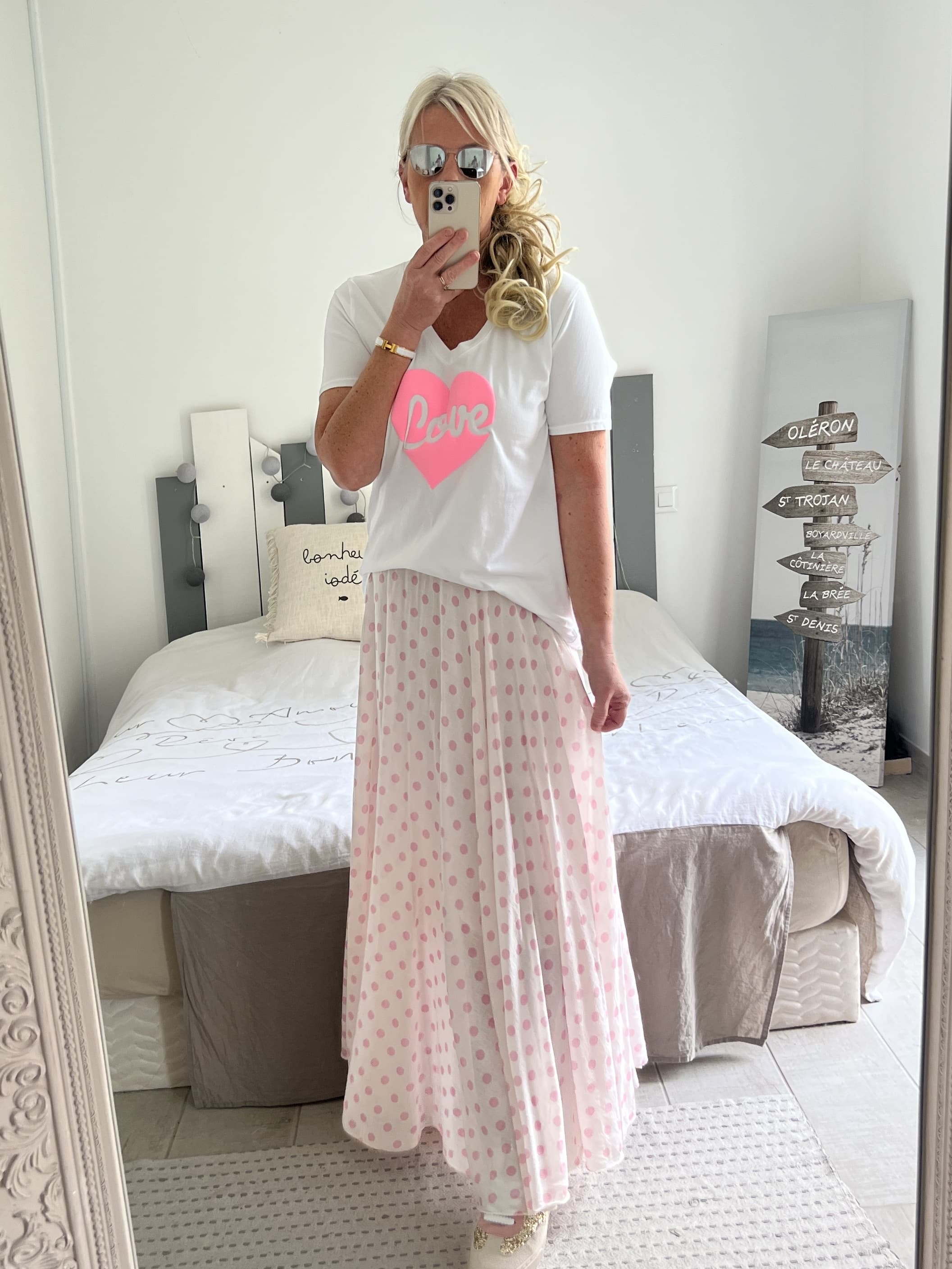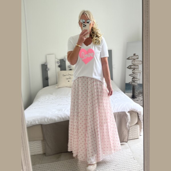 Jupe pois rose clair