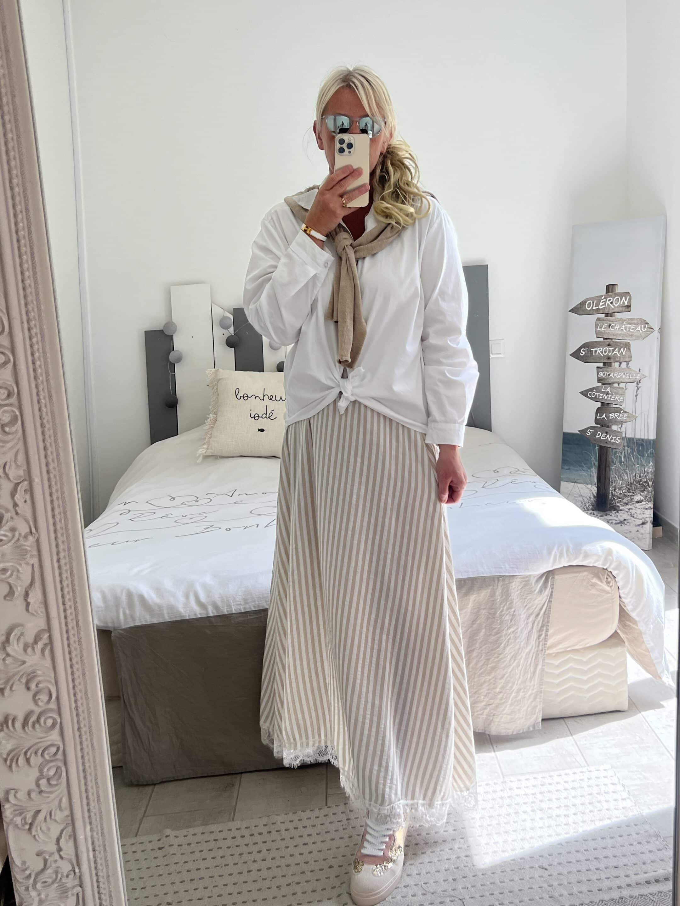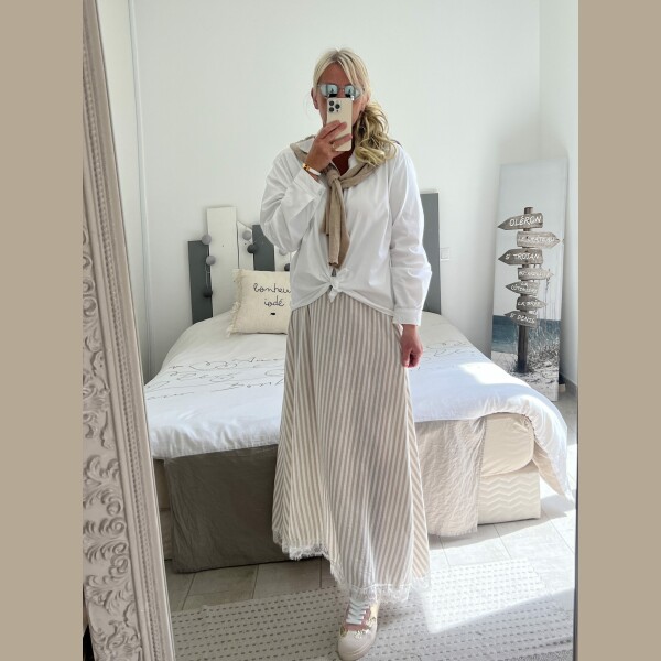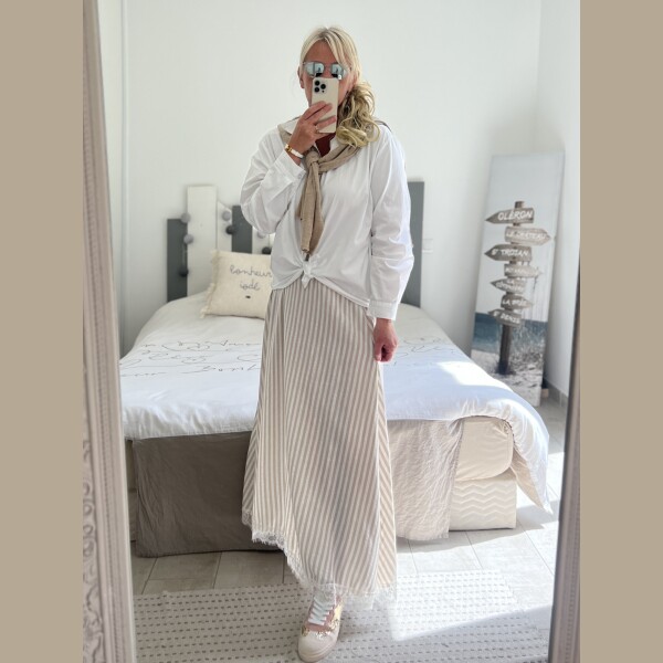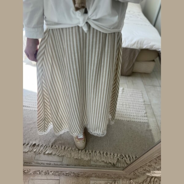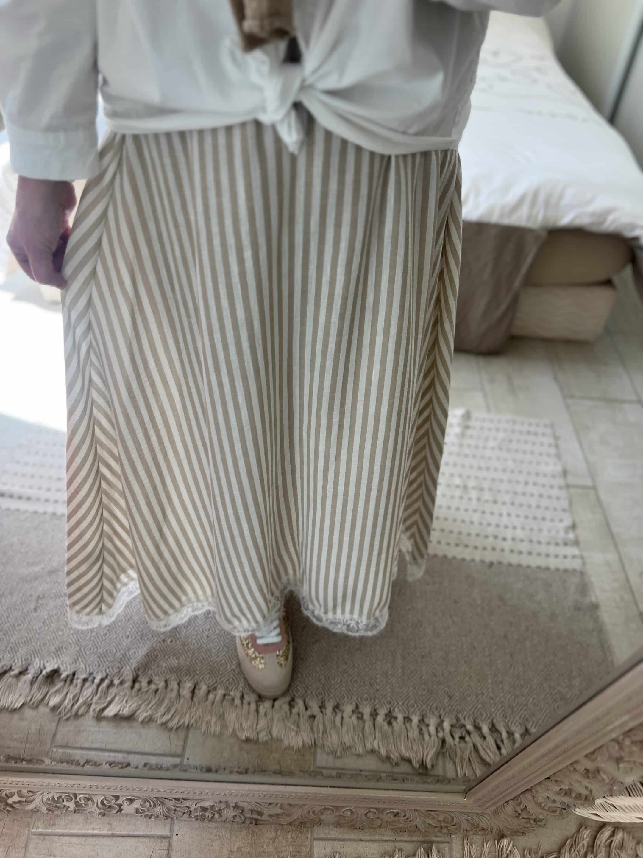 Jupe taille unique 36/42 95% POLYESTER 5% ELASTHANE fluide légère dentelle sur l’ourlet