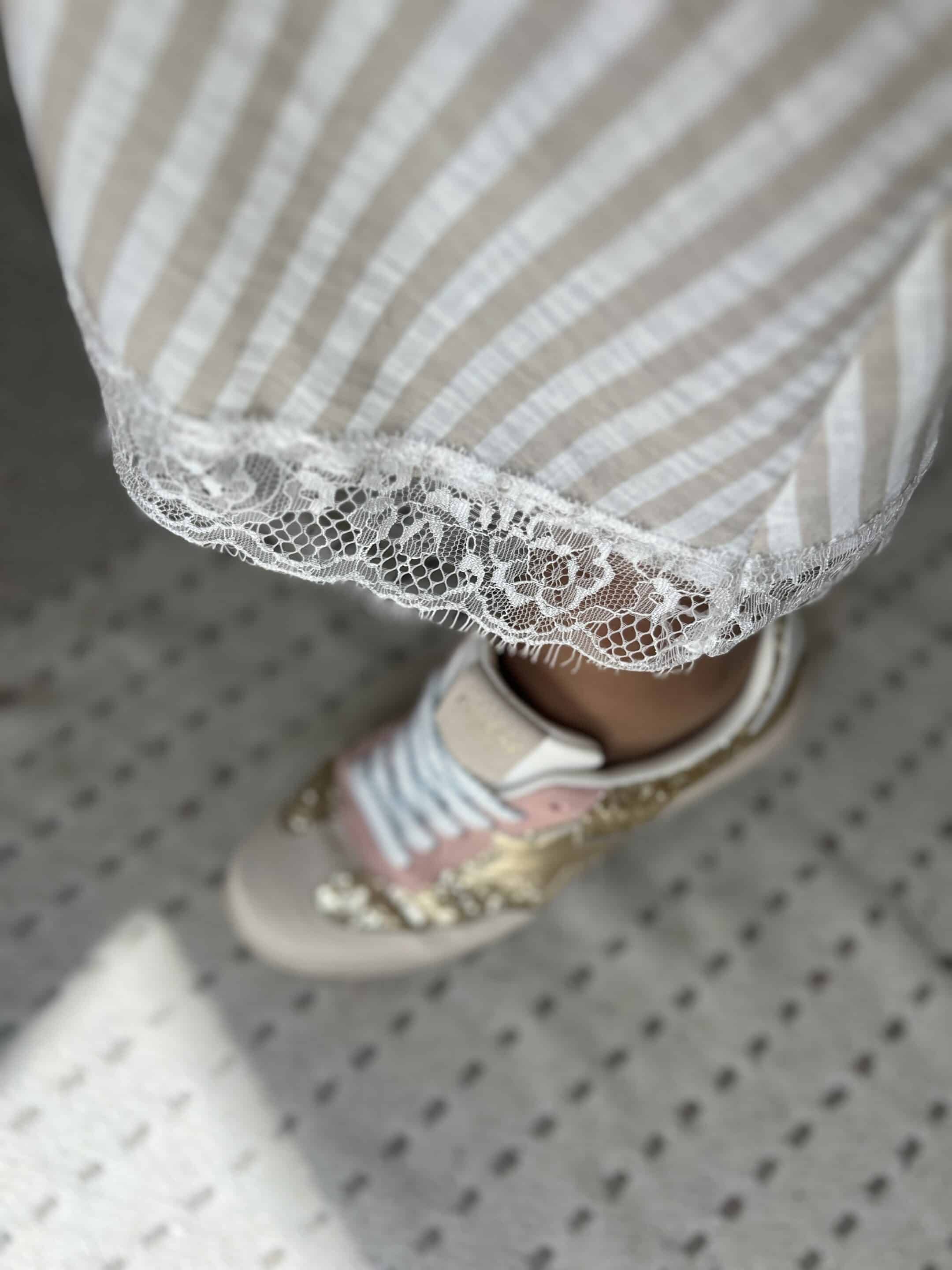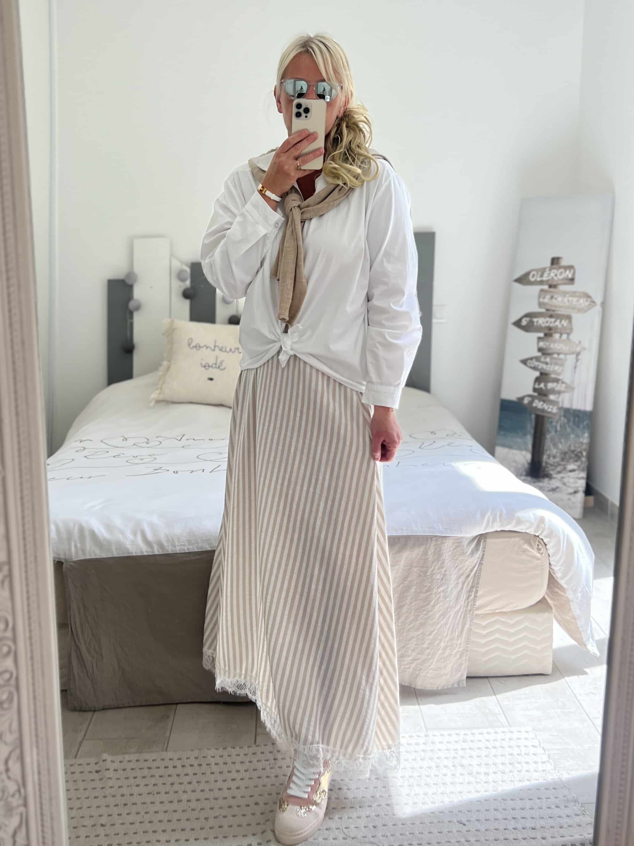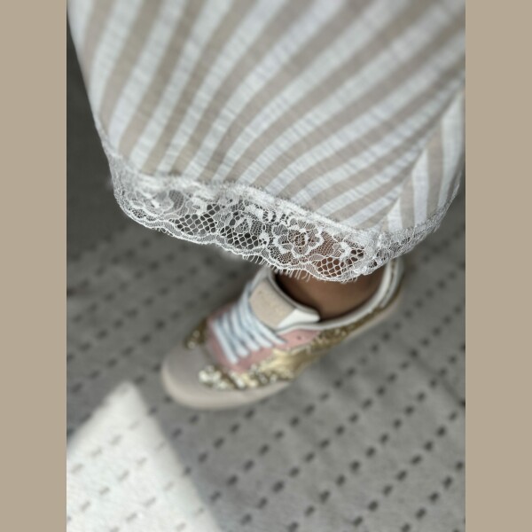 Jupe taille unique 36/42 95% POLYESTER 5% ELASTHANE fluide légère dentelle sur l’ourlet