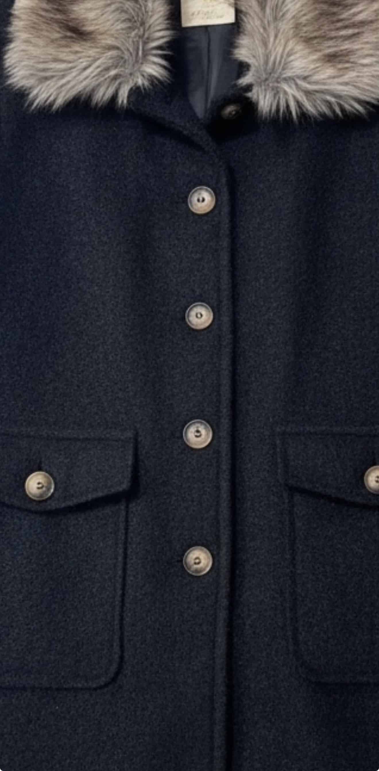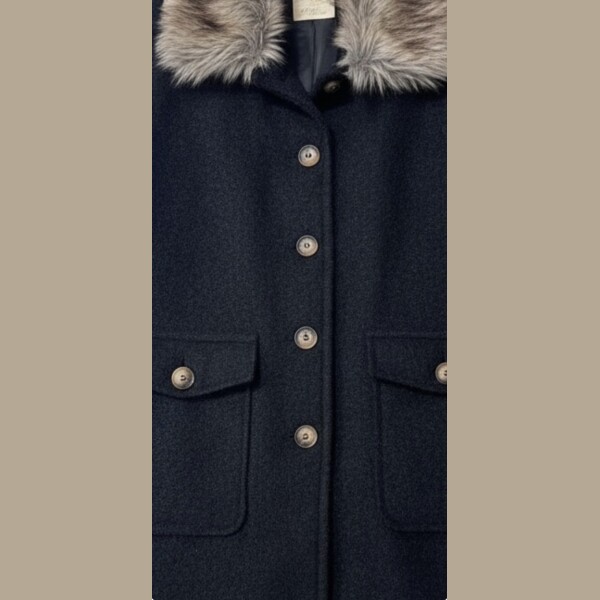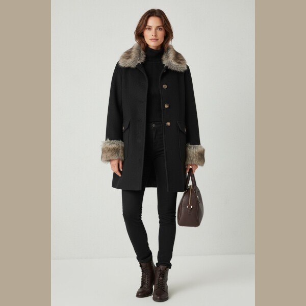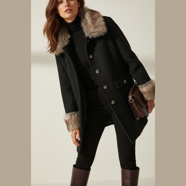 Le manteau Alaska allie chaleur et élégance avec son col et ses poignets bordés de fausse fourrure. Confectionné dans un mélange de laine et de polyester, il offre une texture douce et structurée. Sa coupe droite et ses poches à rabat en font une pièce intemporelle et raffinée pour l’hiver.
