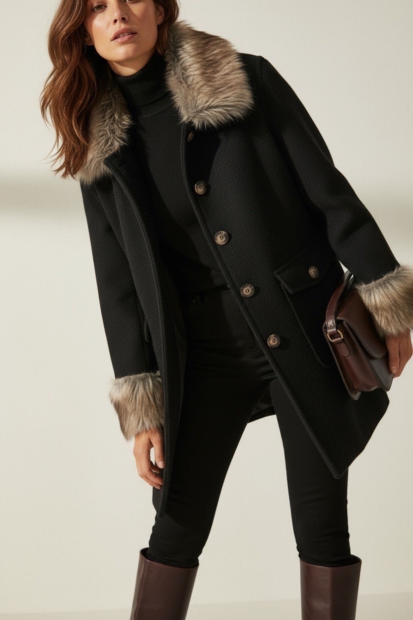 Portez-le avec un col roulé, un jean droit et des bottes hautes pour un look chic et cosy parfait pour la saison froide.