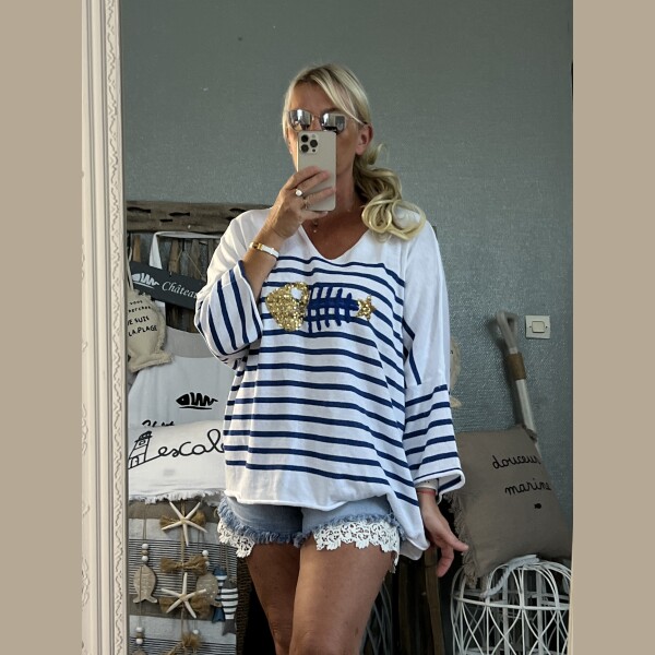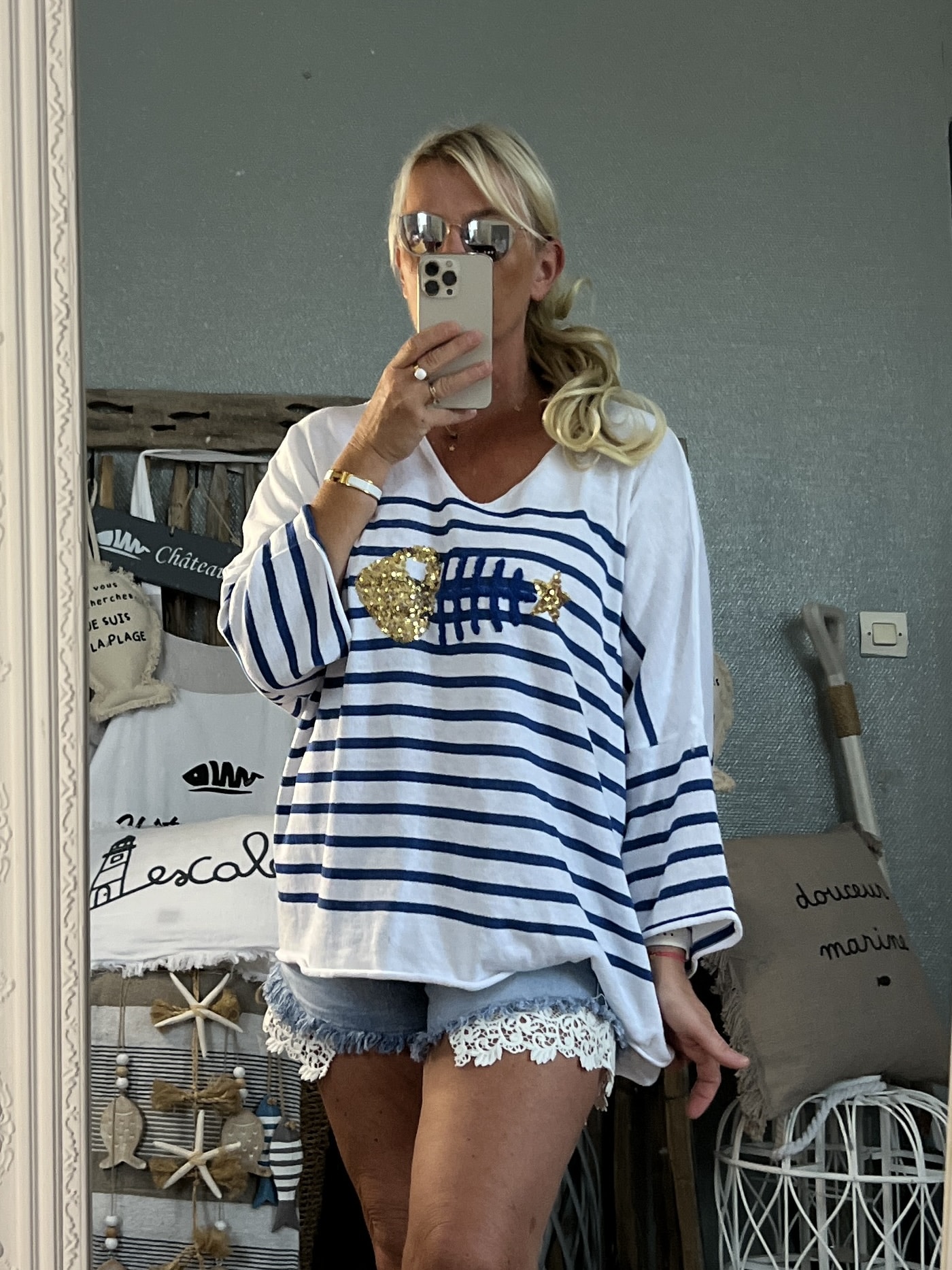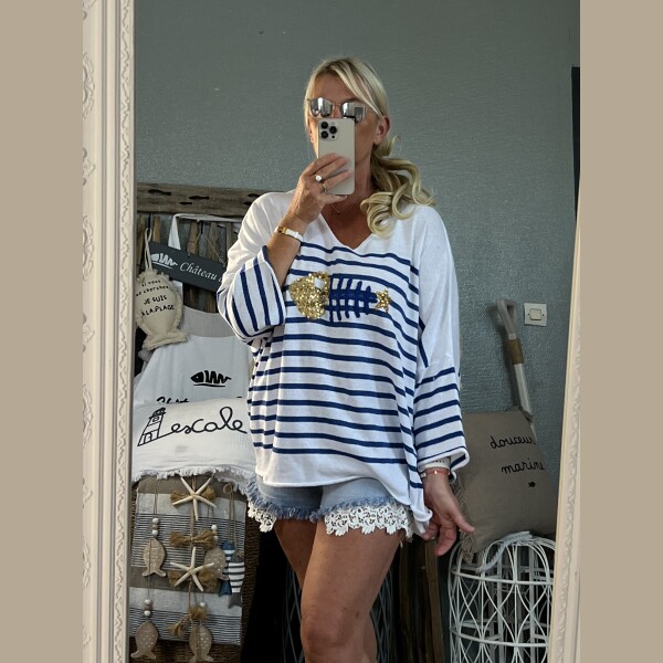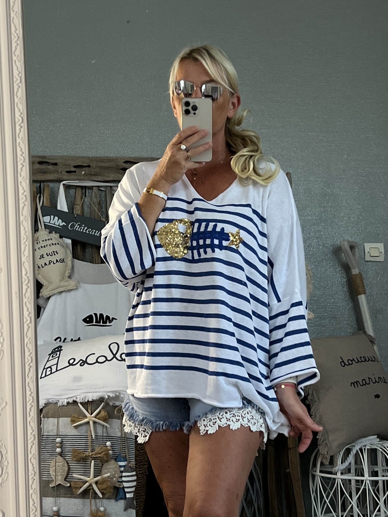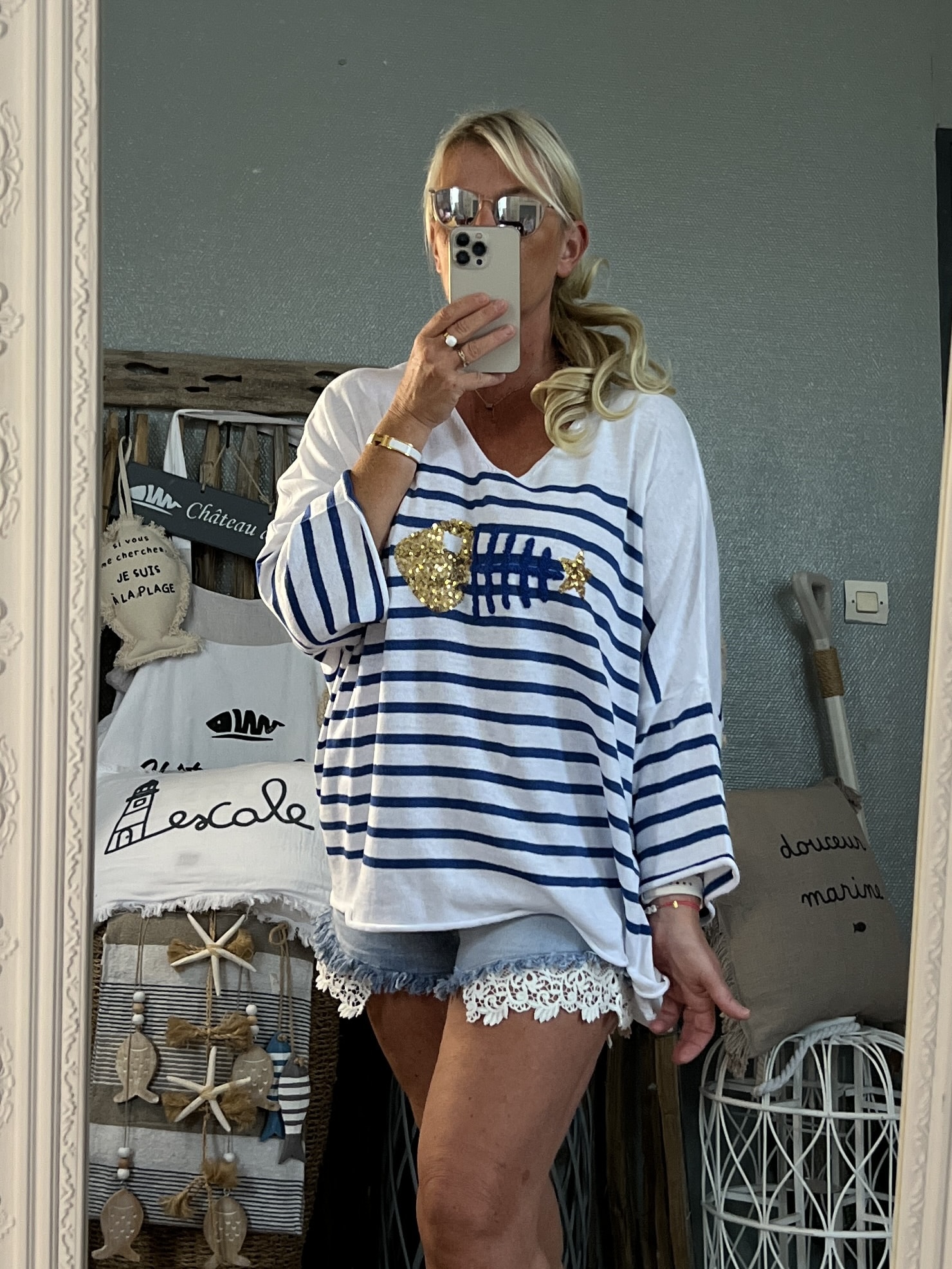 Marinière coton acrylique taille unique 36/48 oversize pour 36