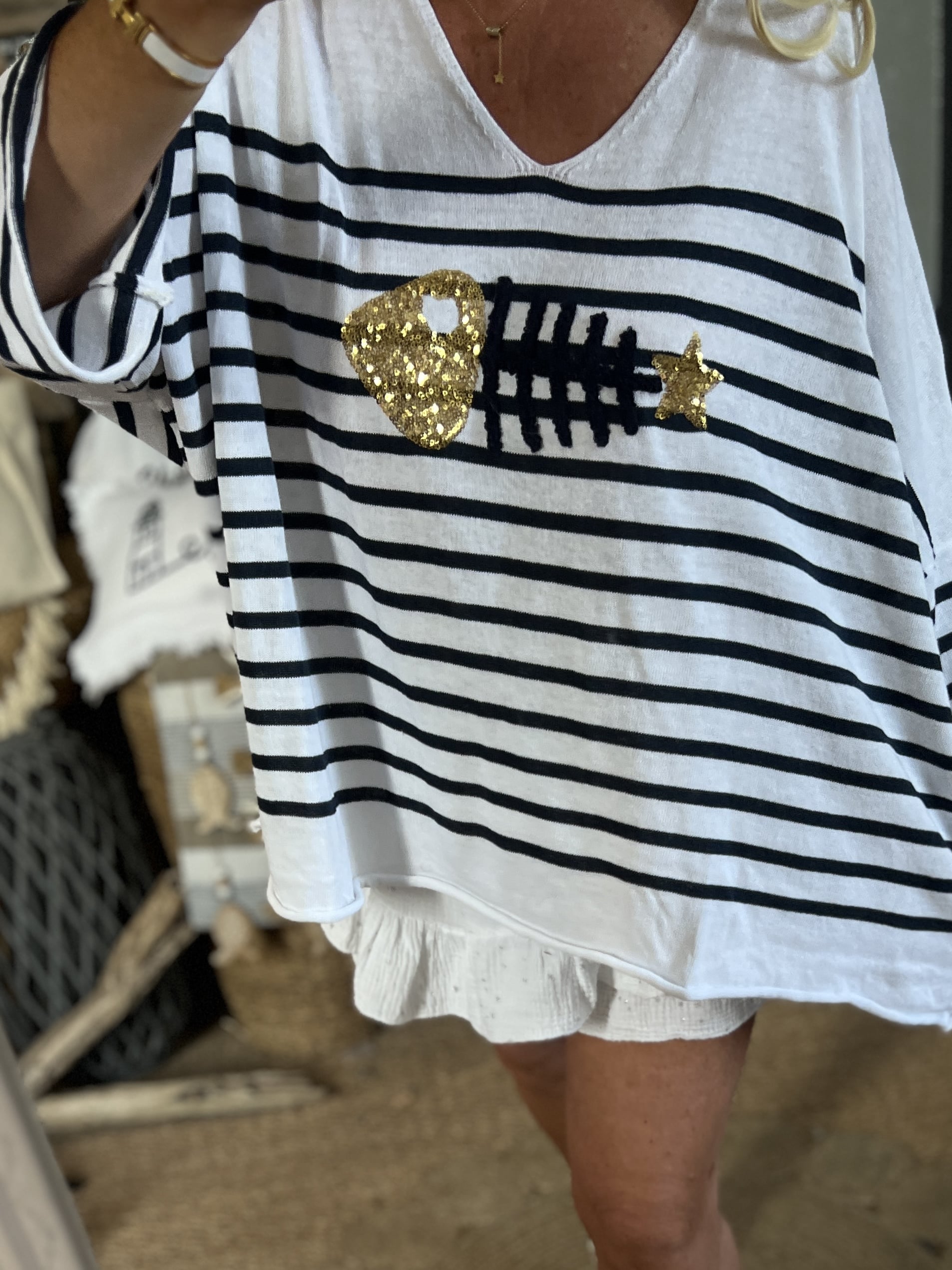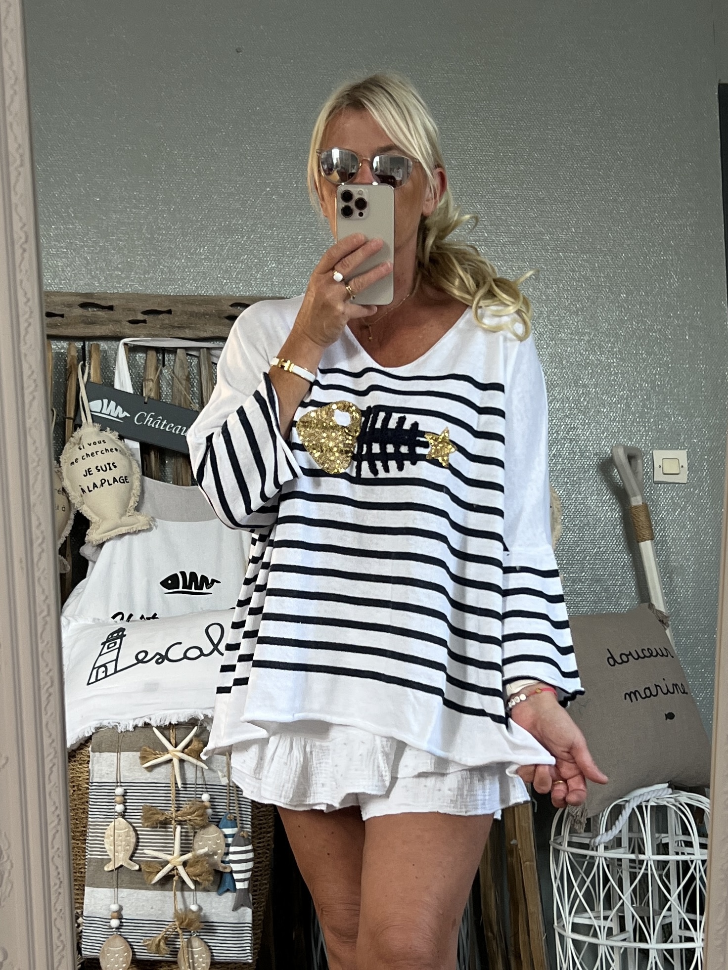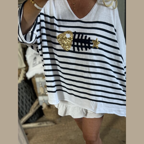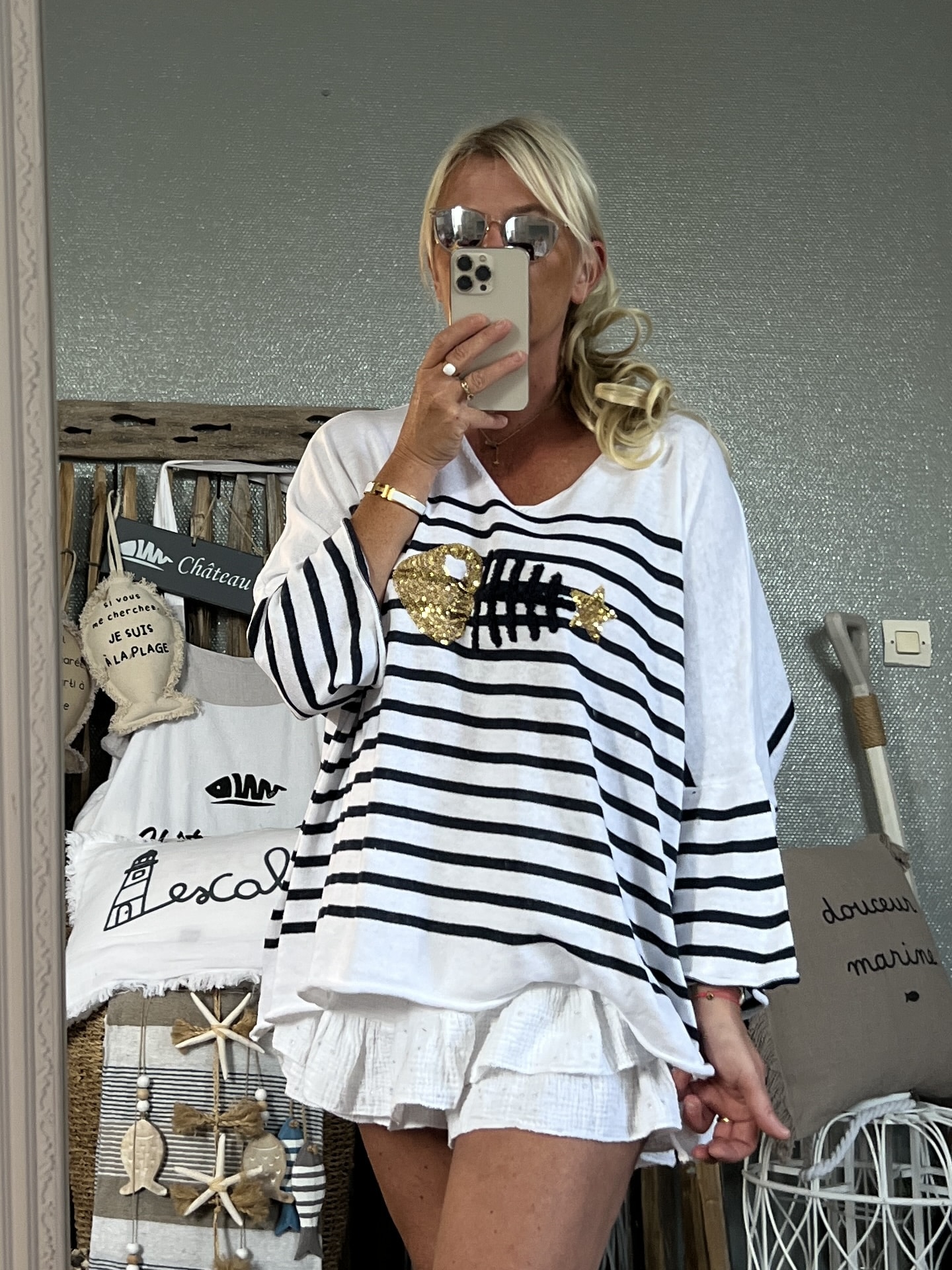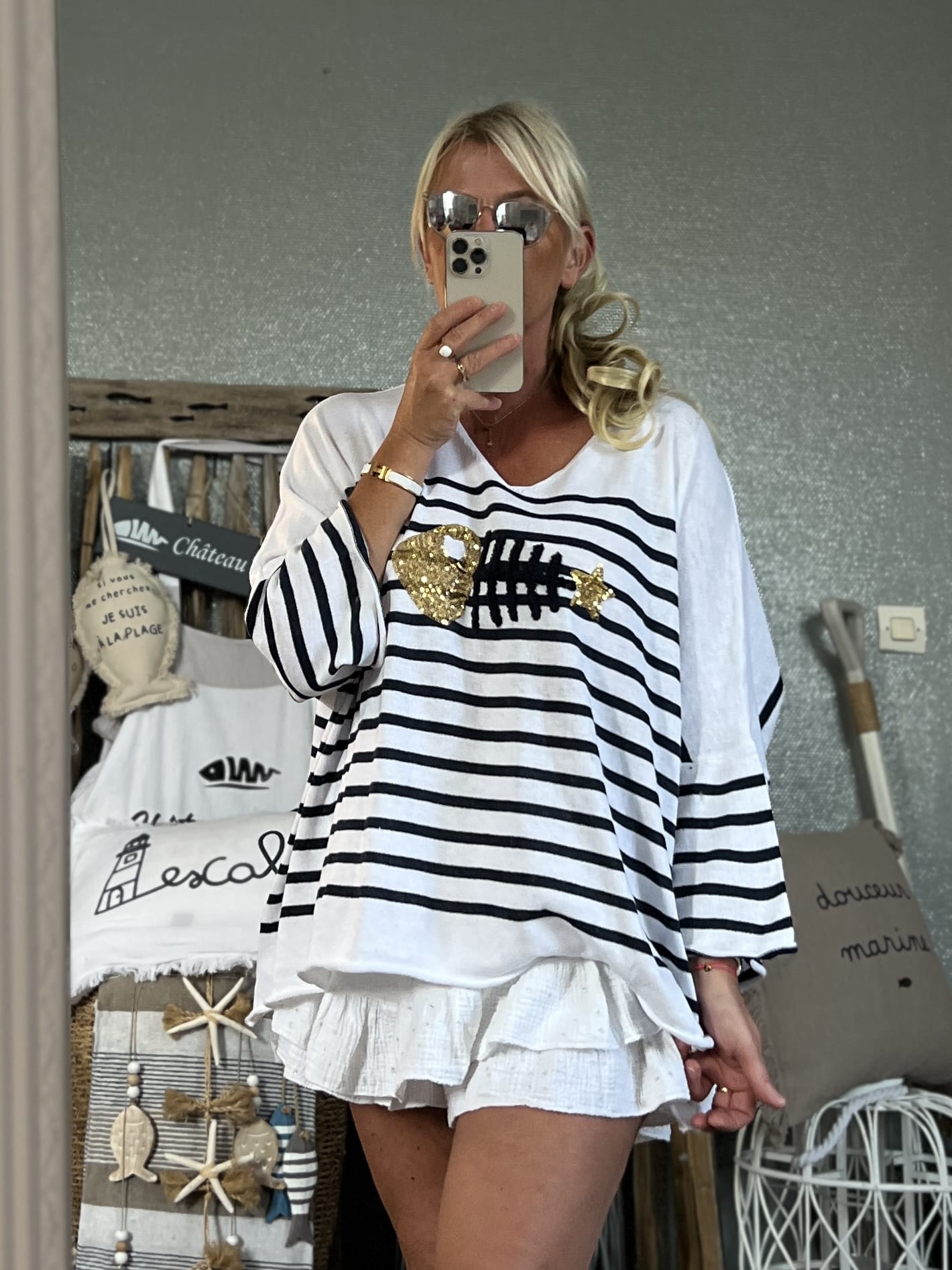 Marinière coton acrylique taille unique 36/48 oversize pour 36