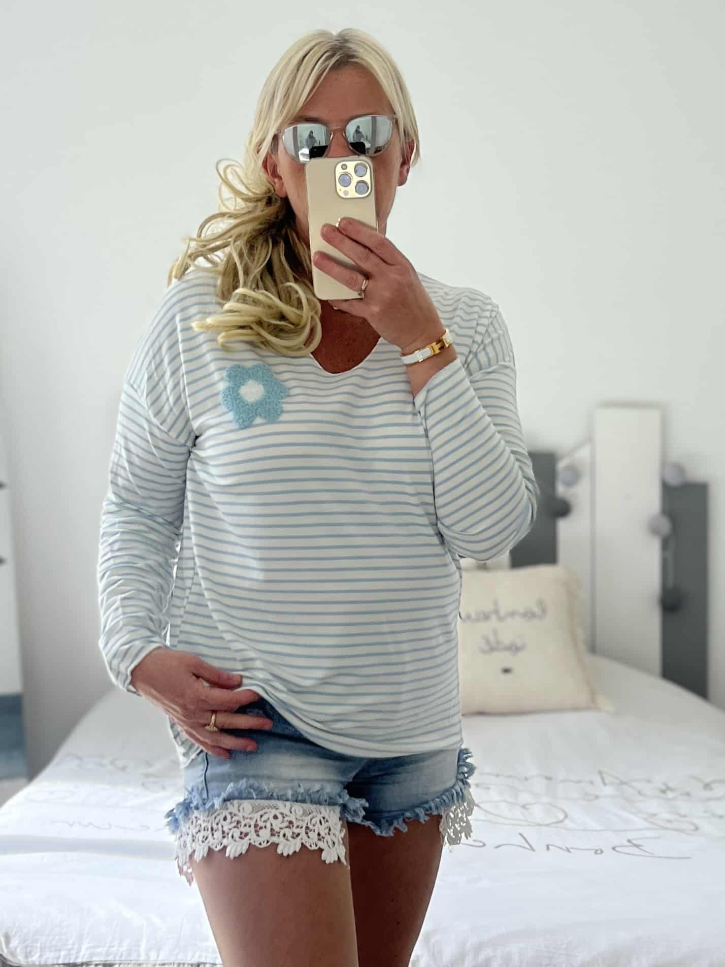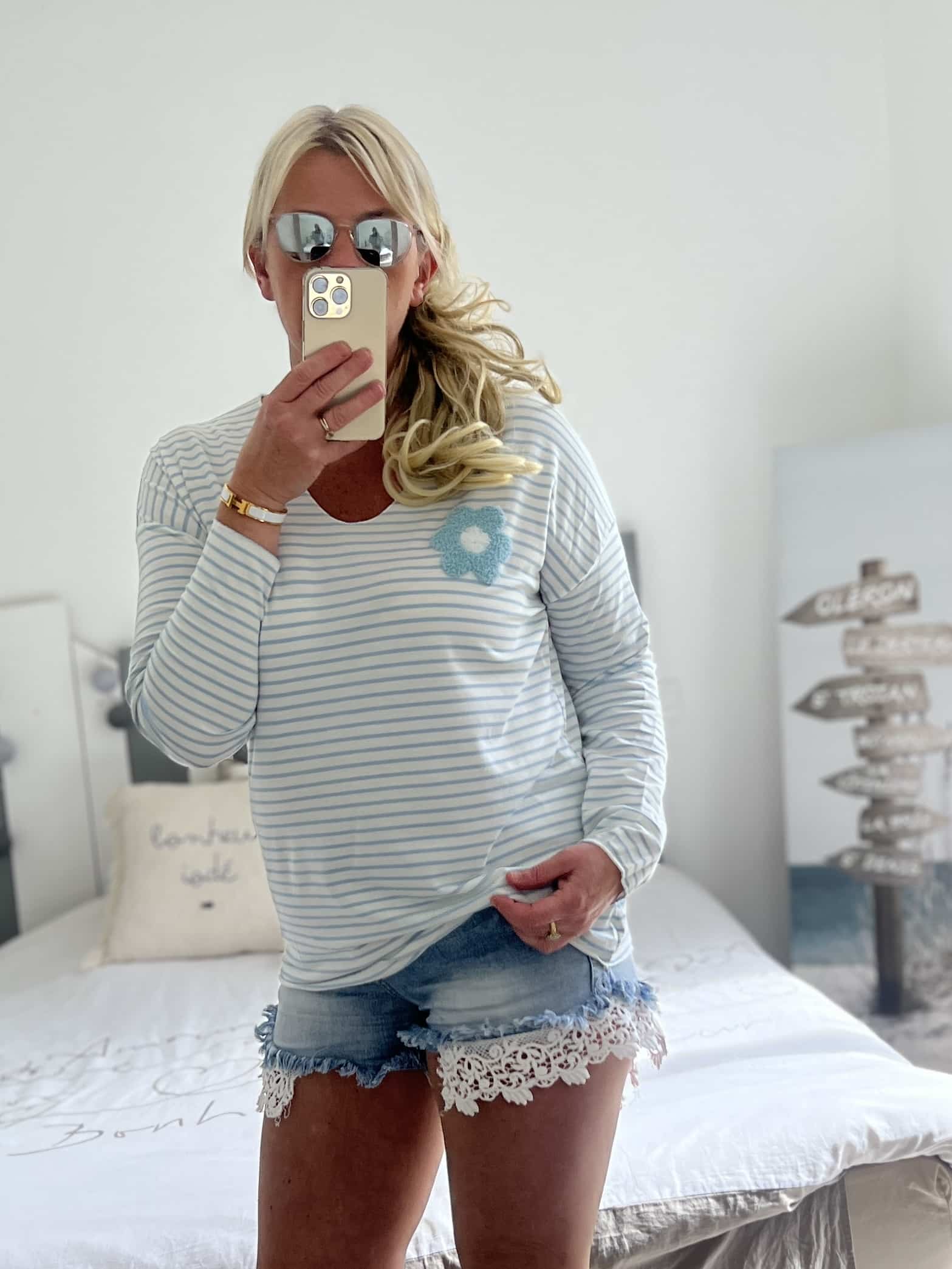 Marinière Flowers bleu