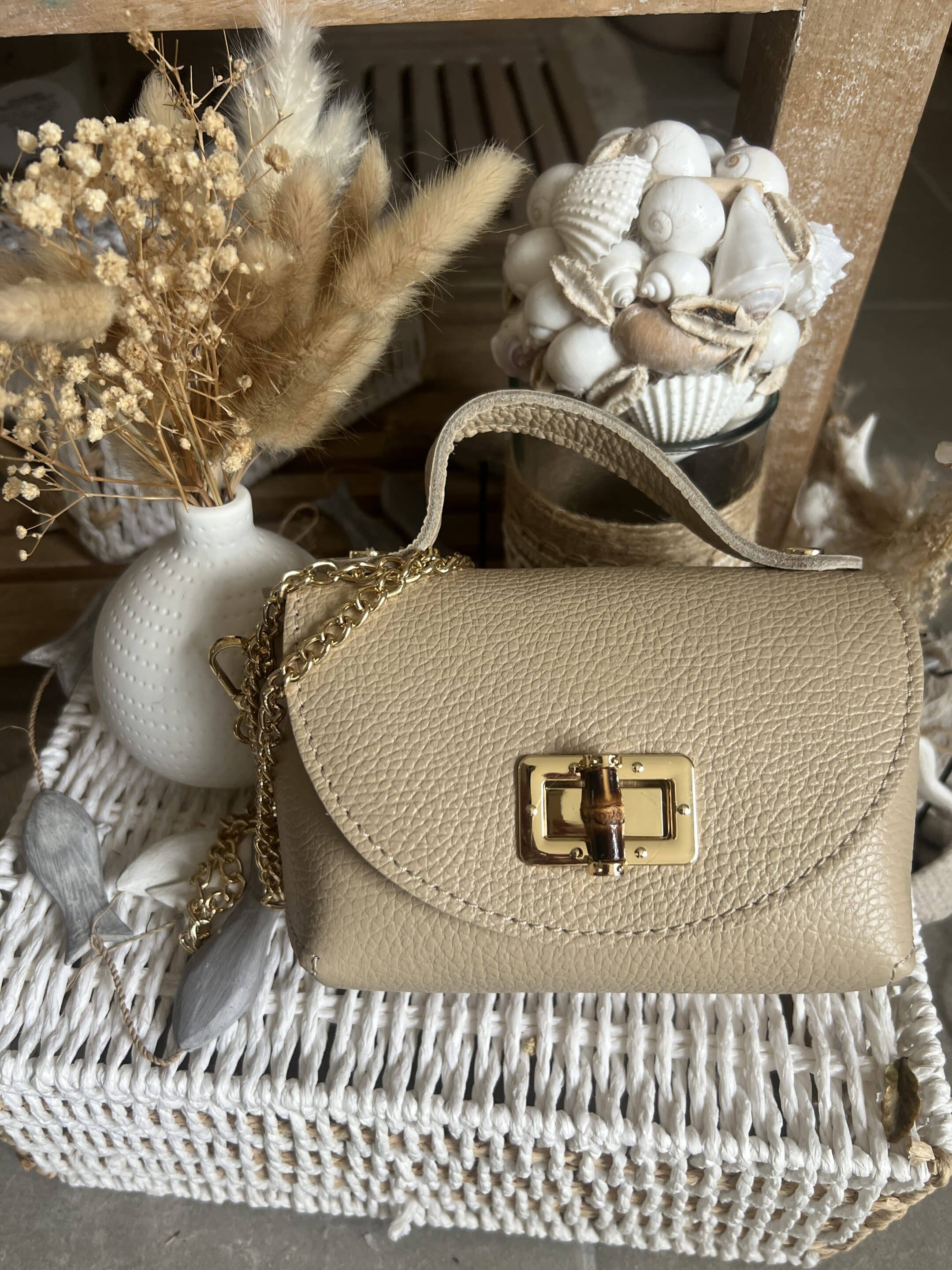 Mini sac cuir beige