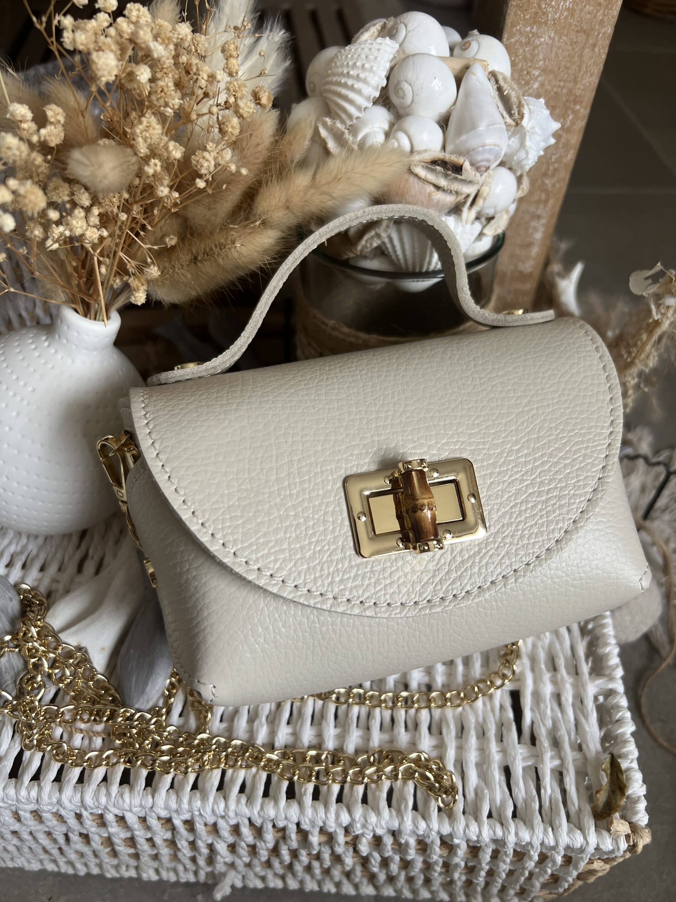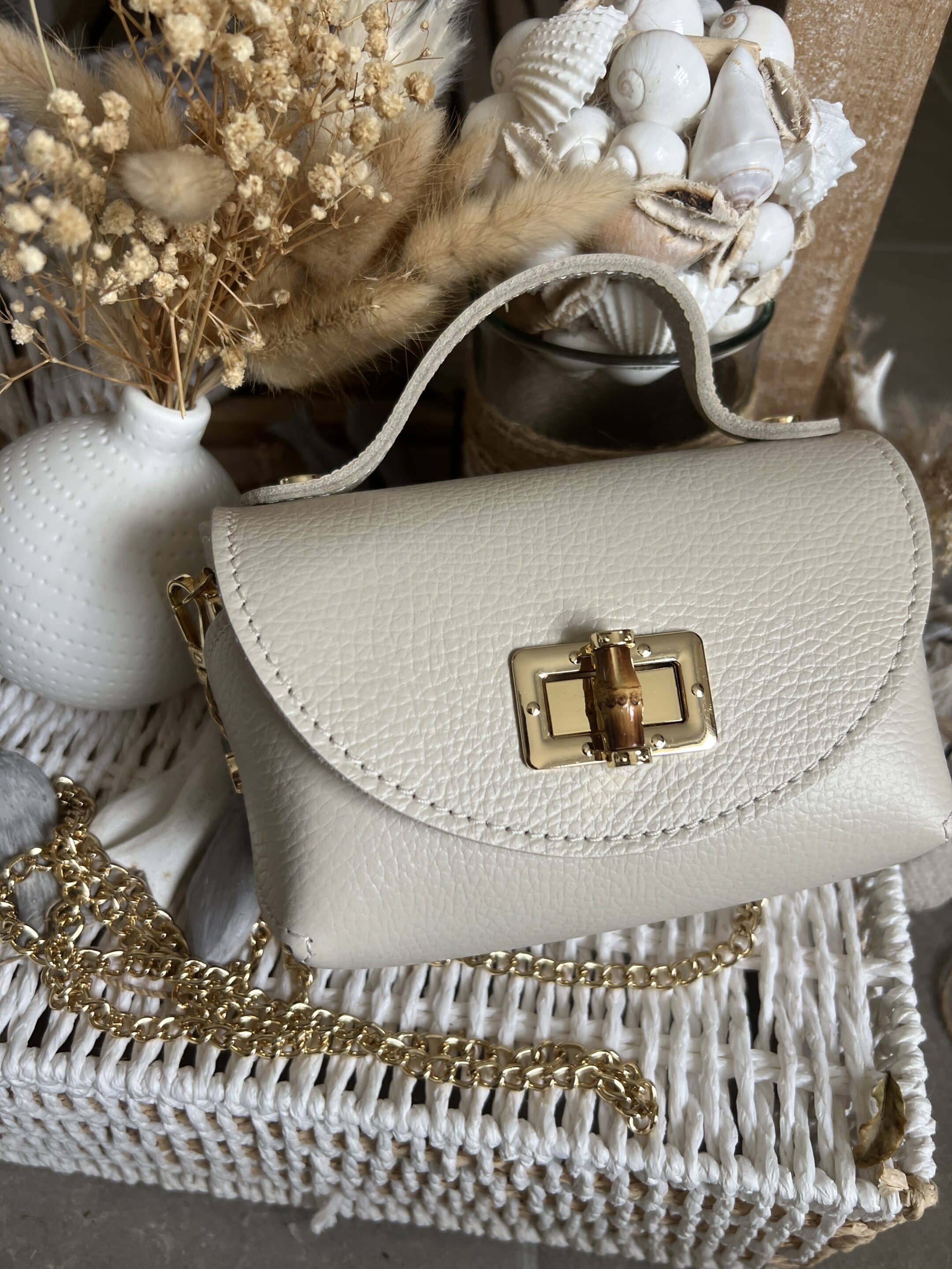 Mini sac cuir écru