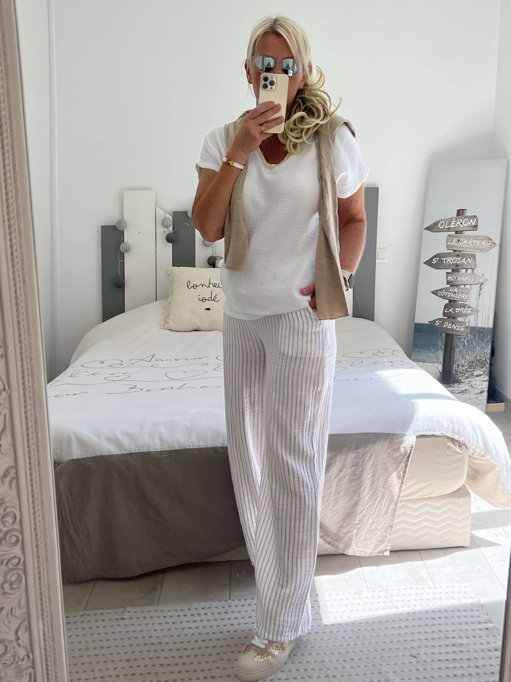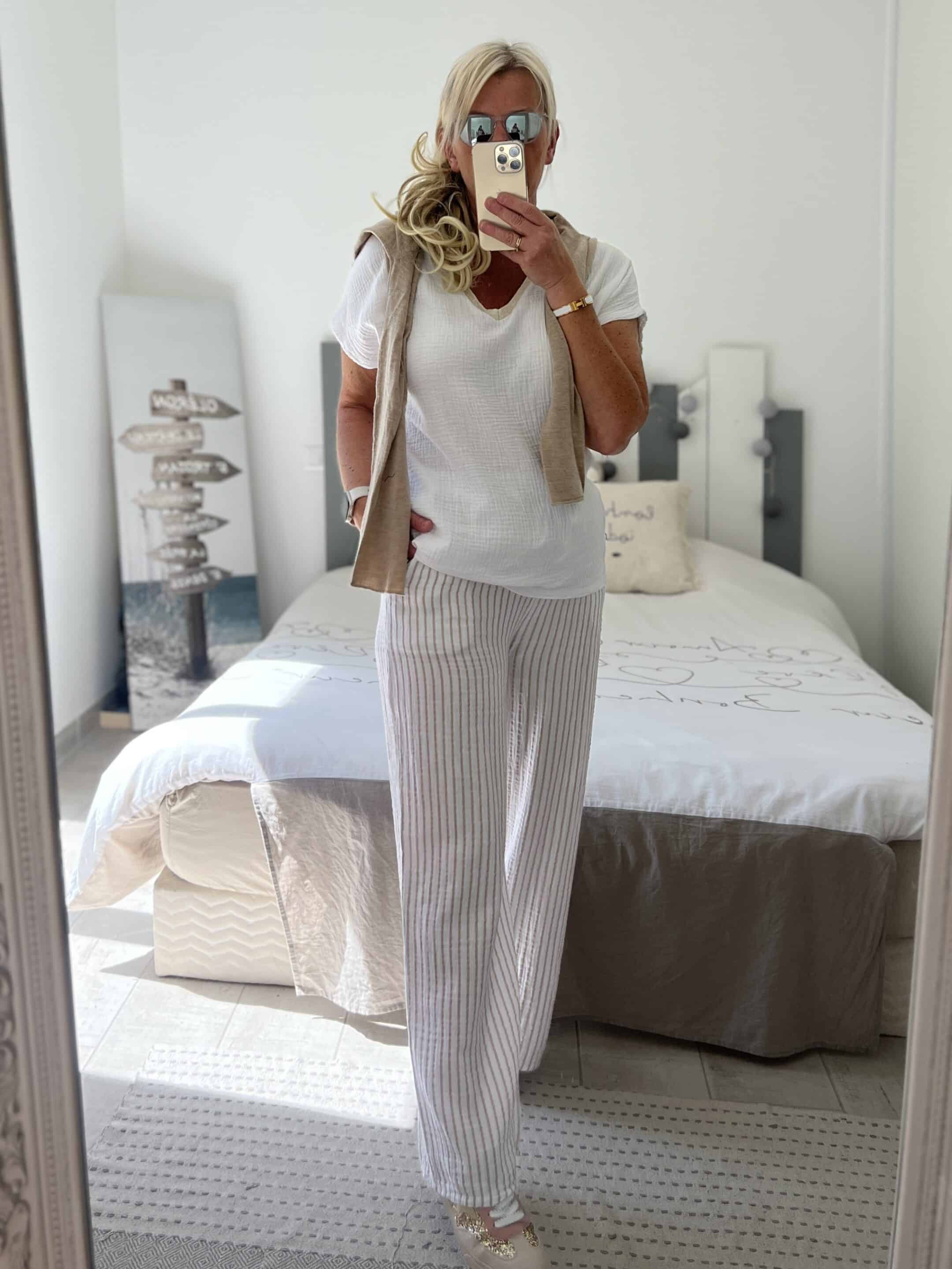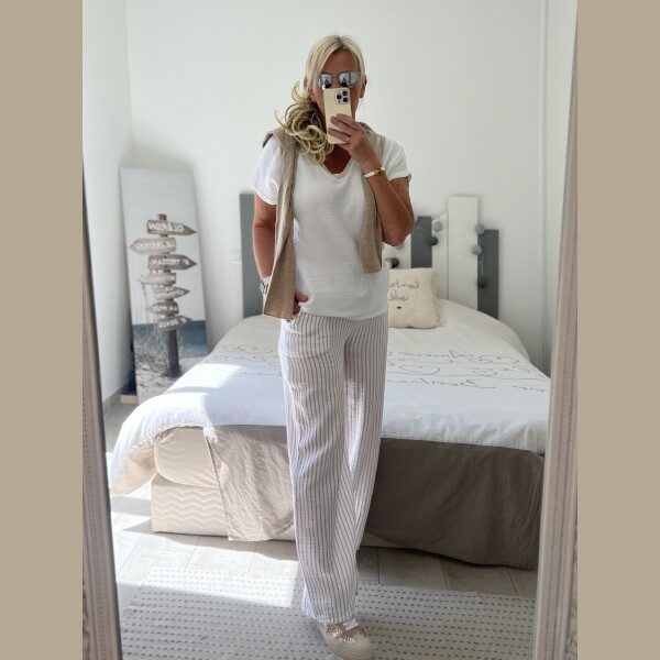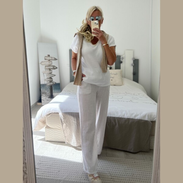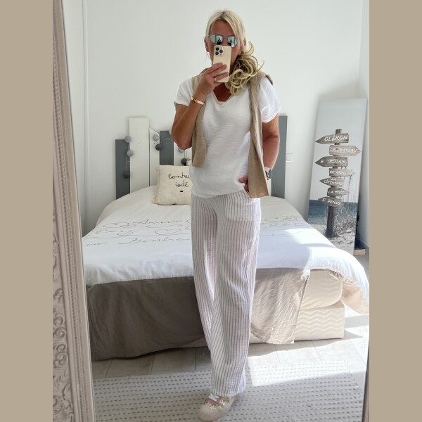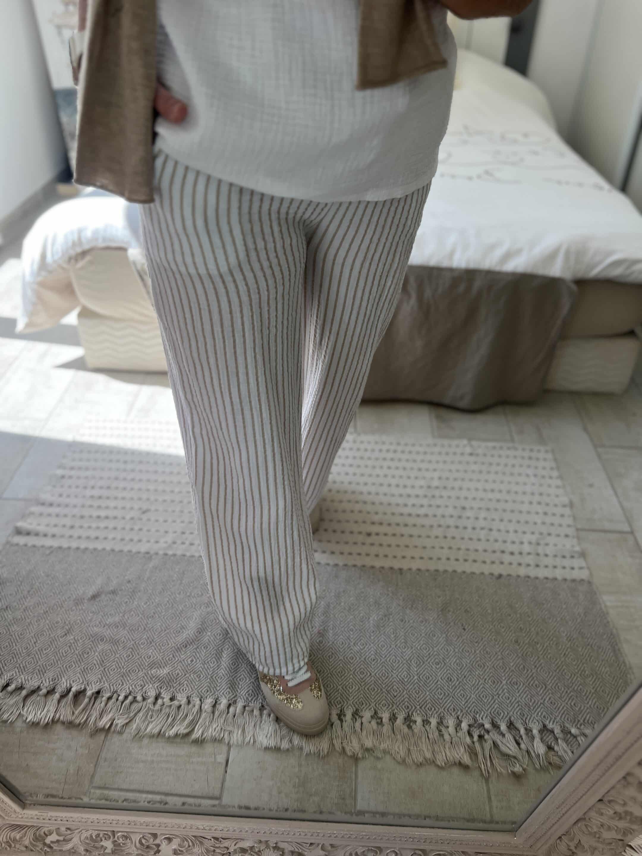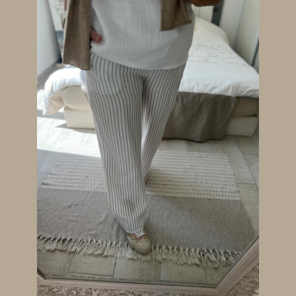 Pantalon gaze rayures beiges