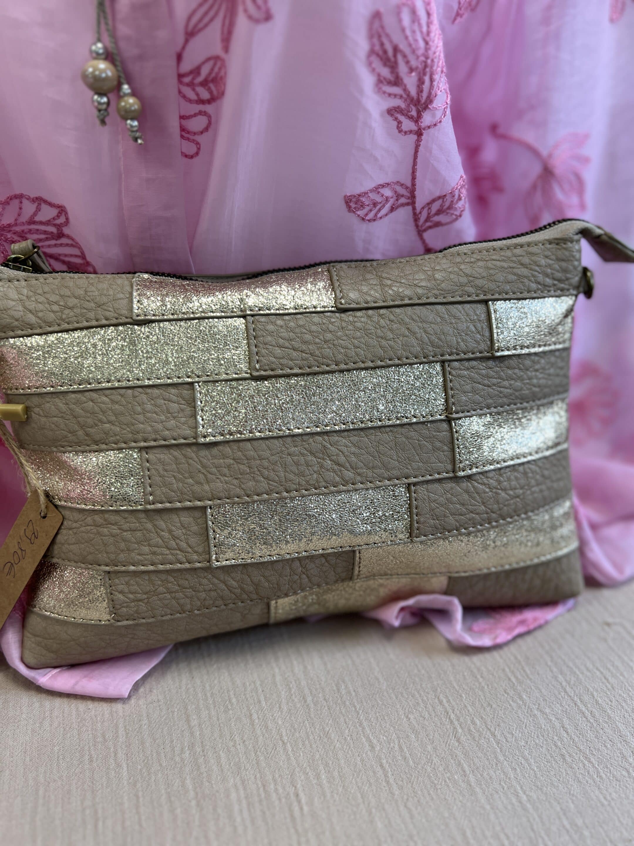 Pochette taupe dorée