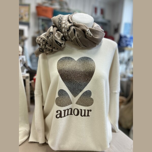 Pull Amour vert écru