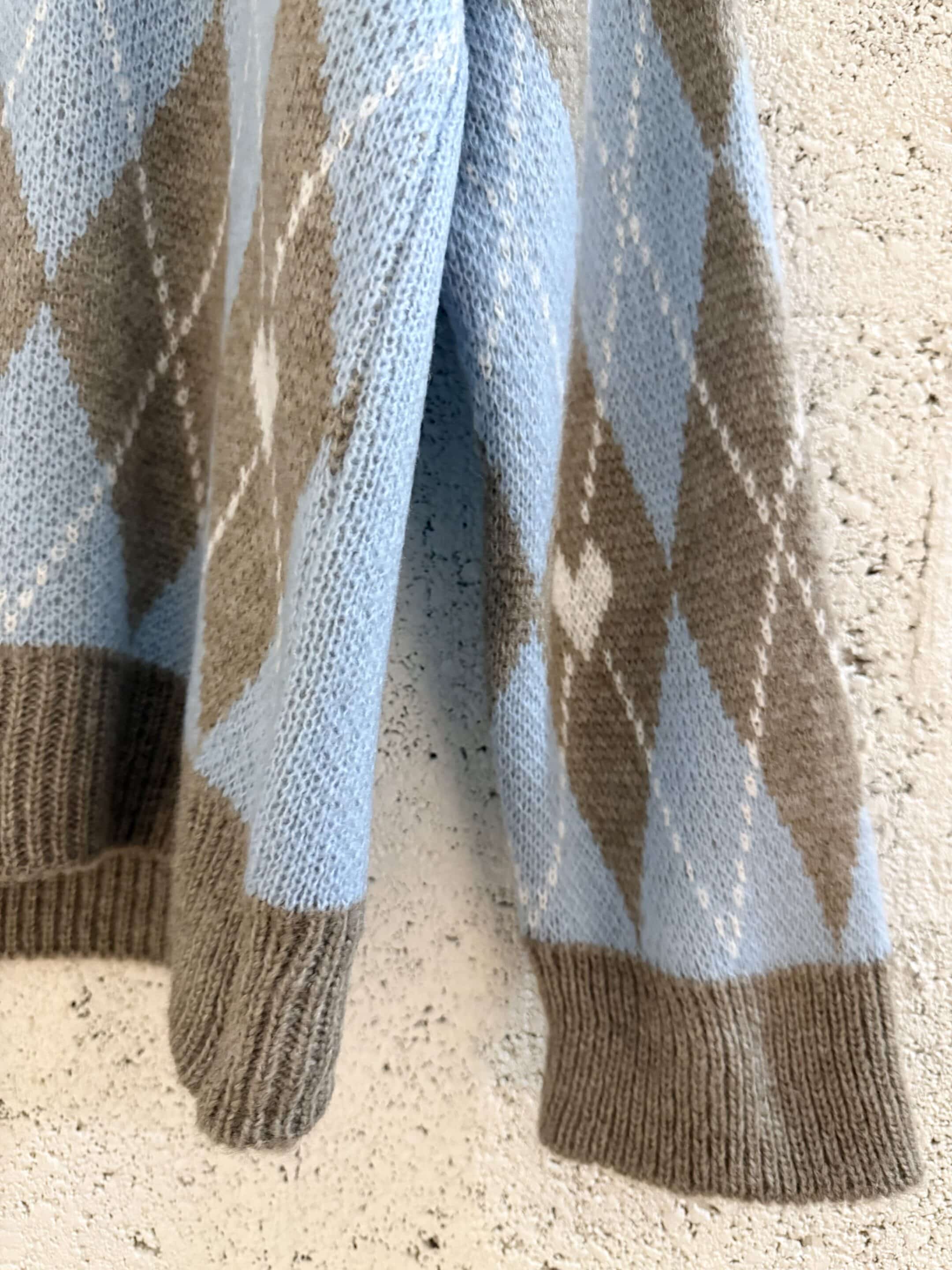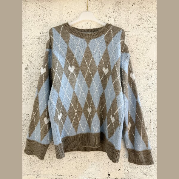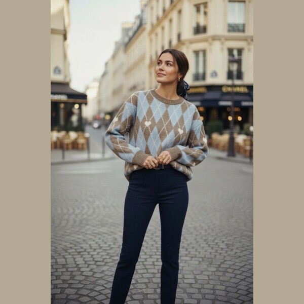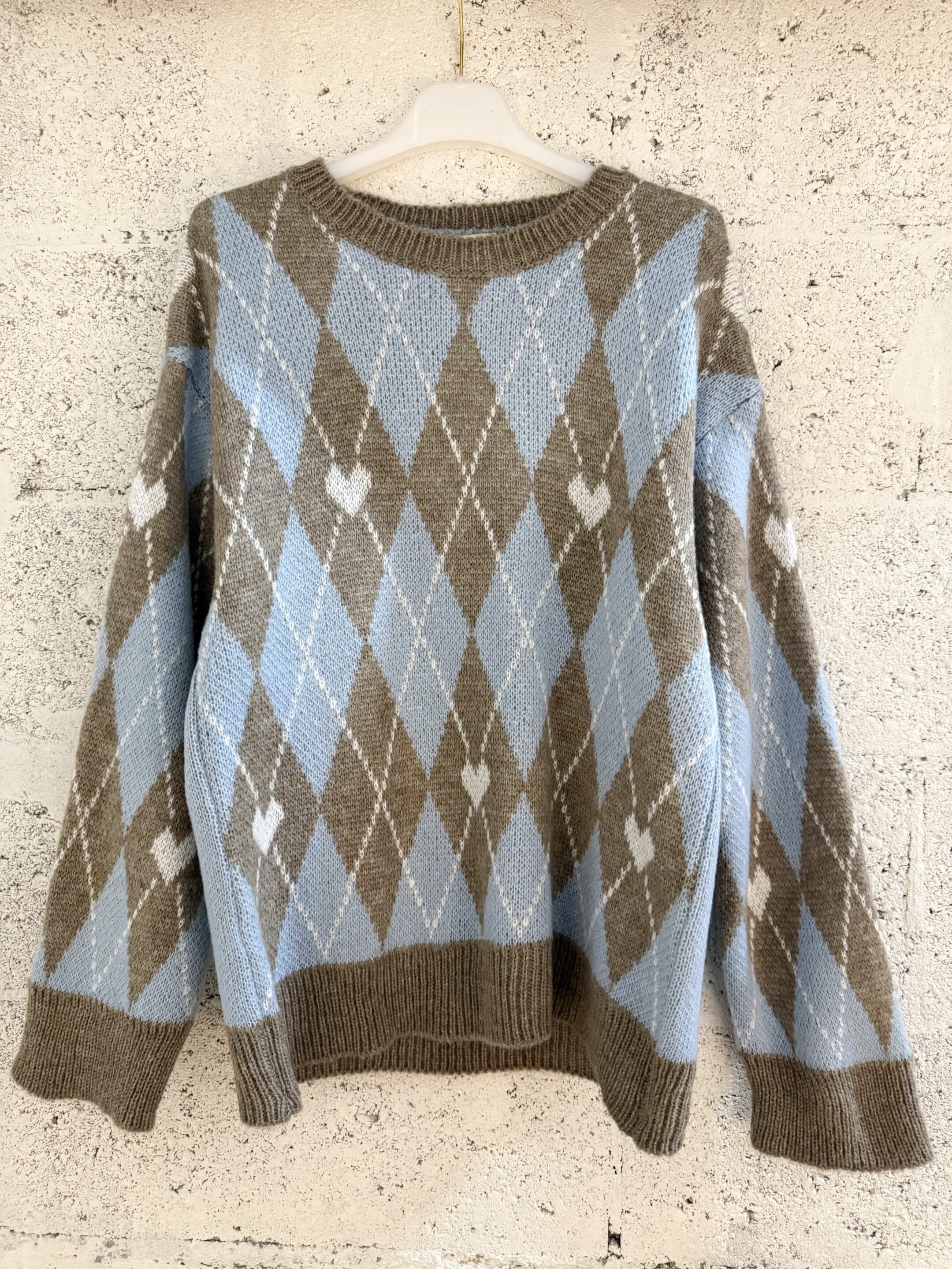 Pull motif argyle, coupe droite, toucher doux et chaud. Finition bord-côtes au col, poignets et bas.