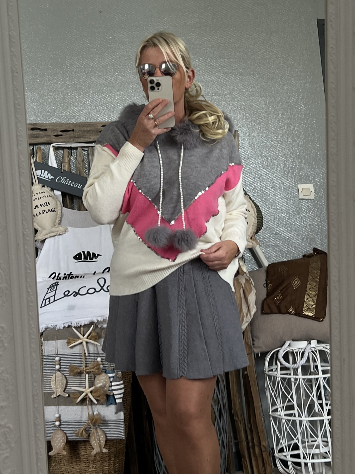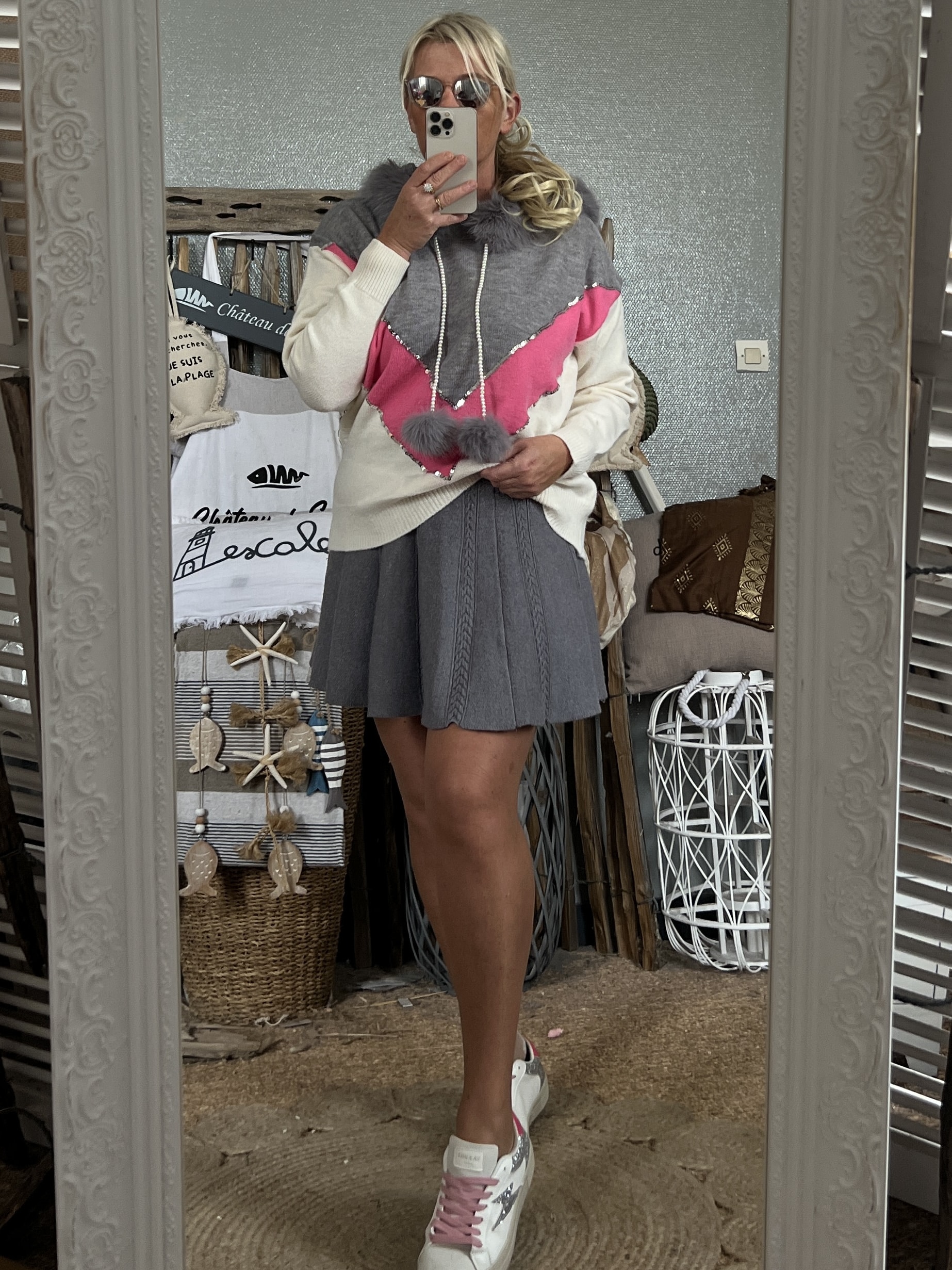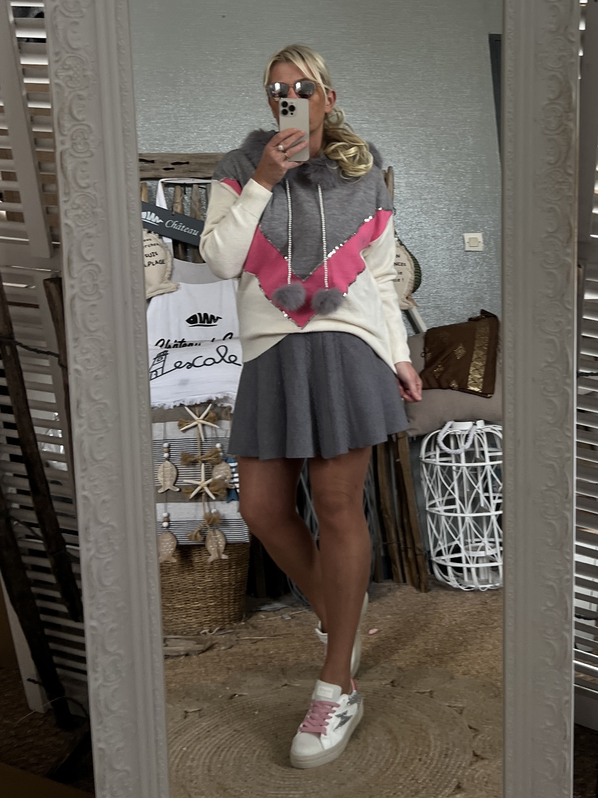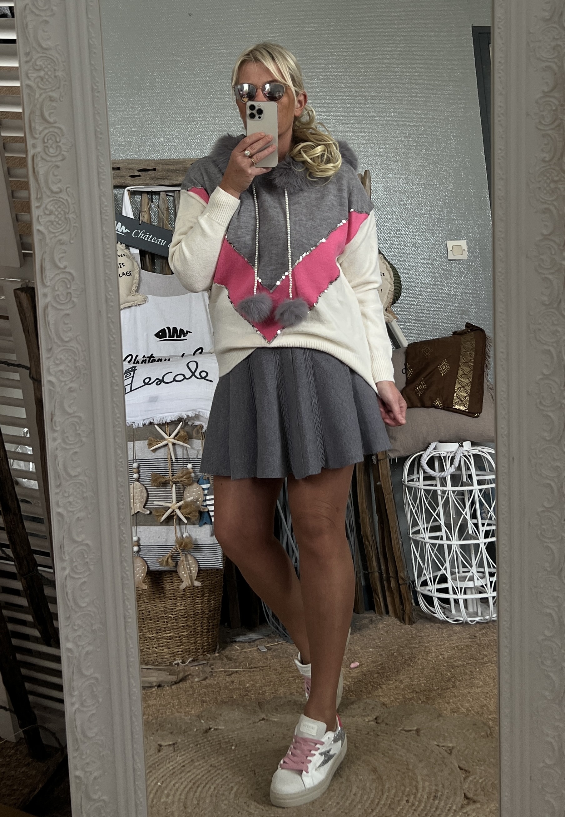 Pull CDS gris rose