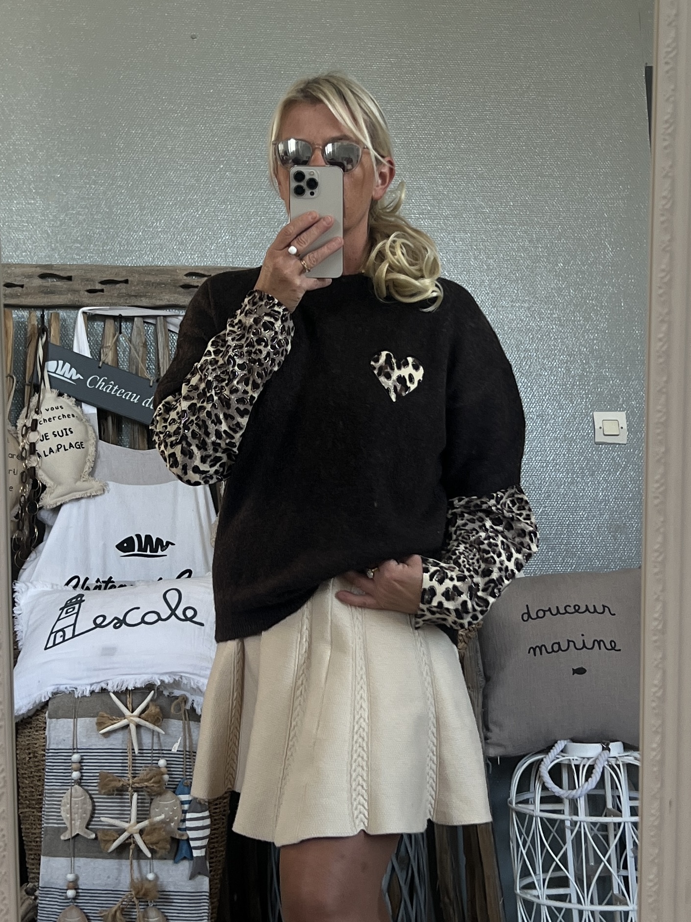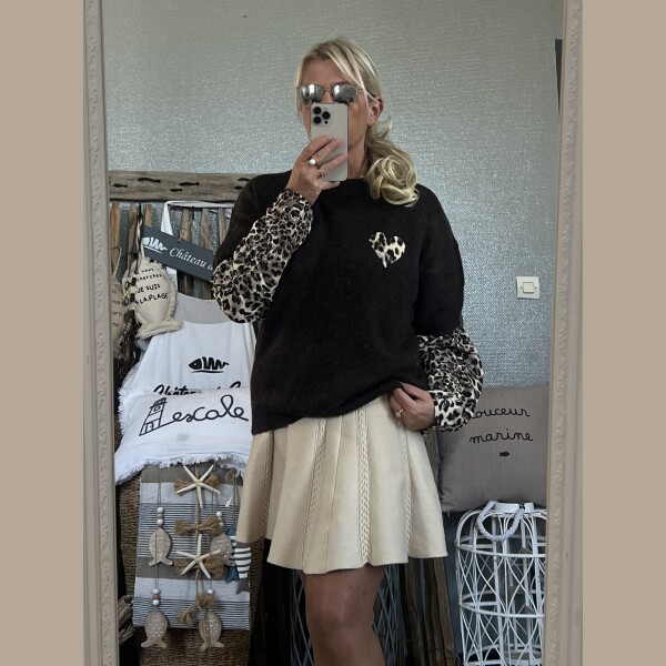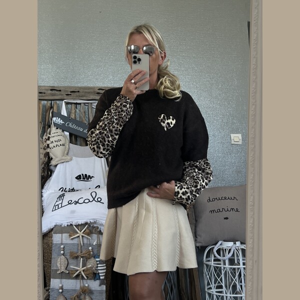 Pull cœur léopard chocolat