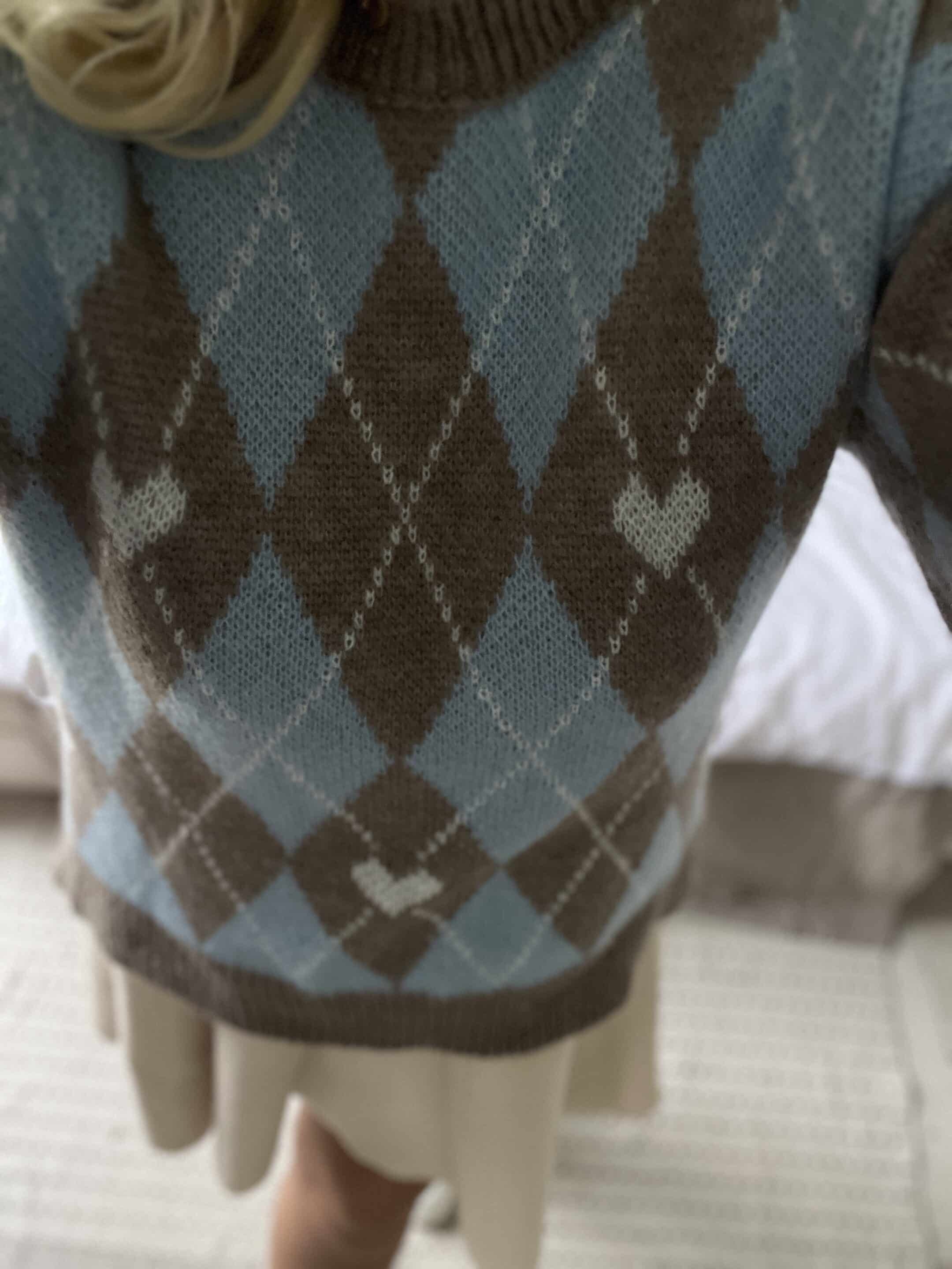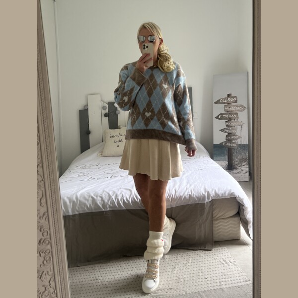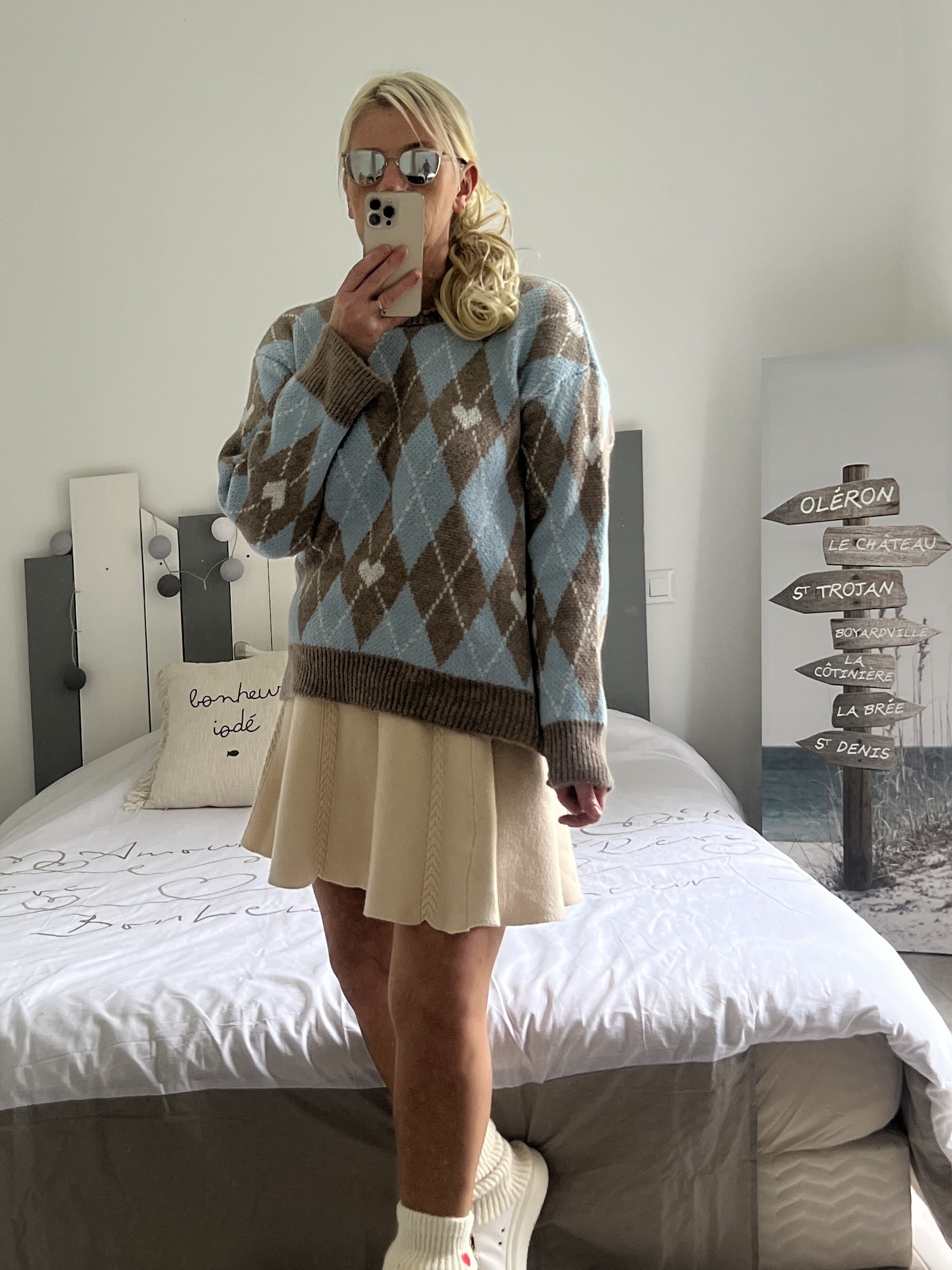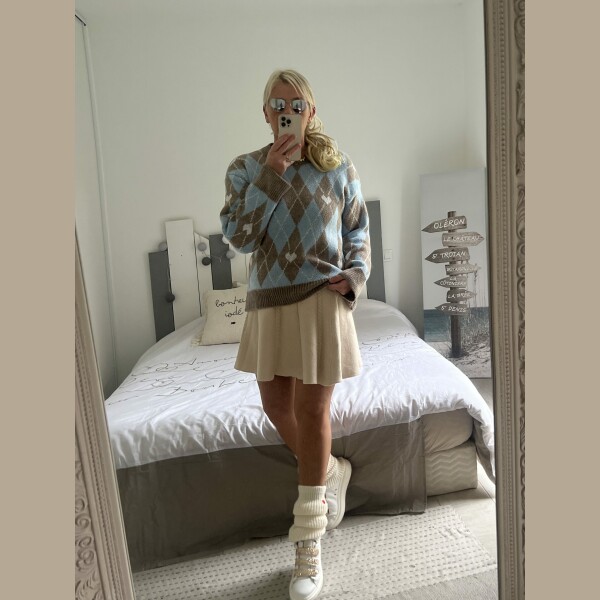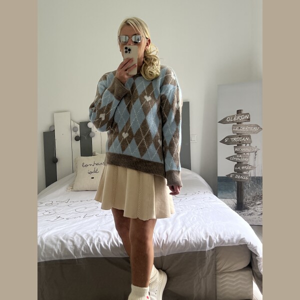 Soyez le premier à laisser votre avis sur “Pull cœurs losanges bleu taupe”