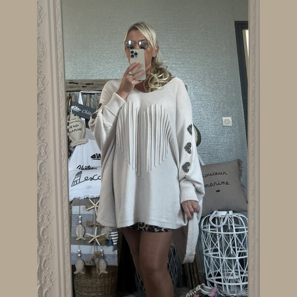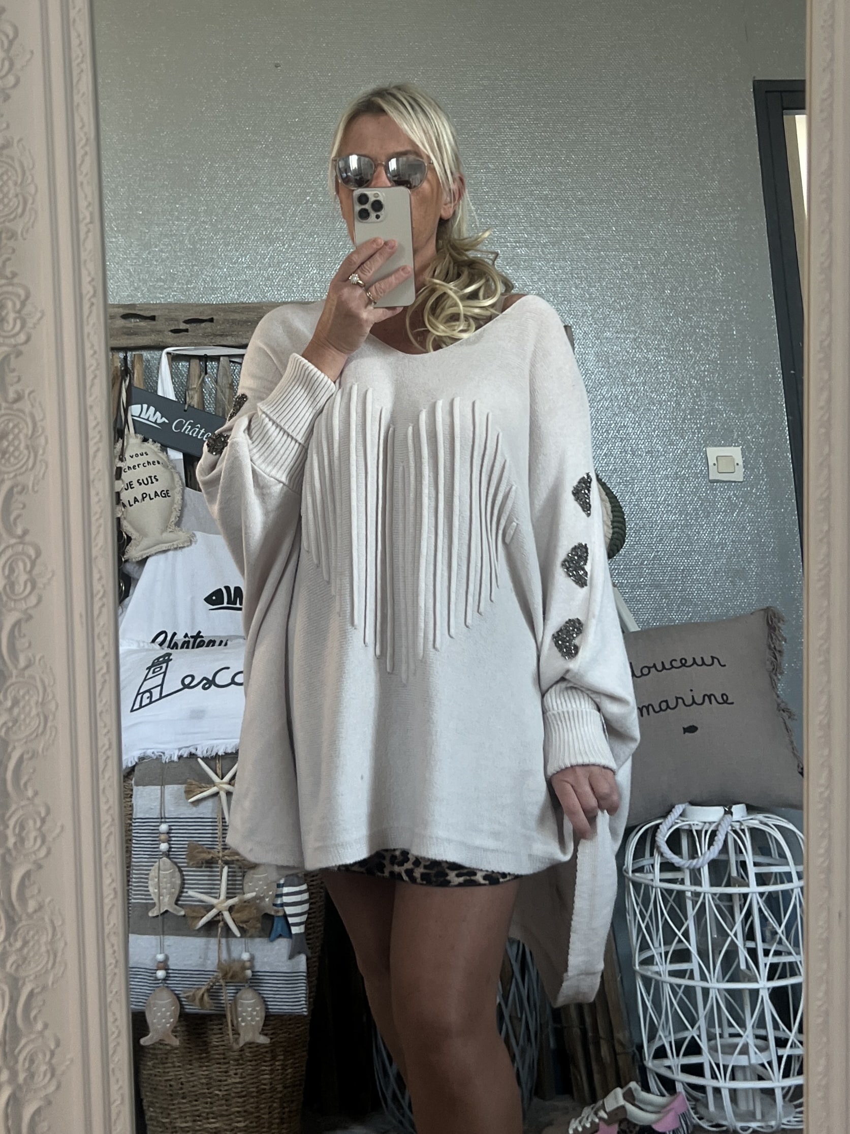 Soyez le premier à laisser votre avis sur “Pull cœurs strass T44/50 beige clair”