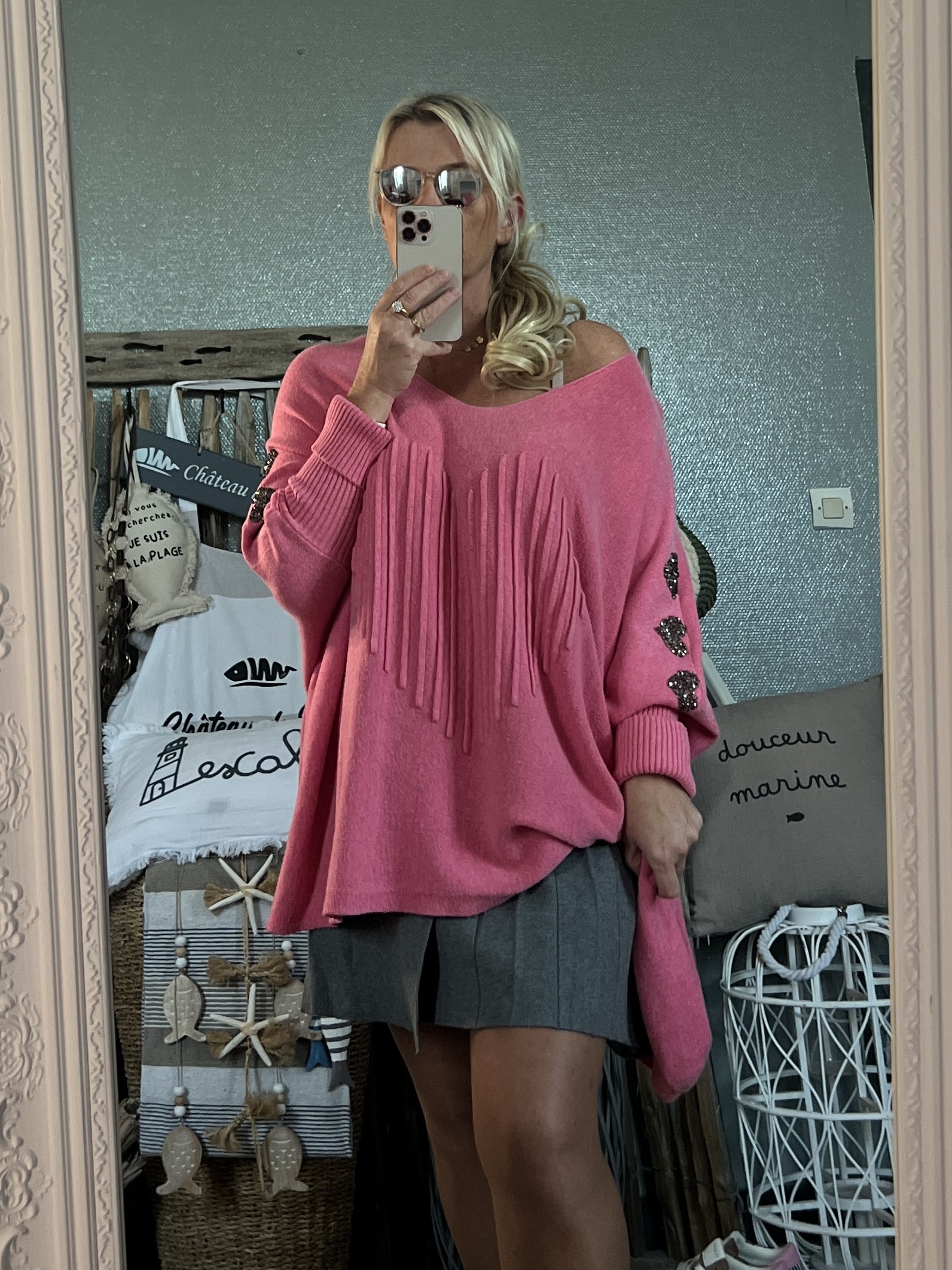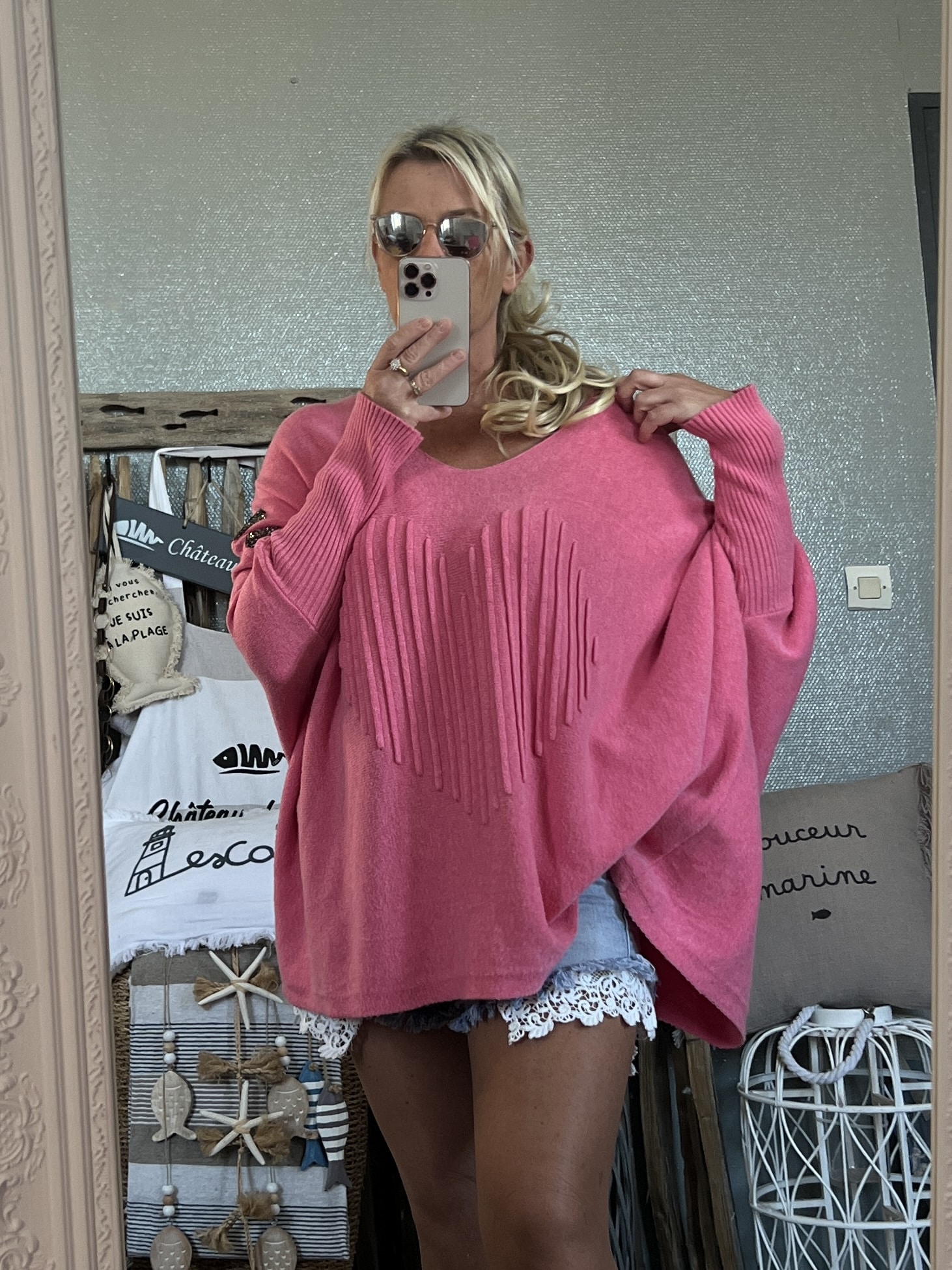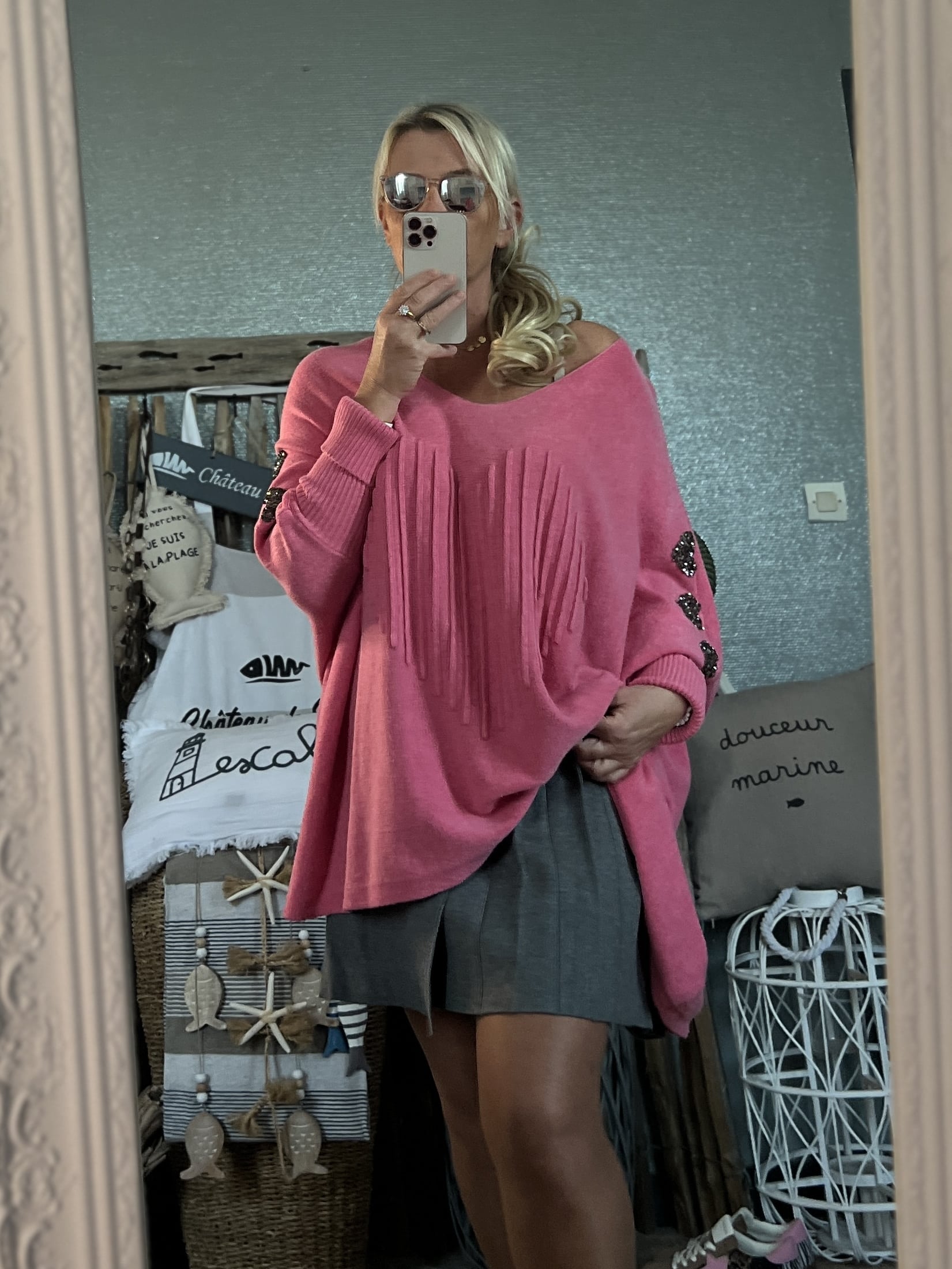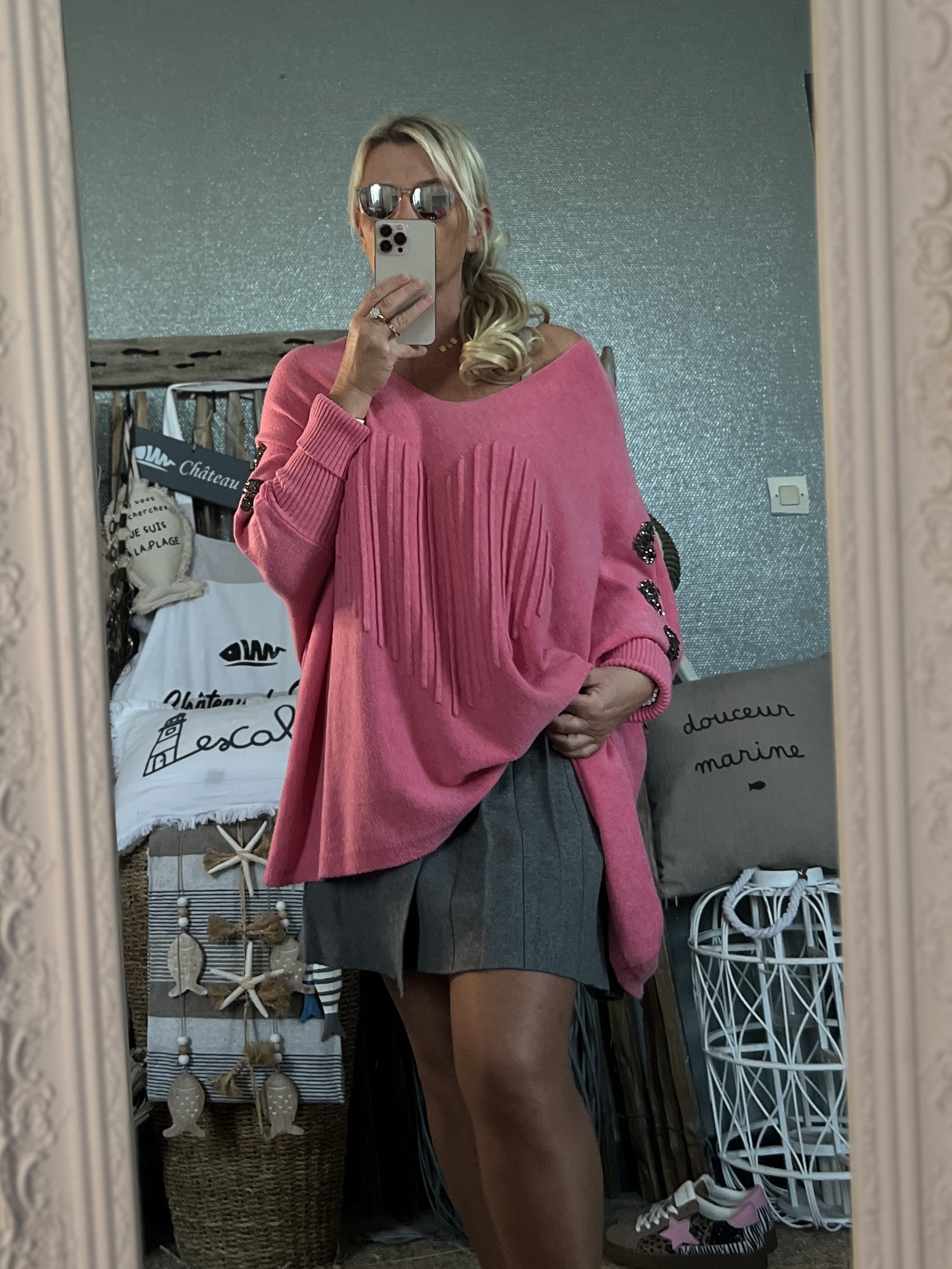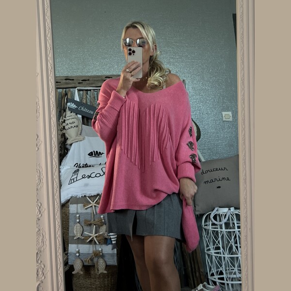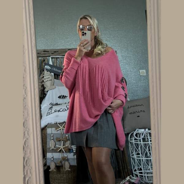 Pull cœurs strass T44/50 rose pep’s