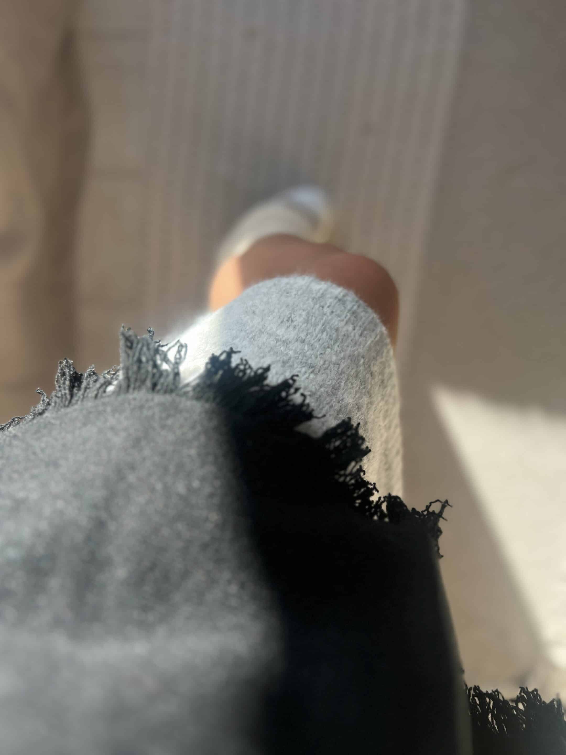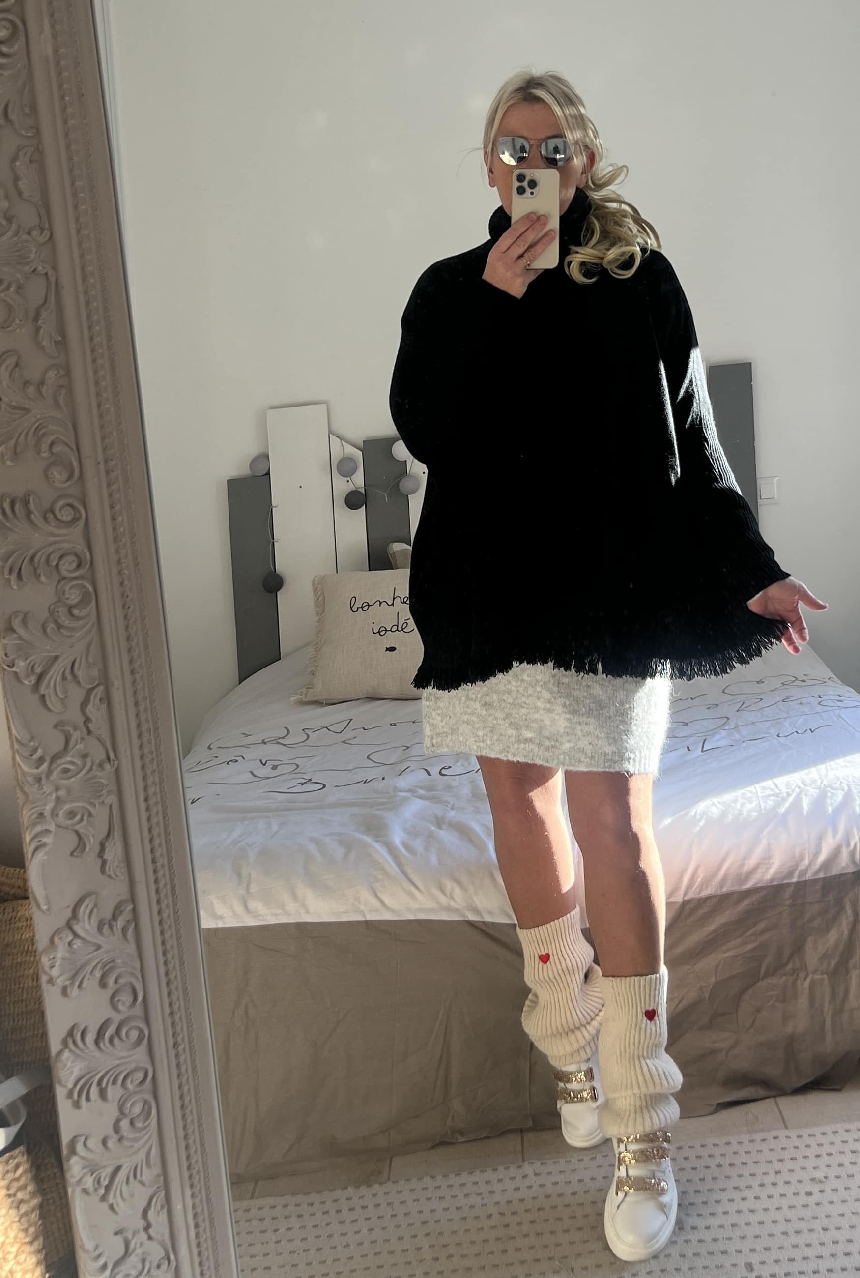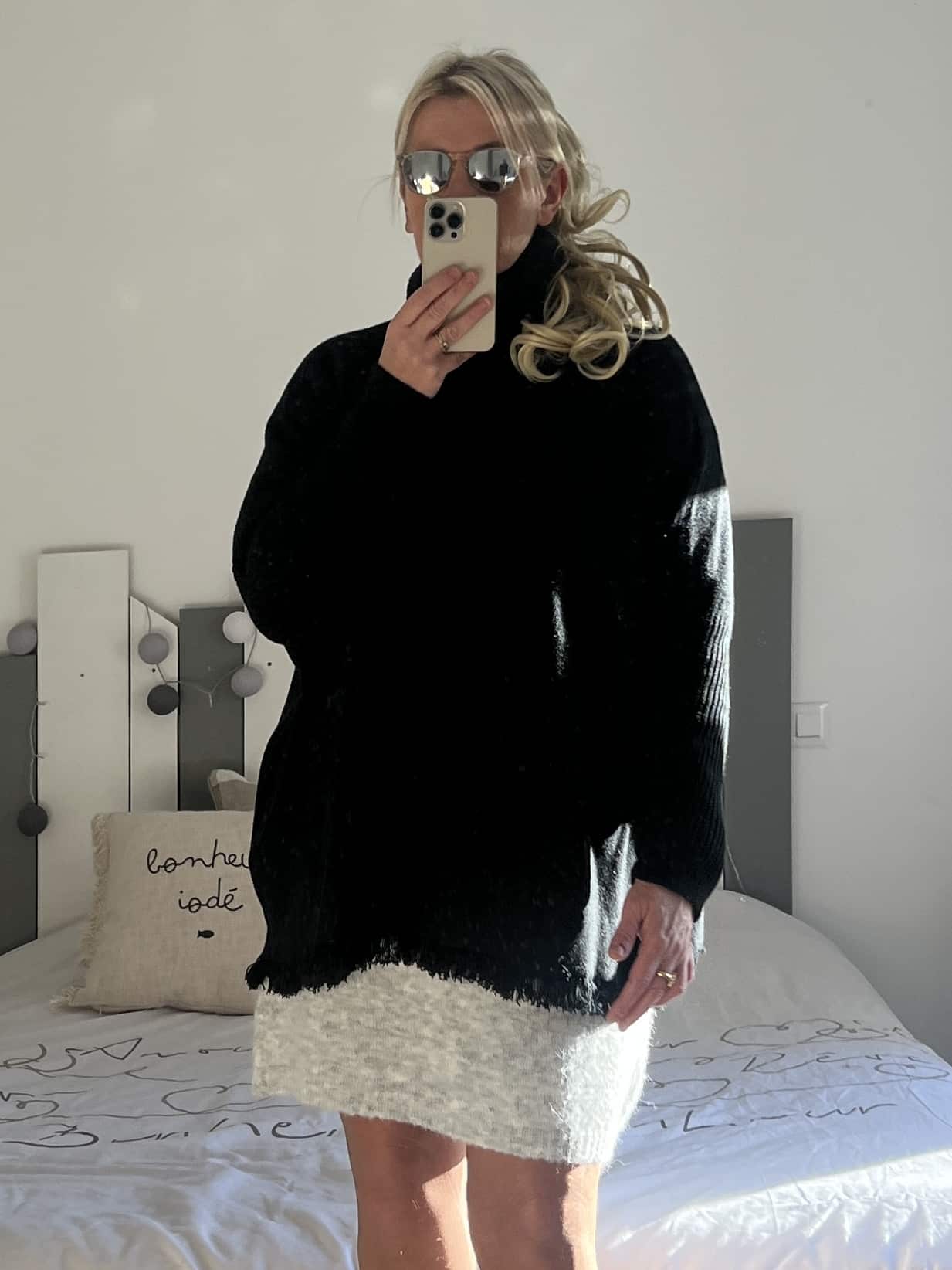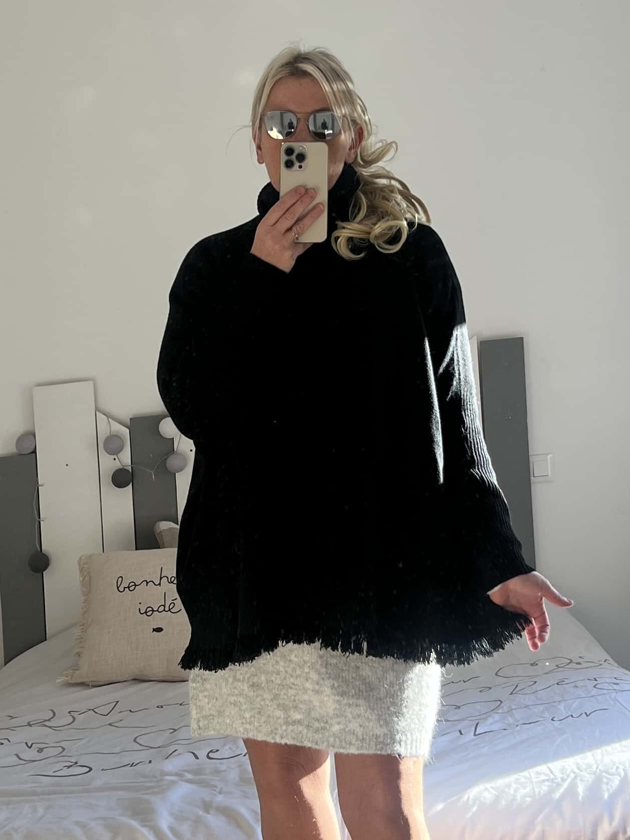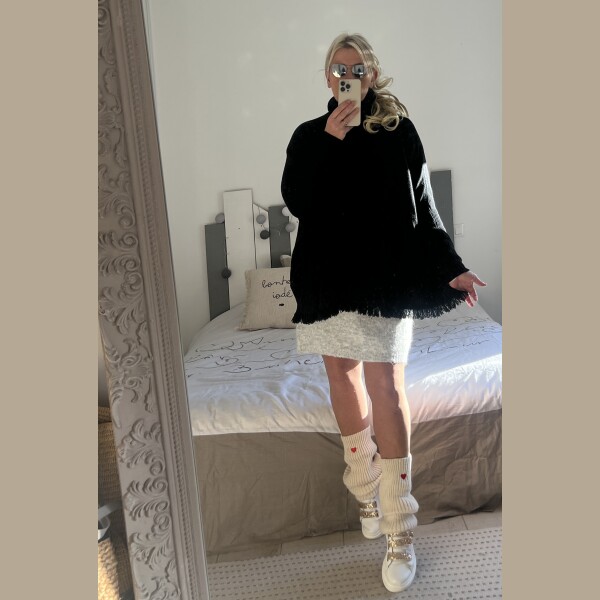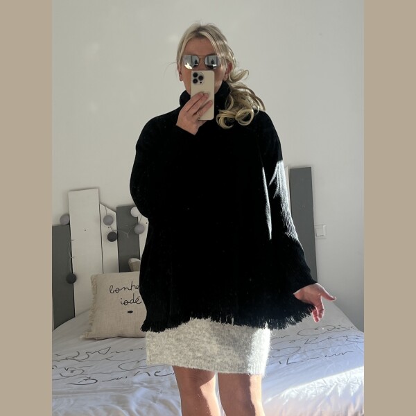 Pull col roulé frange noir