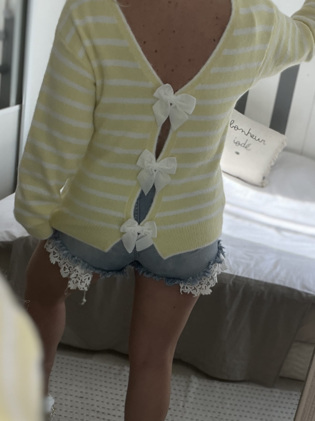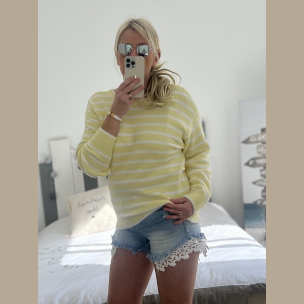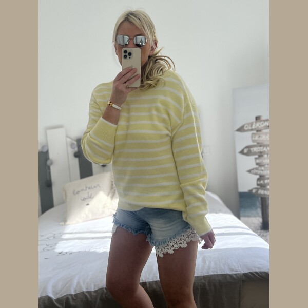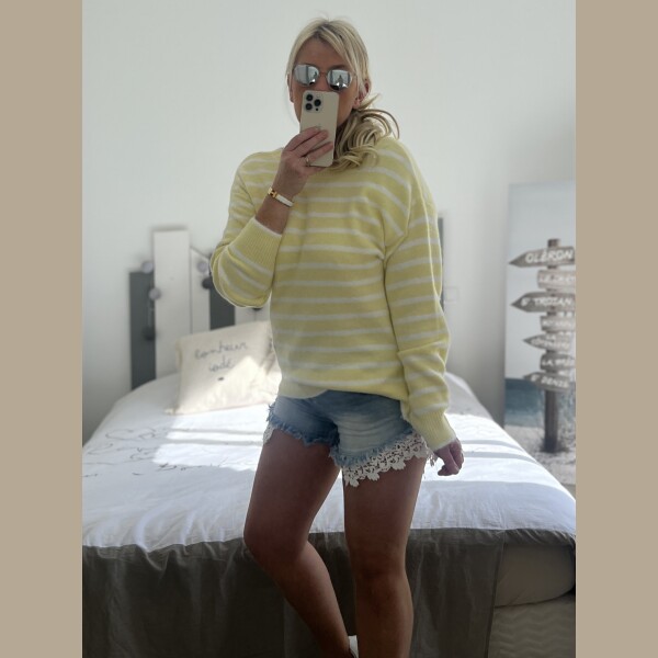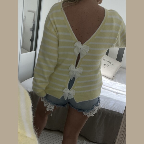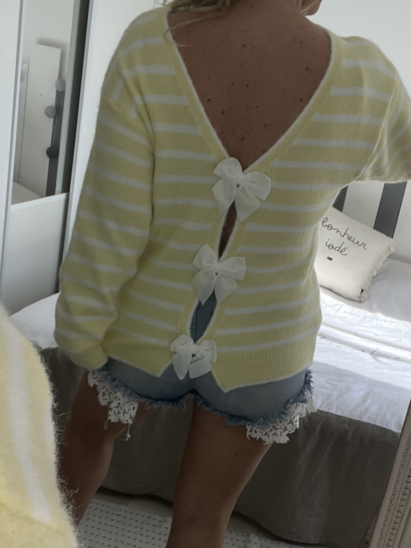 Soyez le premier à laisser votre avis sur “Pull marinière noeuds dos jaune”