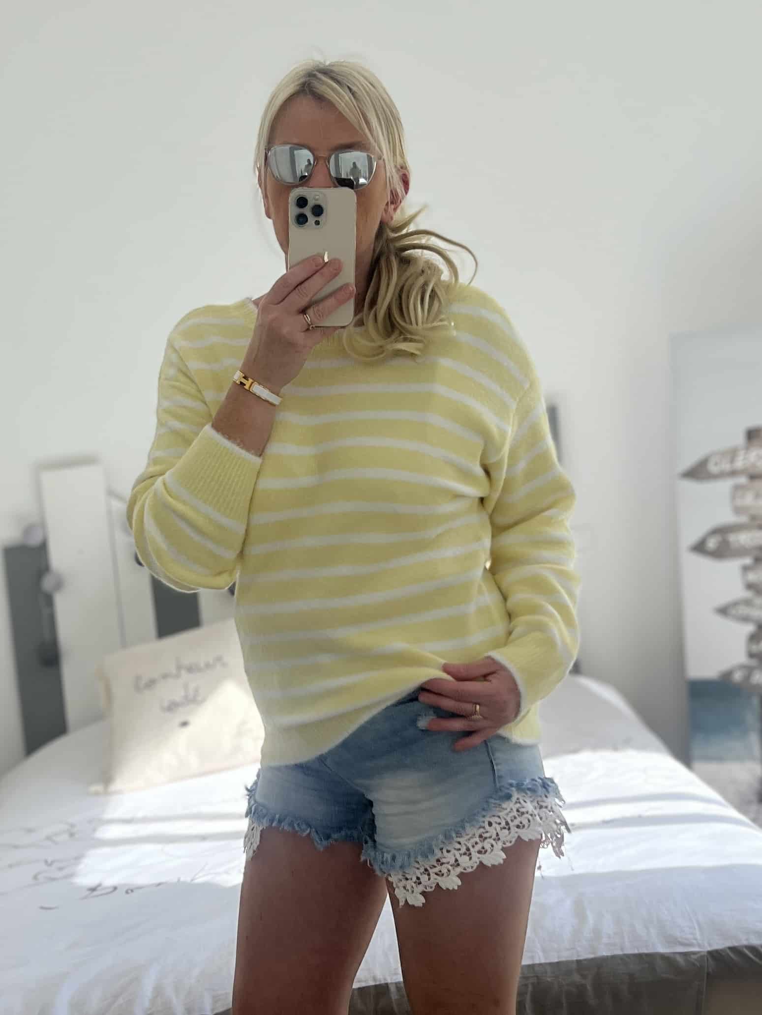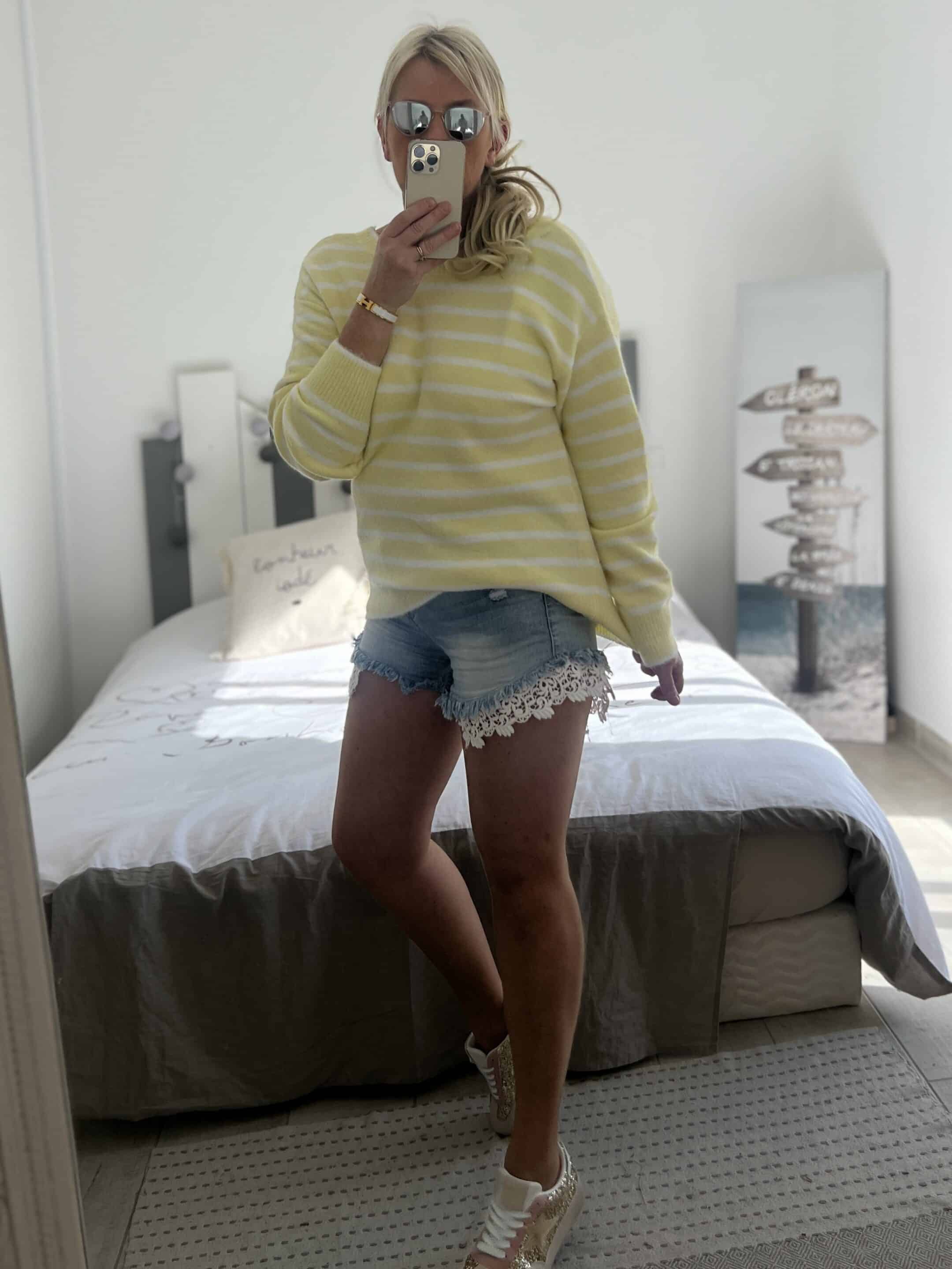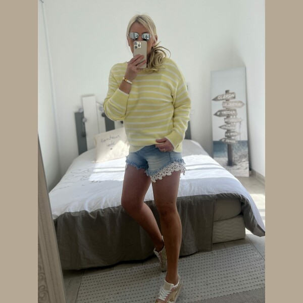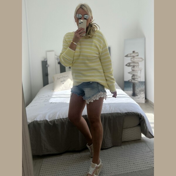 Soyez le premier à laisser votre avis sur “Pull marinière noeuds dos jaune”
