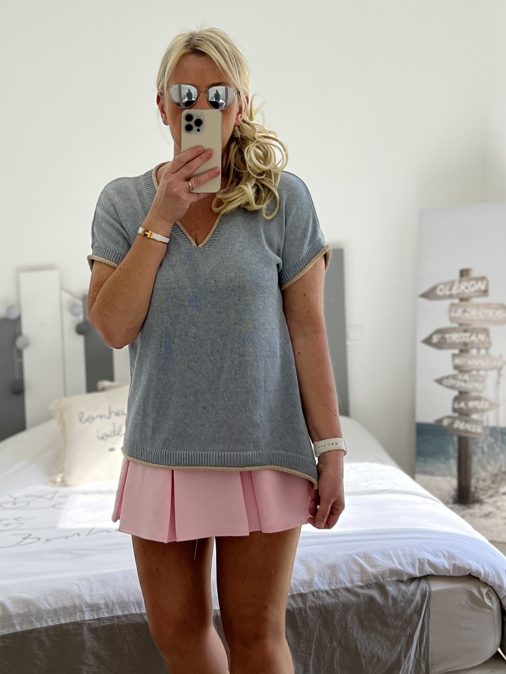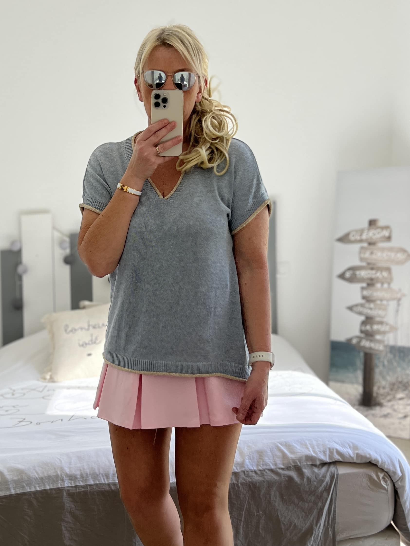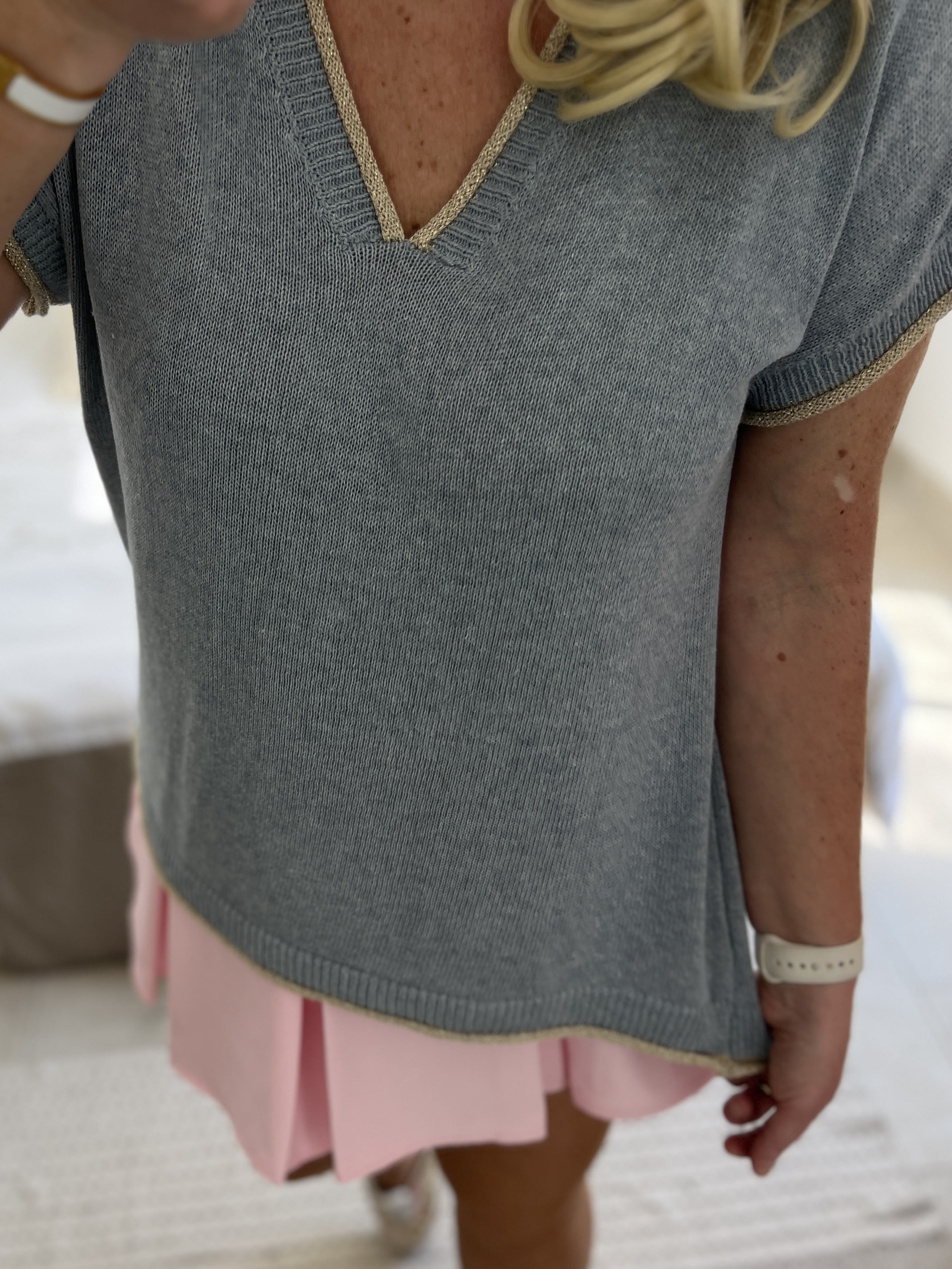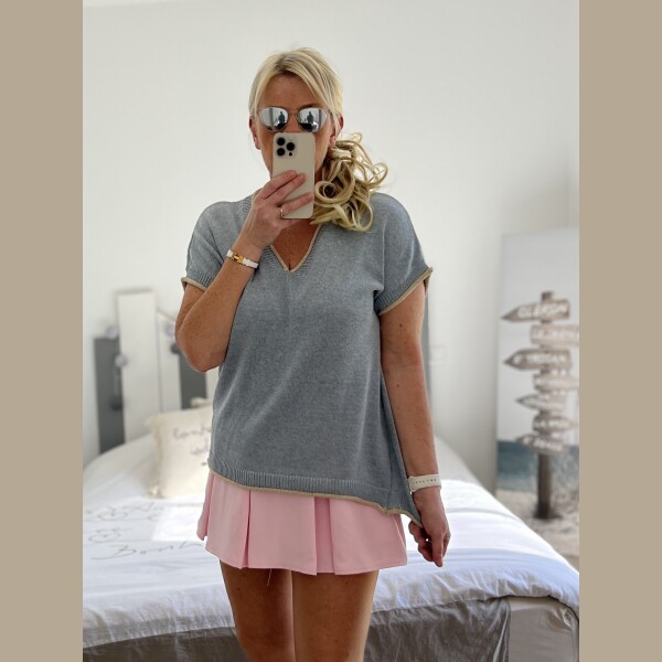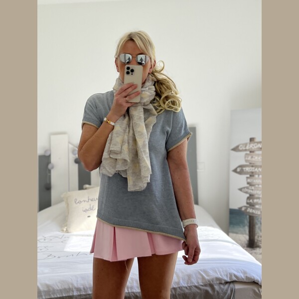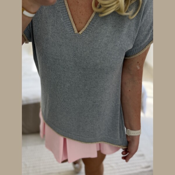 Pull fin bleu gris lurex