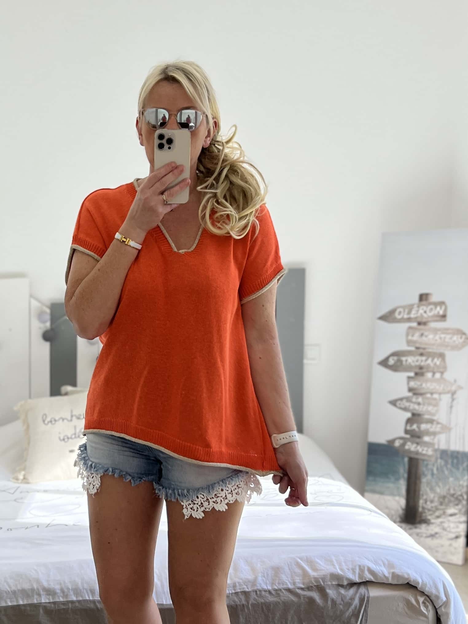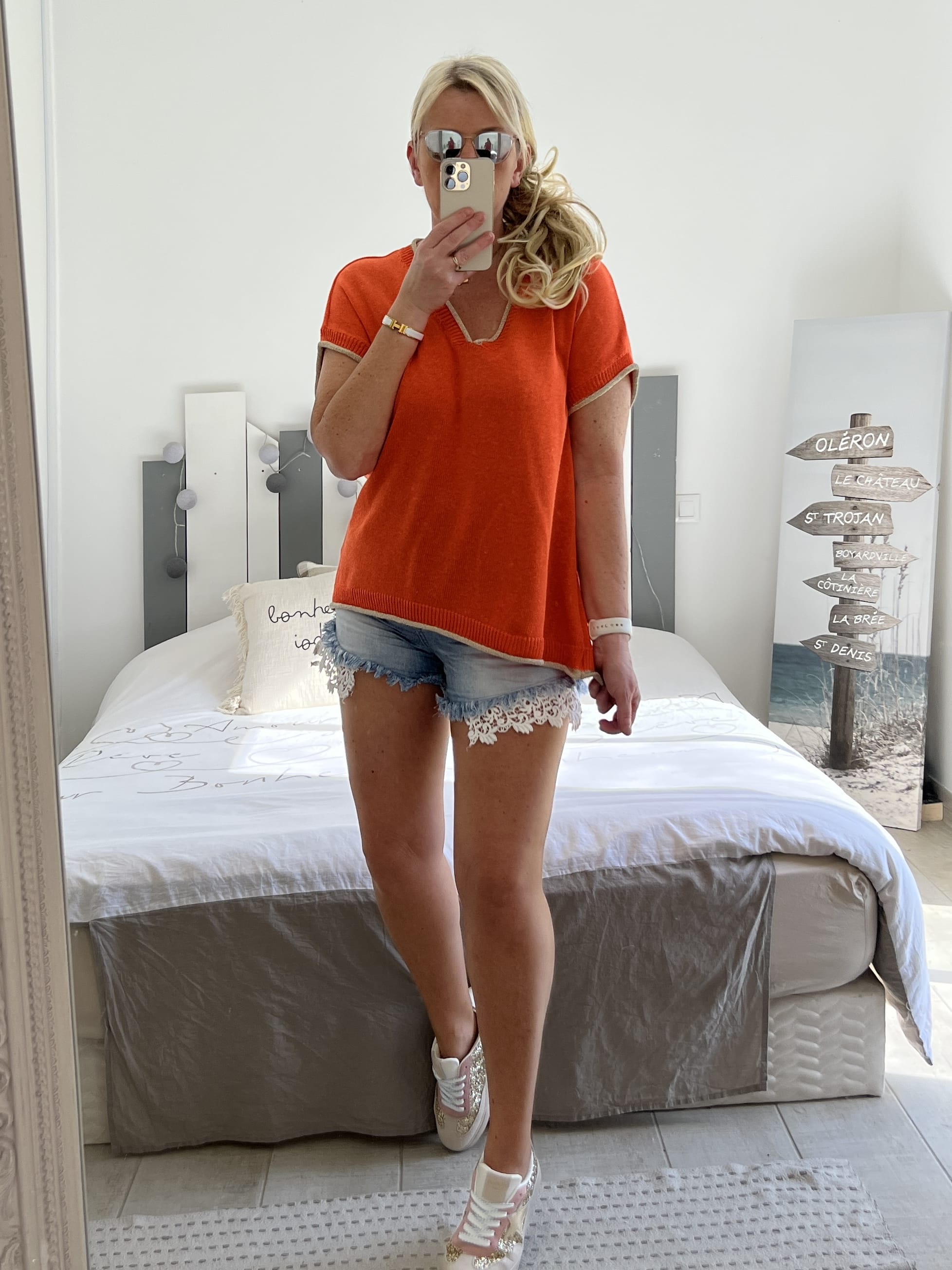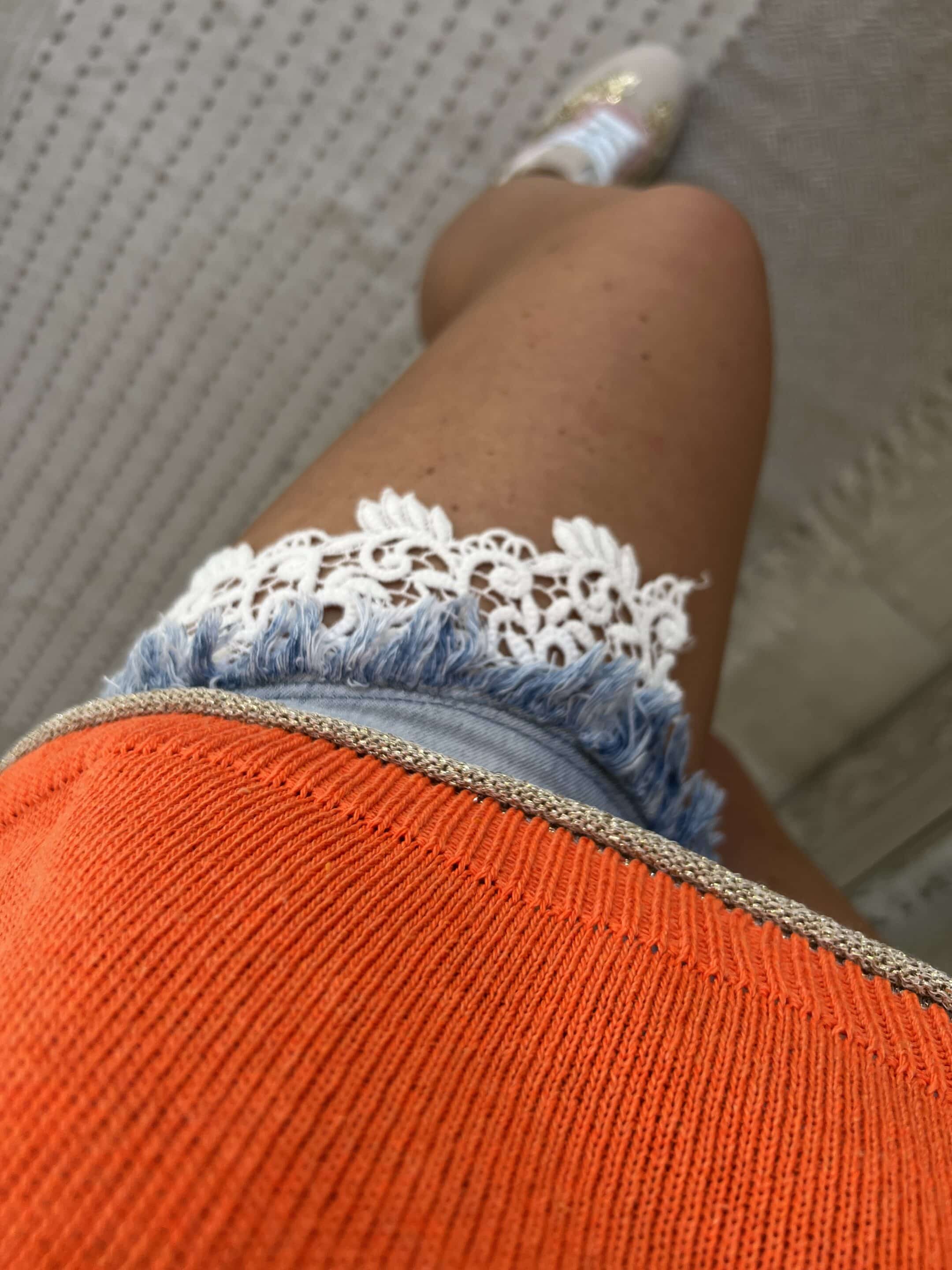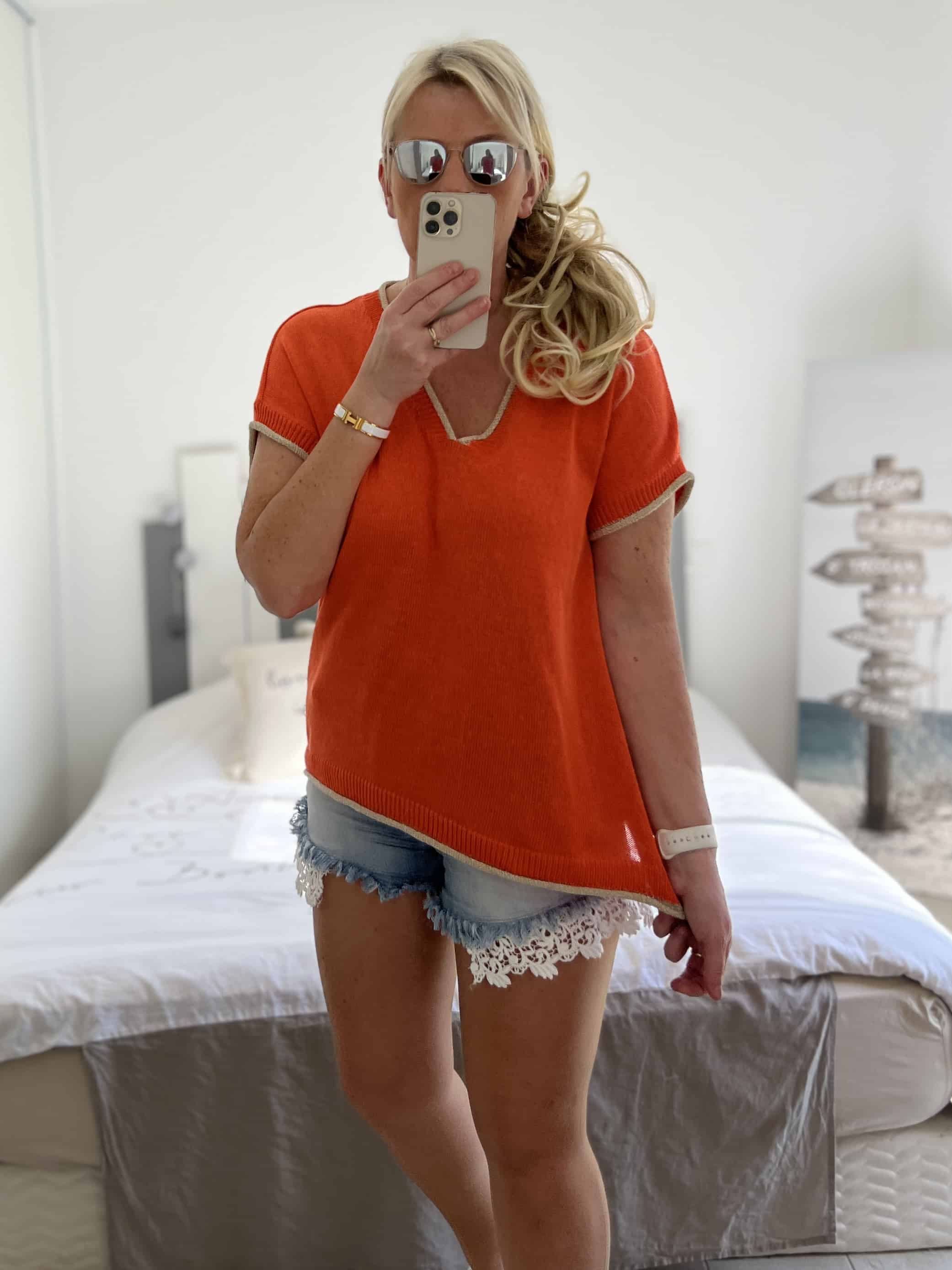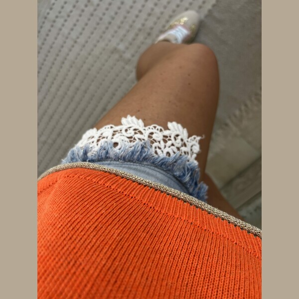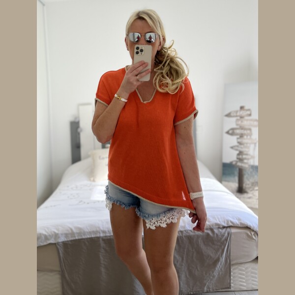 Pull fin bleu orange