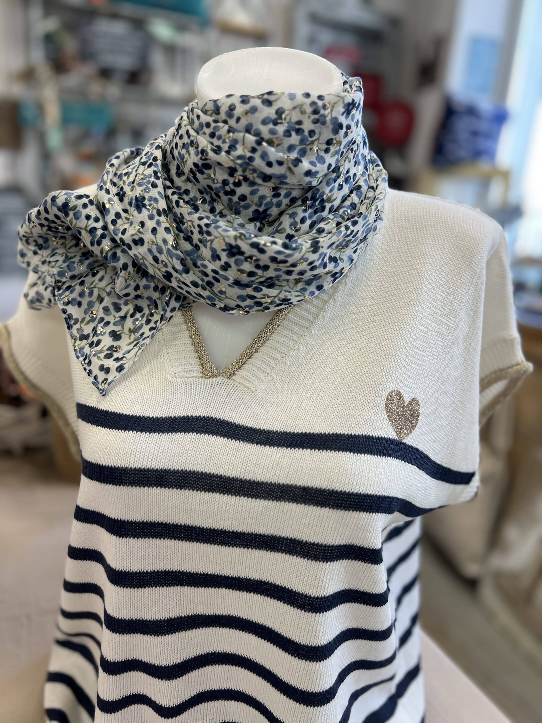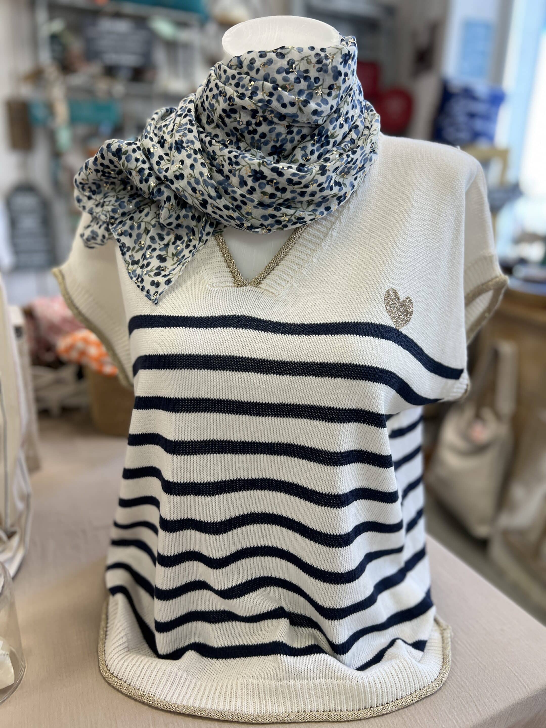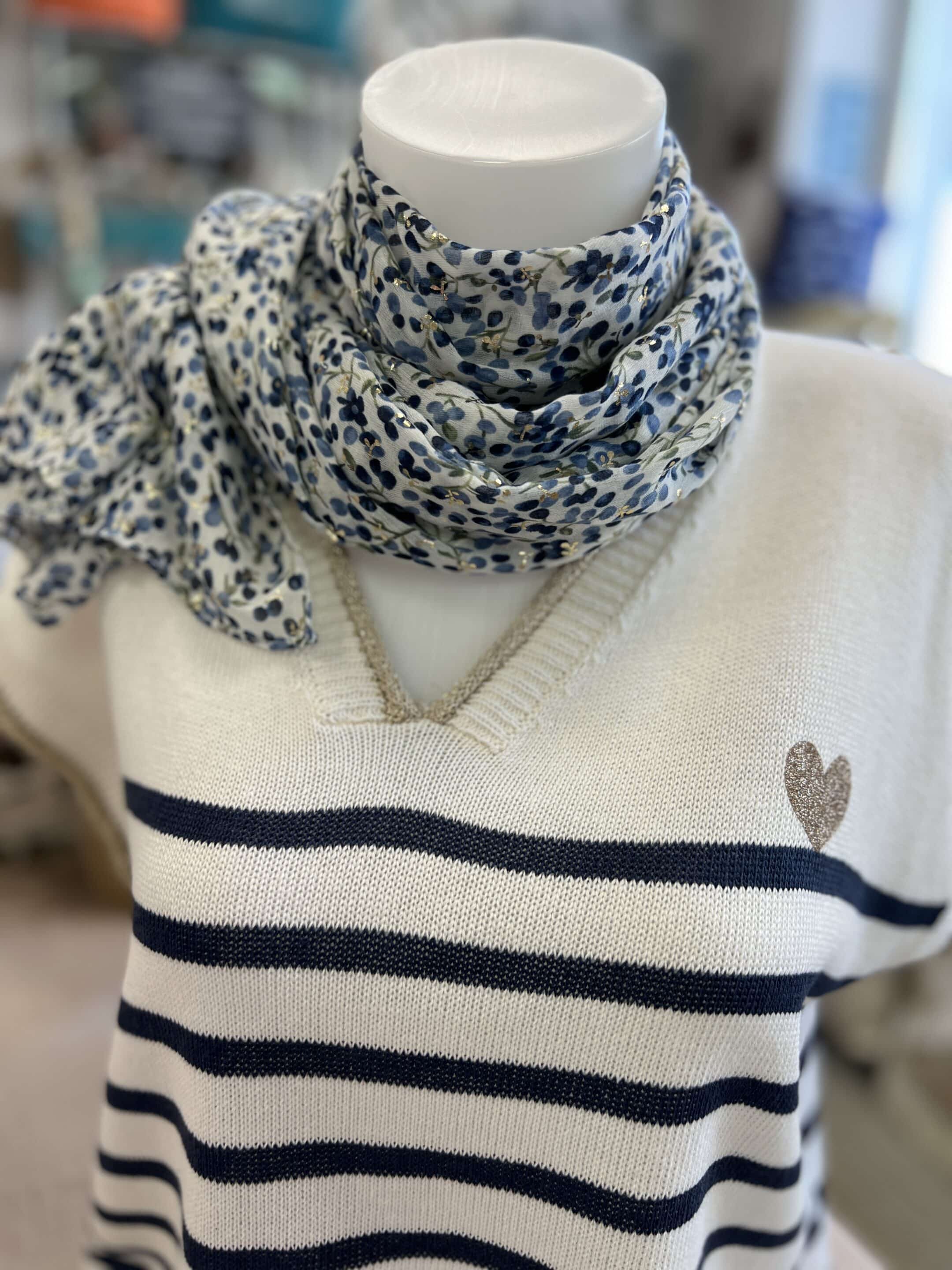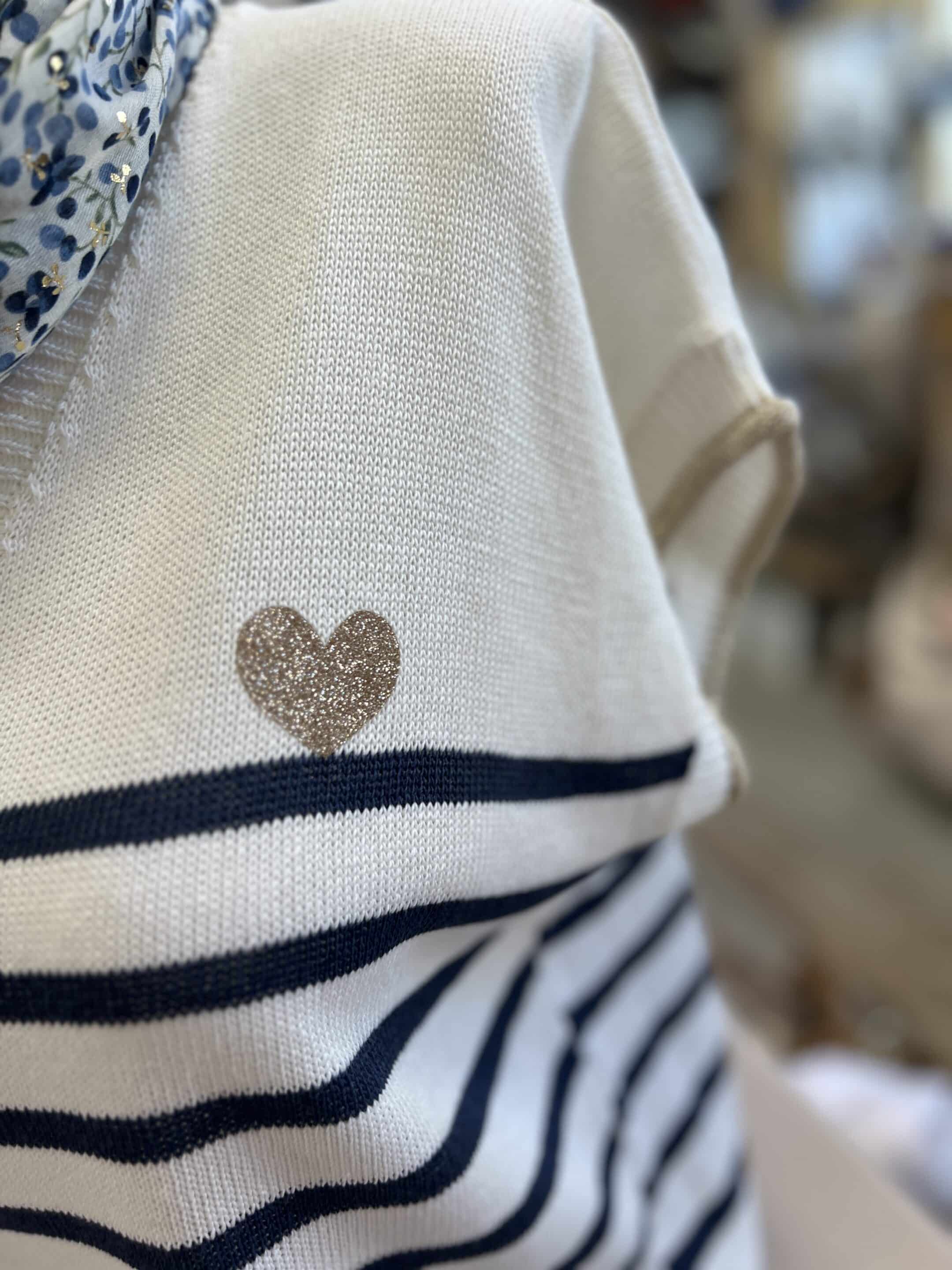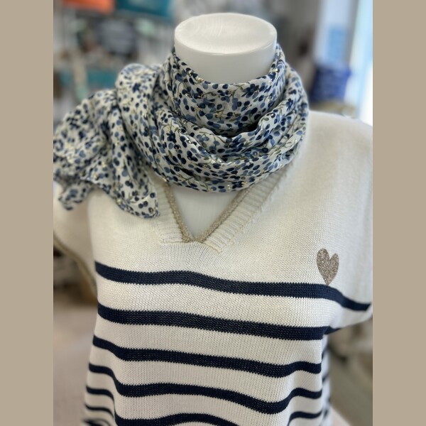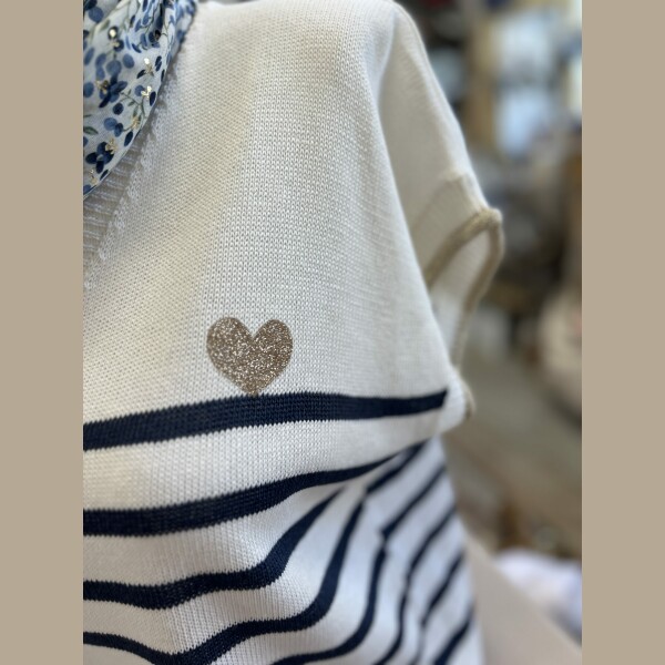 Pull fin marinière marine