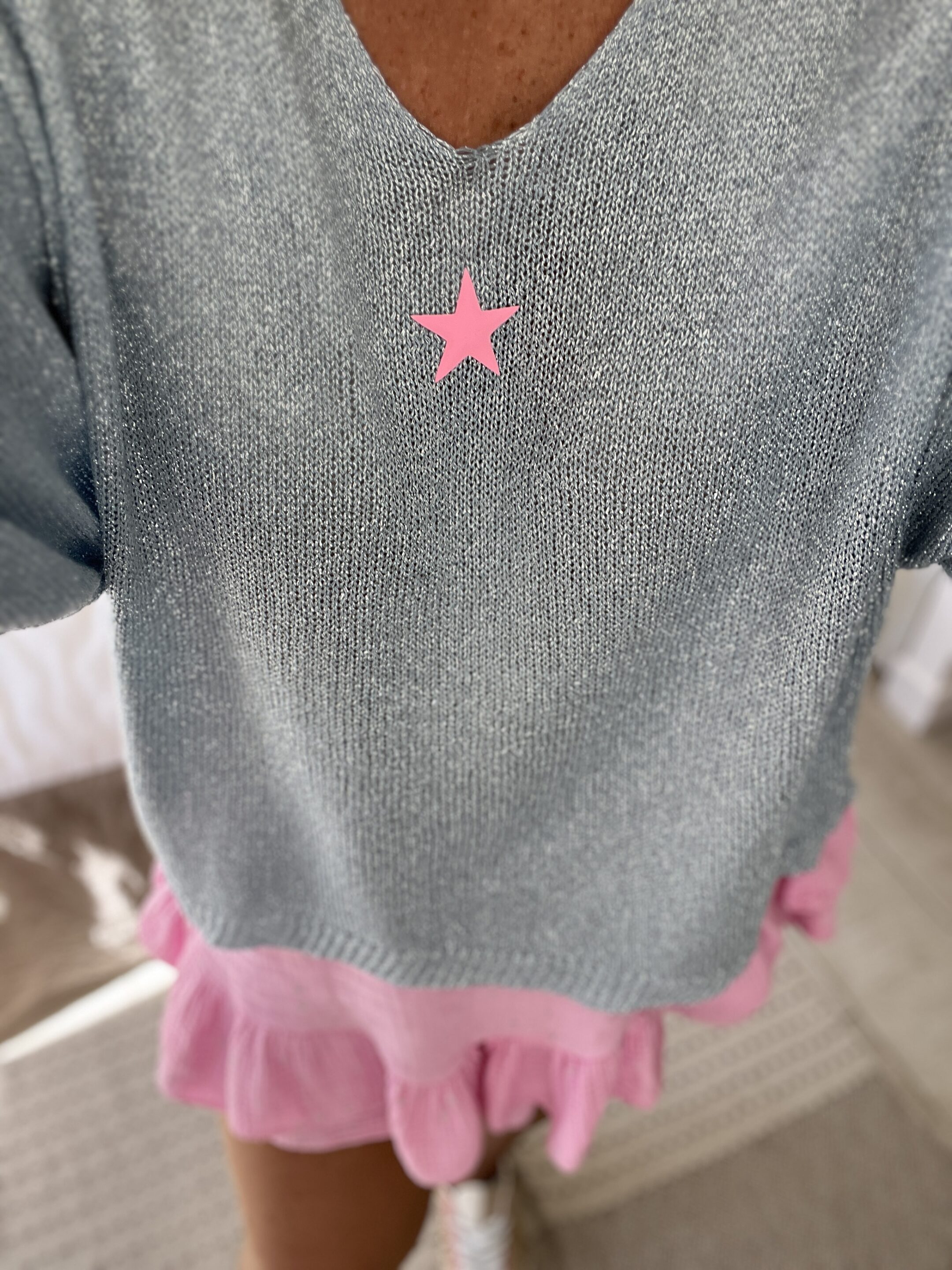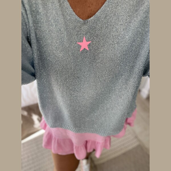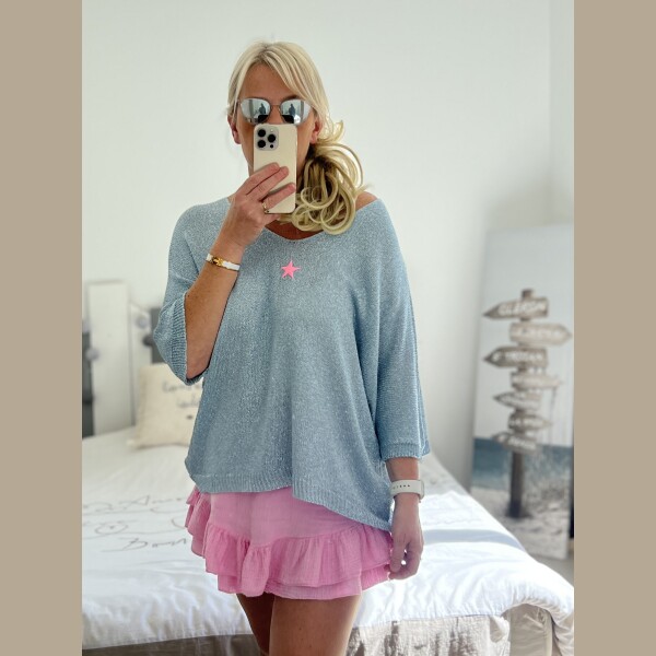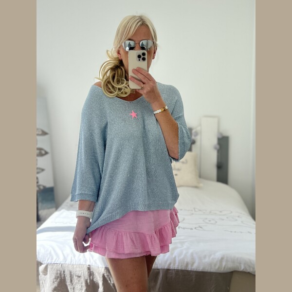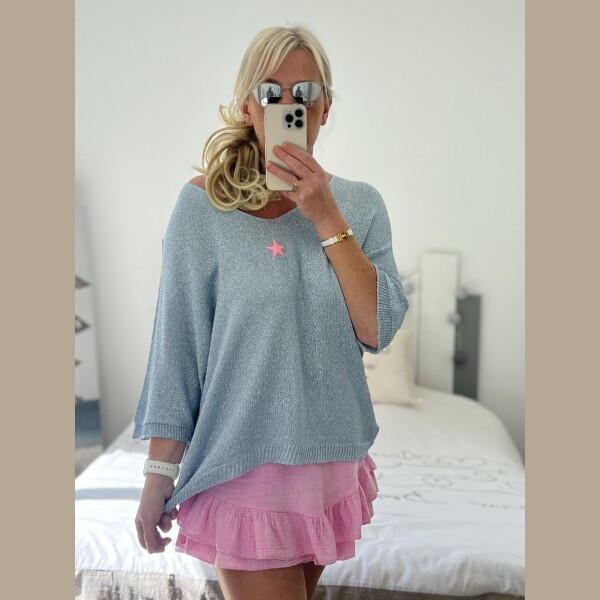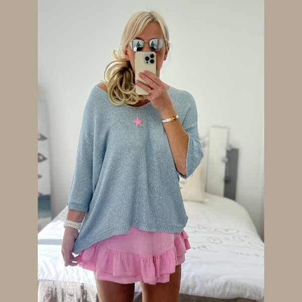 Pull fin pailleté bleu étoile